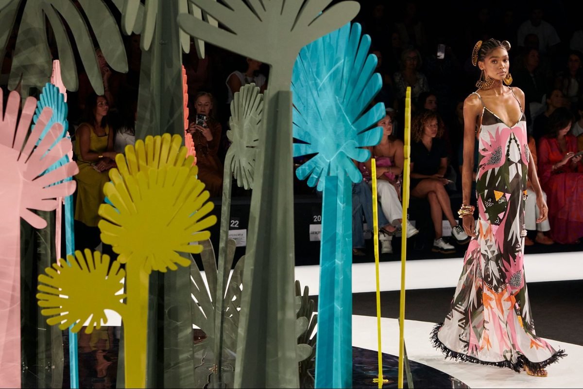 Destaca también la importancia del color lima en prendas de estructuras sofisticadas con drapeados dramáticos y detalles trenzados; el azul océano con aplicaciones de hojas láser, superposición de materiales y efectos 3D; los estampados black&white con motivos lineales y las prendas exteriores, que proporcionan un total look con silueta oversize.