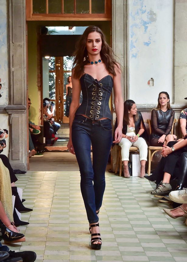 This collection, inspired by the decade of the nineties, top models and the mythical covers of Sport Illustrated magazine, recreates a sporty-chic environment in which bathing suits are mixed with tight evening dresses and with a complete collection of pieces made in denim that revolve around the designer’s star garment: the corset.