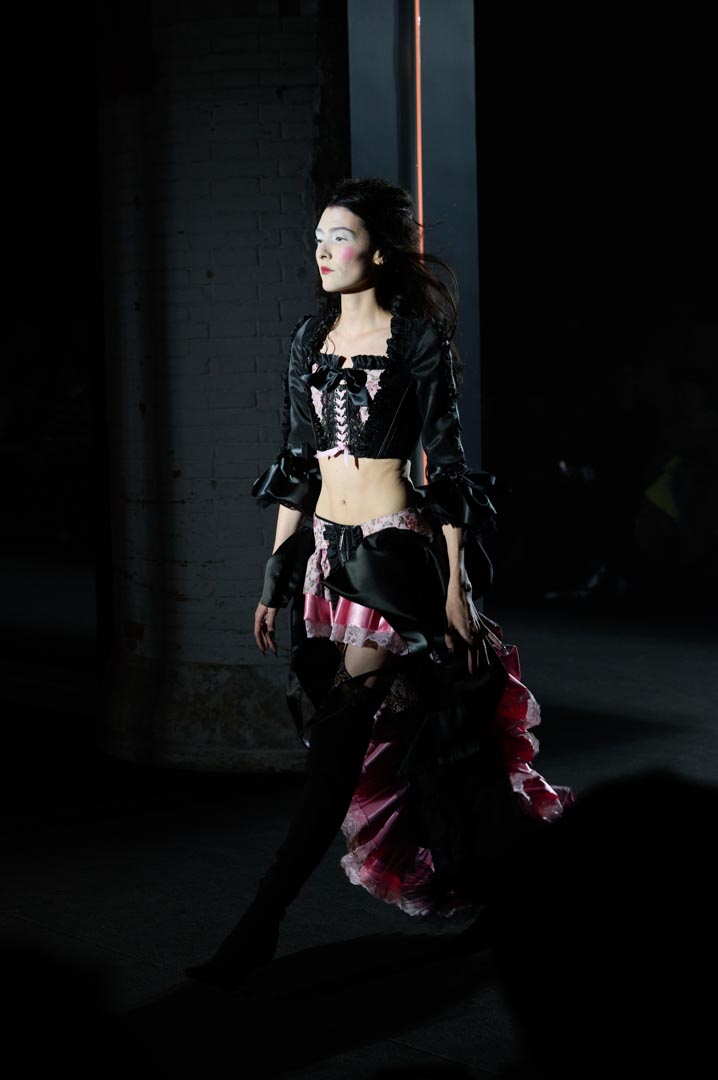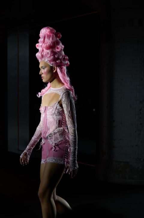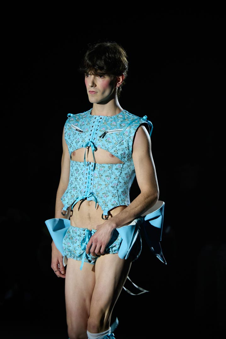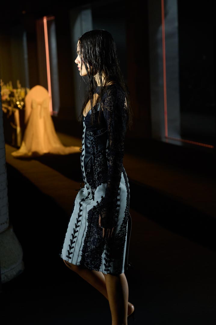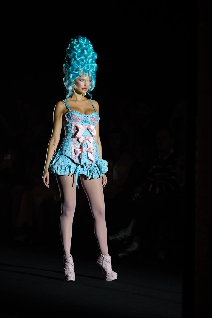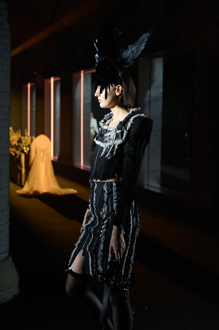 Inspired by Sofia Coppola's Marie Antoinette, the collection redefines the Rococo aesthetic from a youthful, ironic and culturally restless perspective. This collection projects a dialogue between past and present, where corset silhouettes and dramatic volumes become vehicles for exploring new forms of luxury. The use of brocades, taffetas, and denim, along with up-cycling, redefines Baroque codes from a sustainable ethic, without renouncing to artifice.
