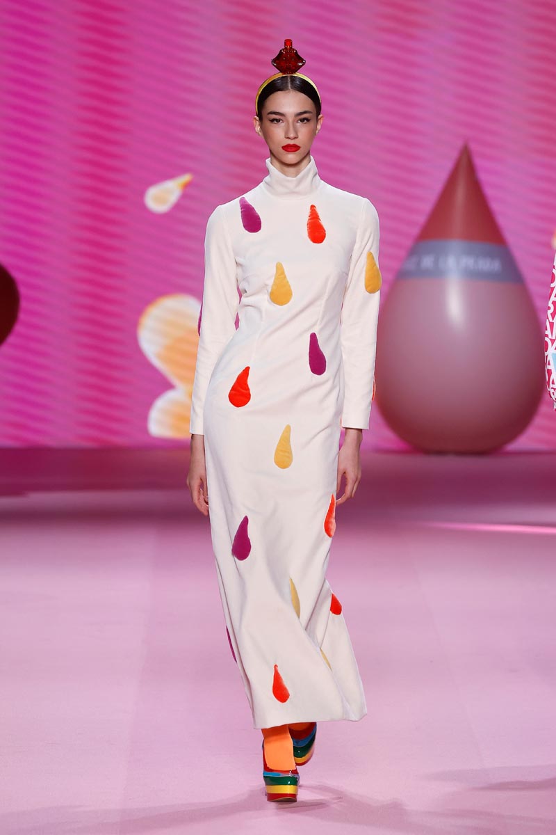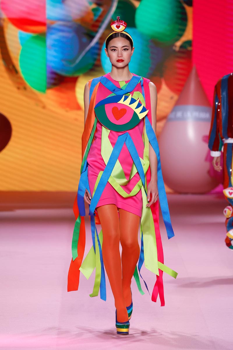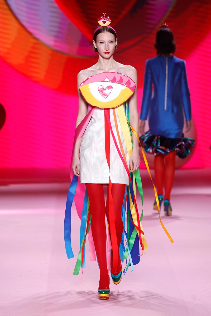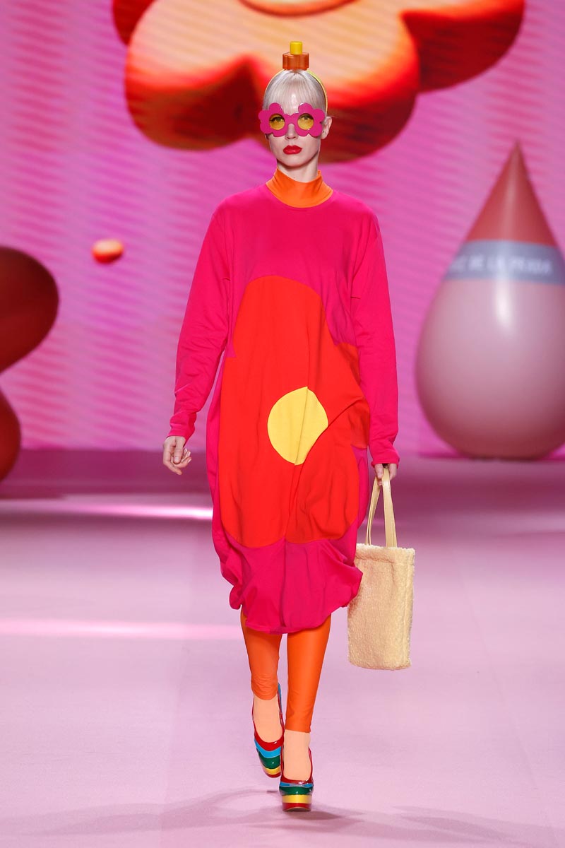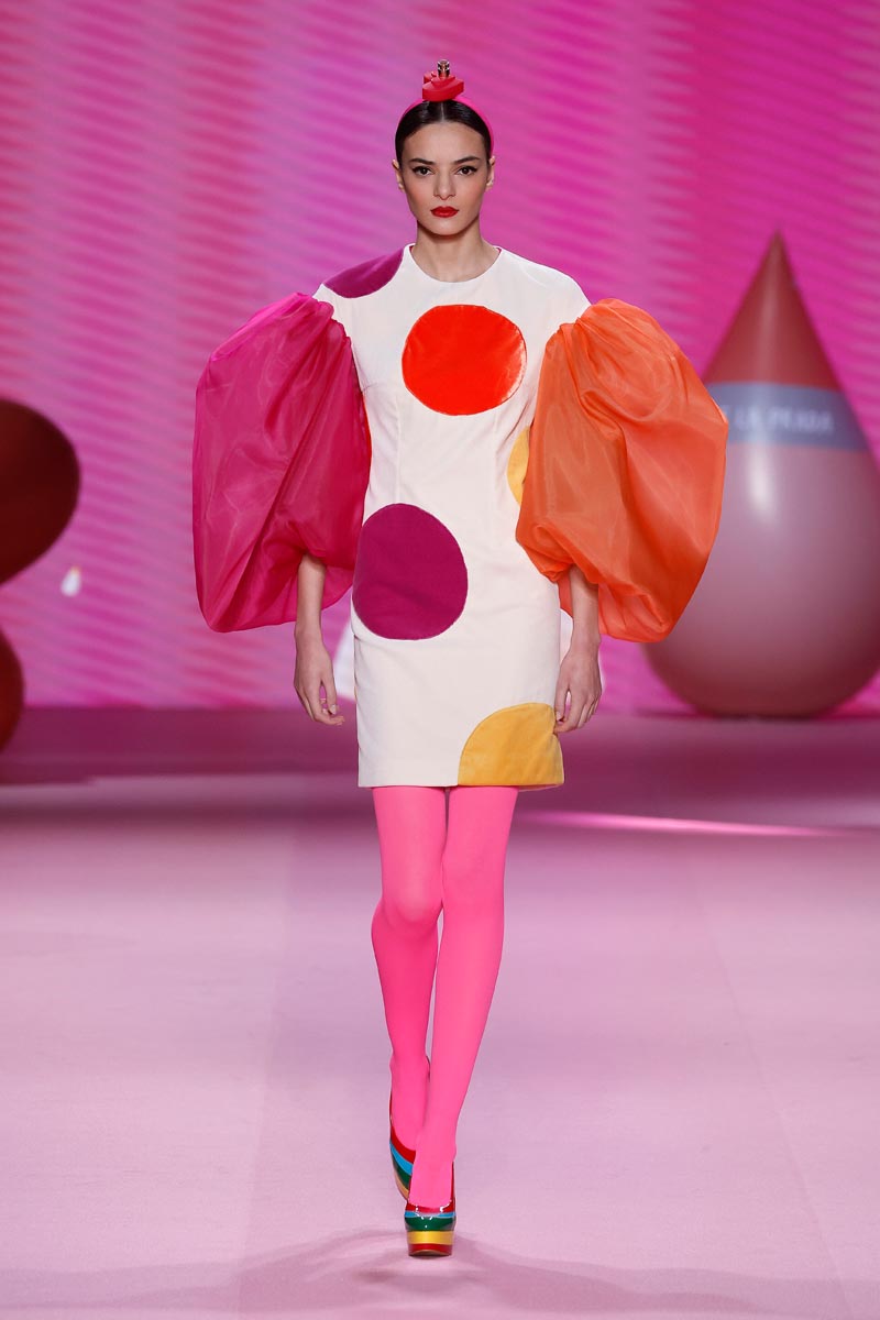 Ágatha Ruiz de la Prada presents her new fall-winter 2023/2024 collection at Mercedes-Benz Fashion Week Madrid. Her iconic perfumes, and particularly her flasks, inspire her to create a tribute fashion show full of colour and optimism.
