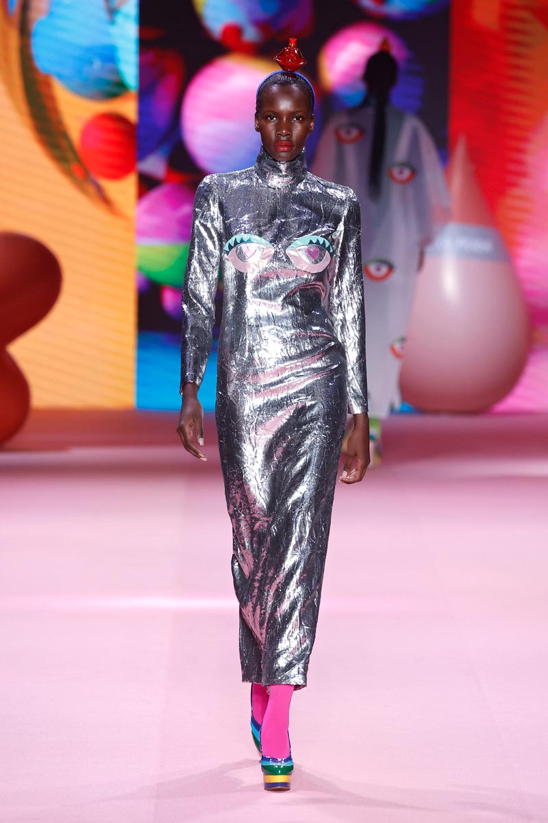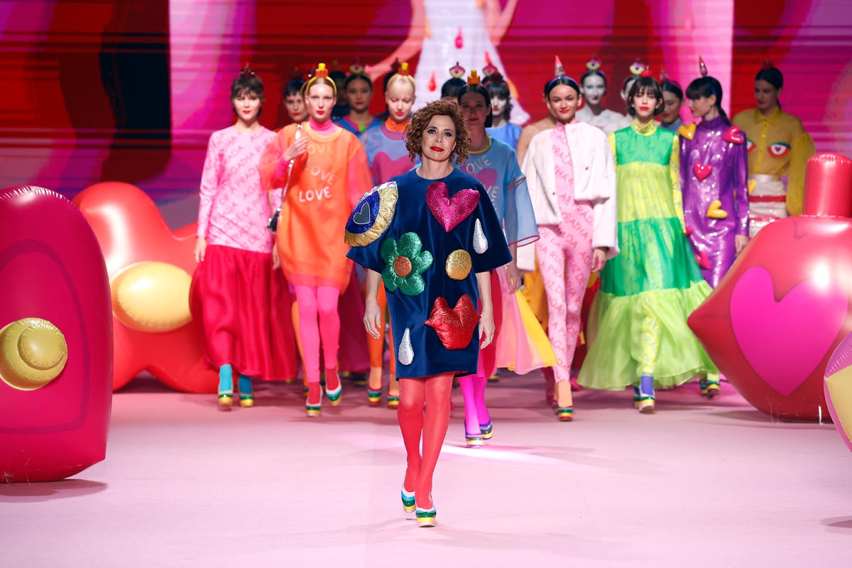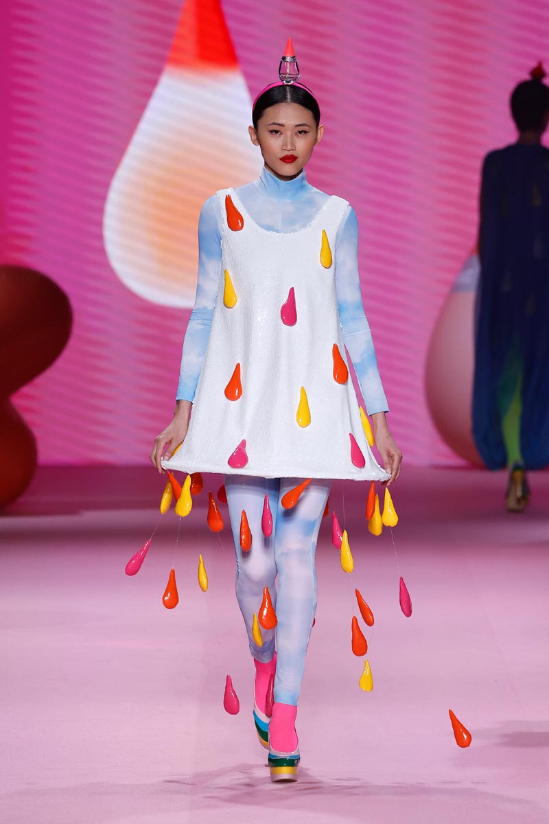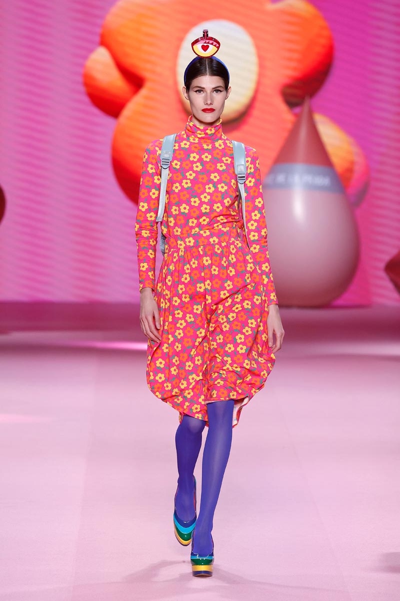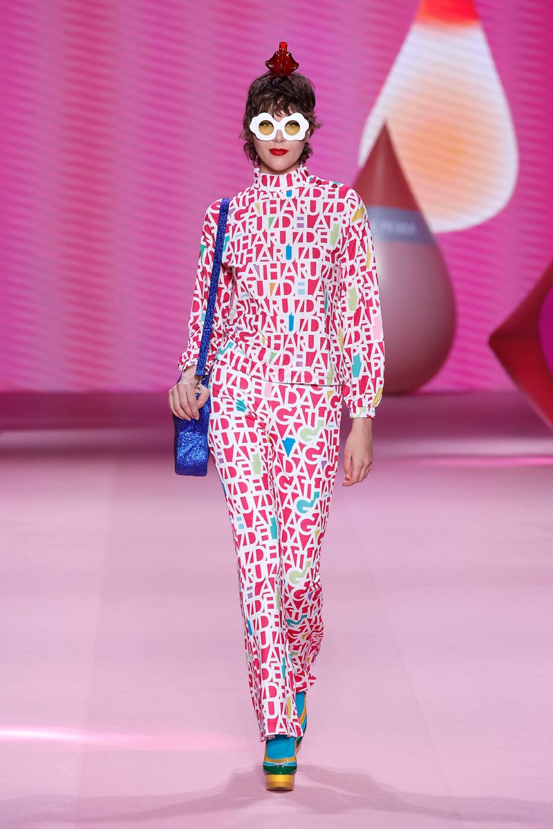 Ágatha Ruiz de la Prada presents her new fall-winter 2023/2024 collection at Mercedes-Benz Fashion Week Madrid. Her iconic perfumes, and particularly her flasks, inspire her to create a tribute fashion show full of colour and optimism.