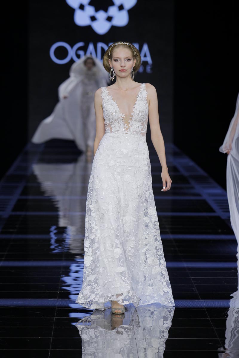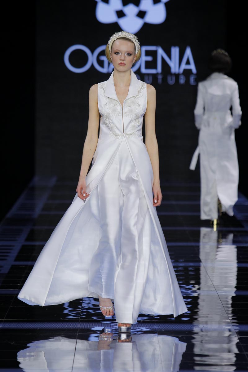 Ogadenia Couture brings together tradition and innovation at Barcelona Bridal Fashion Week. ‘Classics that make you fall in love‘, a collection based on fashion patterns that made movie history, as well as fashion from Paris and the United States of America during last century’s decades; the 20s, 30s, 40s, 50s, that surprises with sensual, as well as sober and elegant, designs. A part of the collection is drawn up from gentleman’s tailoring patterns and adapted to women’s figures, in combination with purely feminine, delicate designs showcasing an important commitment to the openwork craft of Ingenio “a traditional and unique art of our homeland that I hope to make known internationally” affirms the Canarian creator.