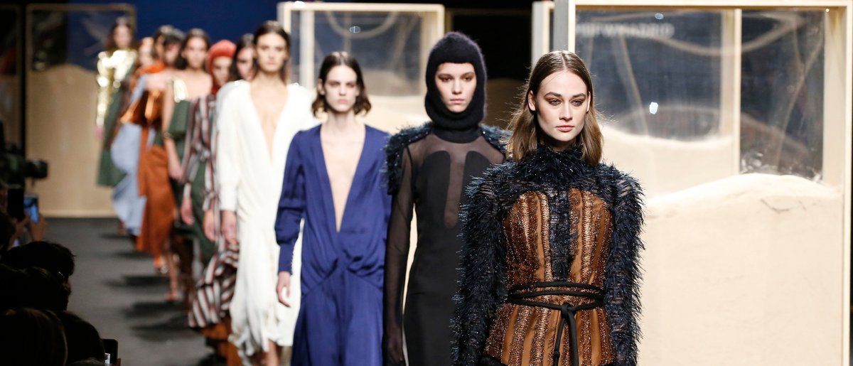 Earth, orange and copper tones are the guiding thread of a proposal full of brilliant sparkles, in which lamé and technical fabrics rise up again as protagonists. True to her style, Beatriz Peñalver fills her garments with tulle and quilted structures with volume.