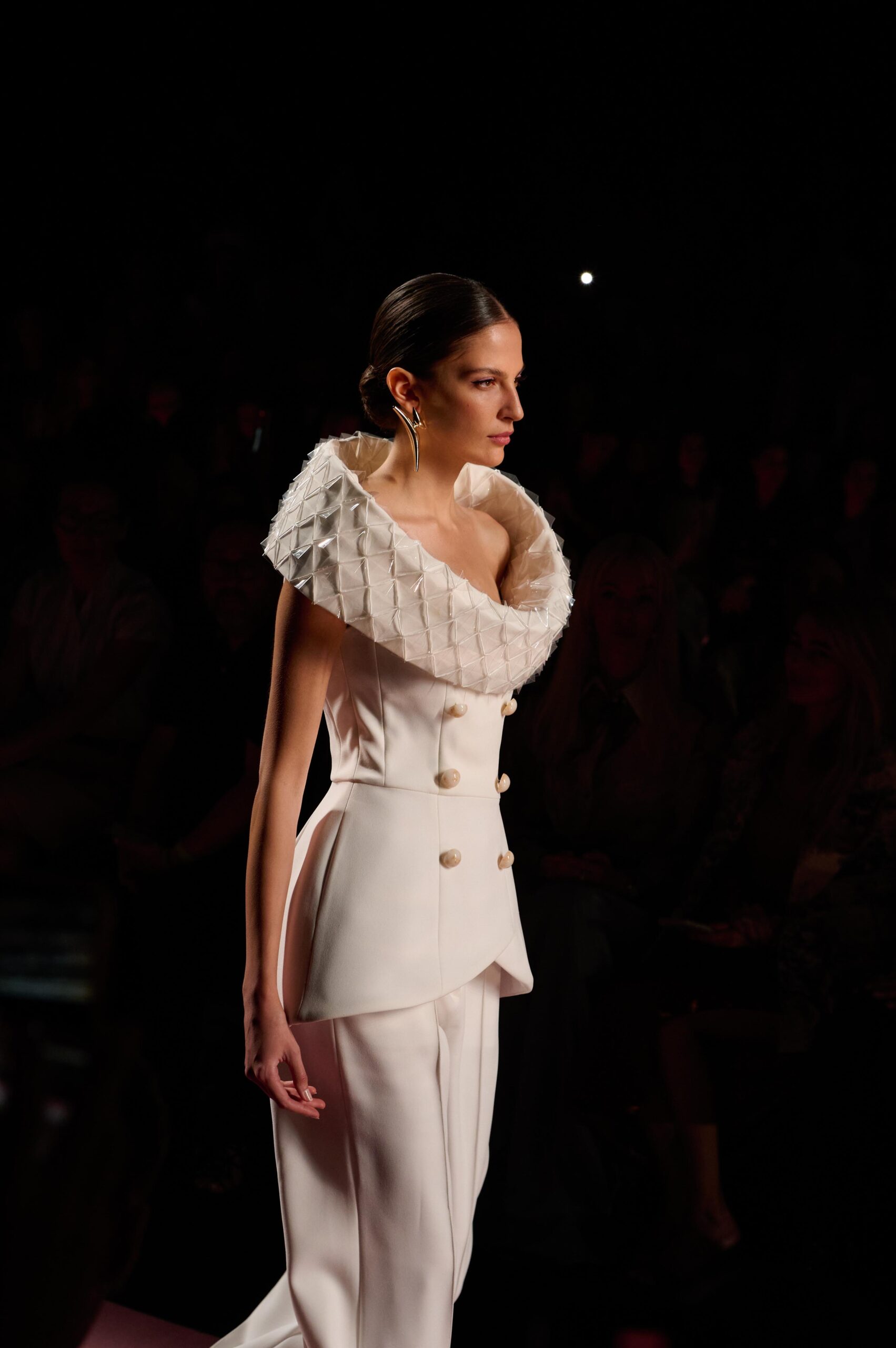 Isabel Sanchís presented her Spring/Summer 2026 collection at Mercedes-Benz Fashion Week Madrid, a collection sustained on two pillars: the influence of architectural forms and the essence of Japanese culture. The catwalk becomes thus a space for dialogue between opposing values—tradition and modernity, structure and fluidity, discipline and innovation—which converge in an aesthetic narrative that looks both to the past as well as the future.