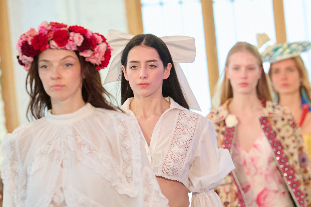 El desfile reúne vestidos ligeros, bordados, encajes y piezas de complementos que forman parte del imaginario Adlib. Los materiales responden a esa misma lógica de cercanía con el entorno y construyen una atmósfera marcada por la ligereza y la textura. El color mantiene la identidad histórica de la propuesta.