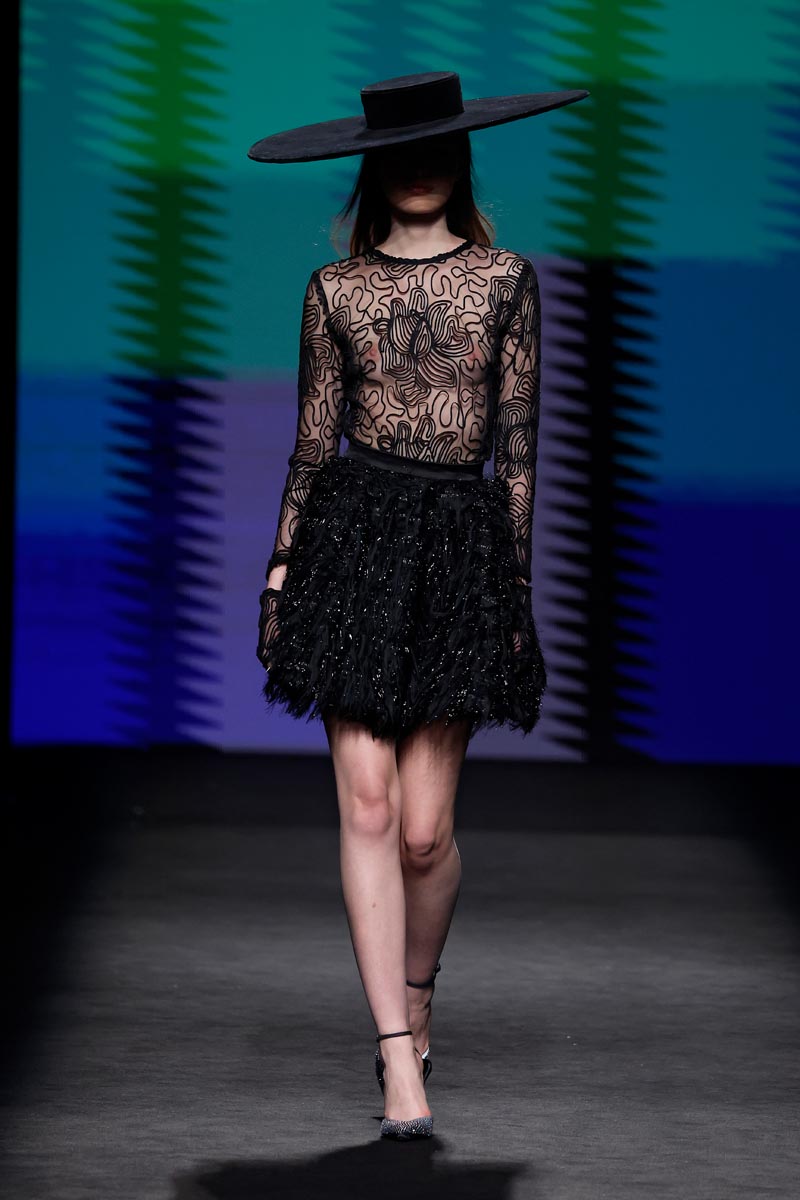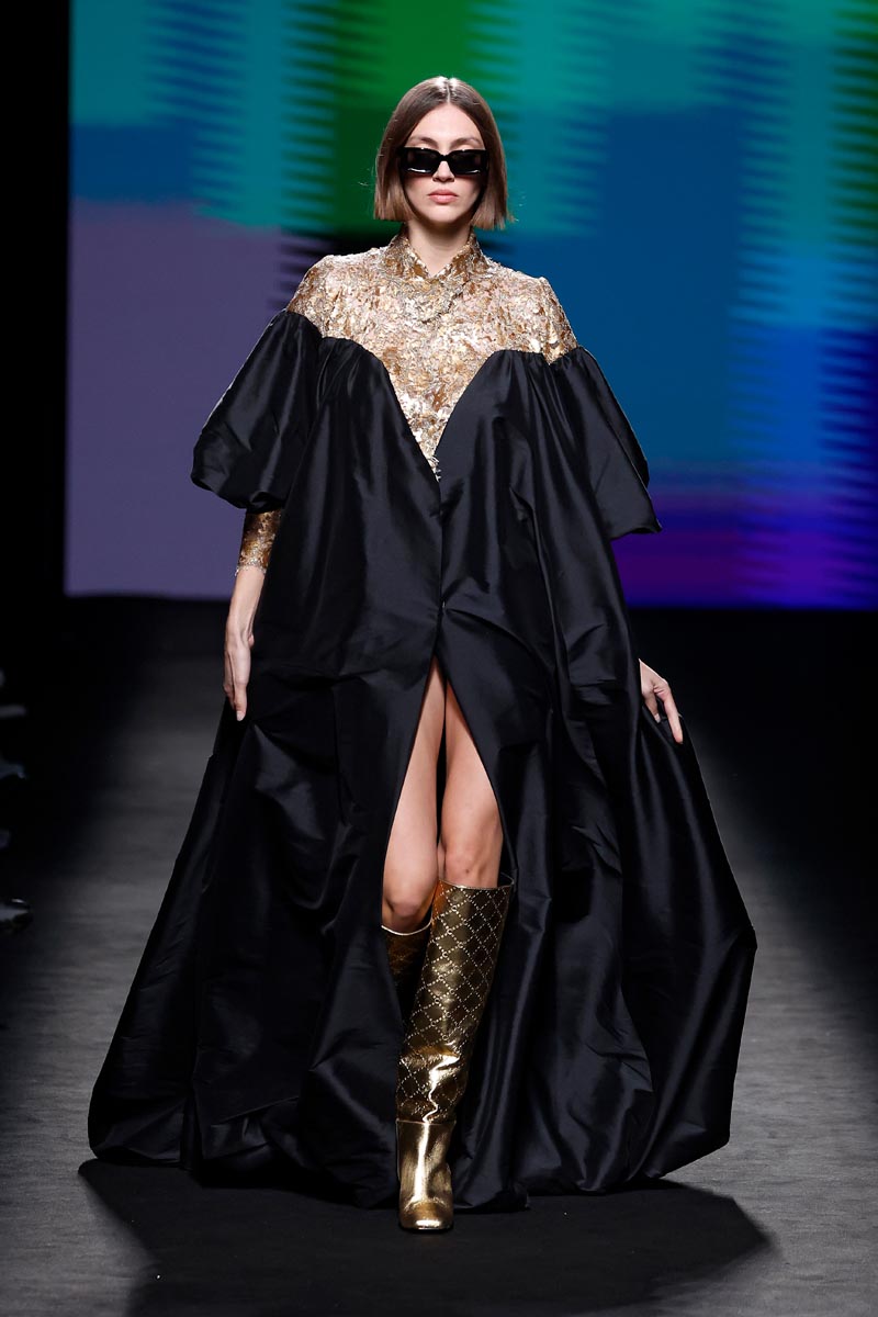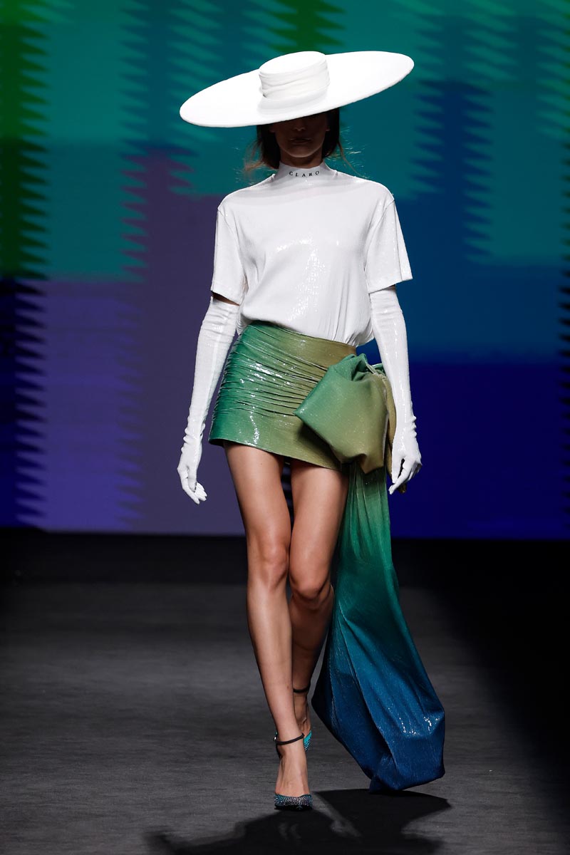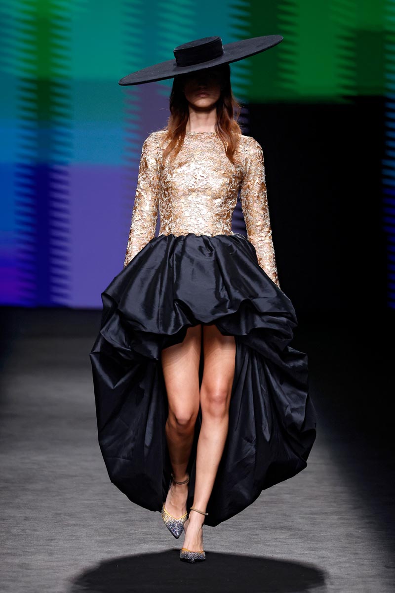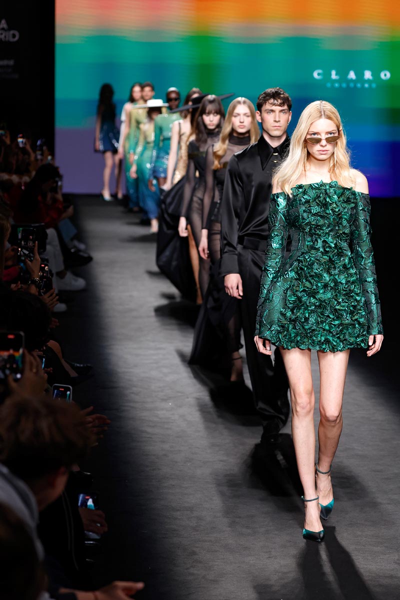 Claro Couture presents his ‘DARE‘ collection at Mercedes Benz Fashion Week Madrid based on the challenge of mixing haute couture pieces with ready-to-wear garments, seeking a balance.
