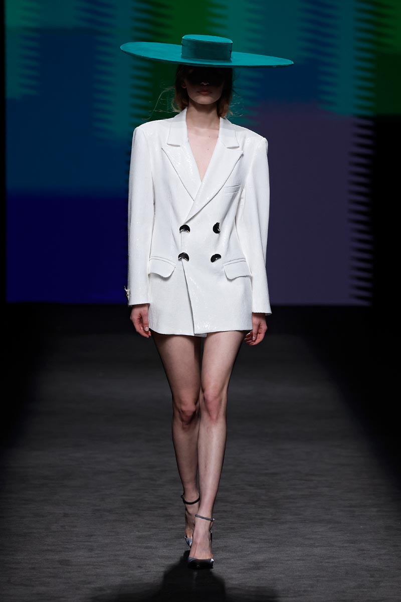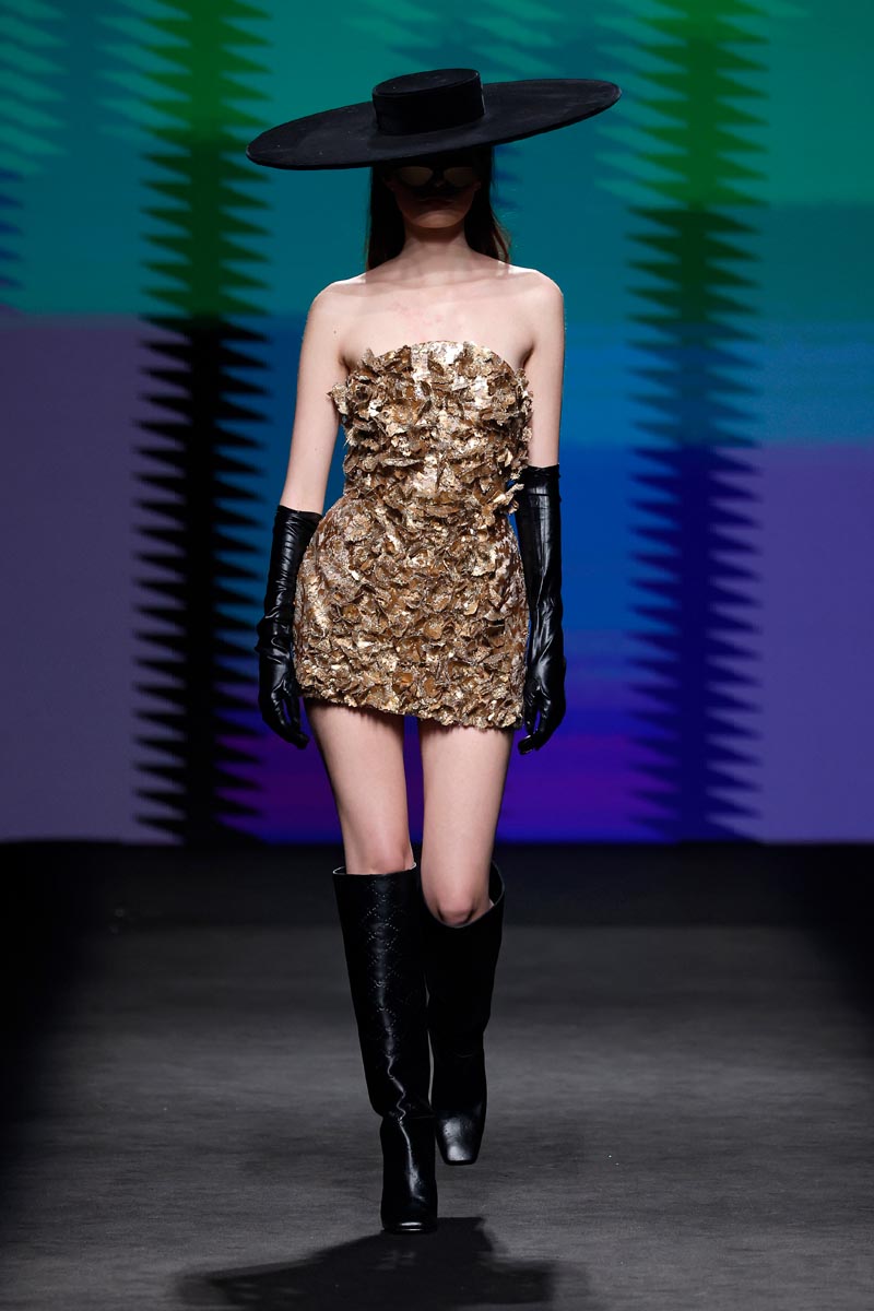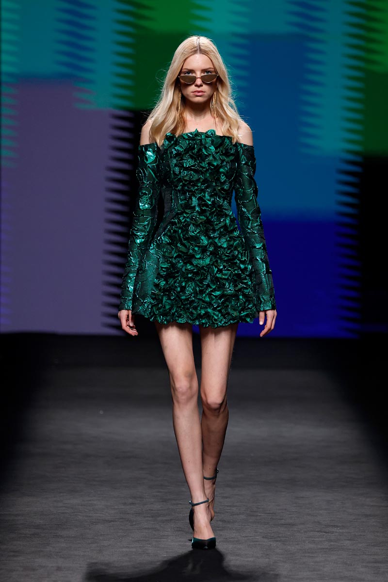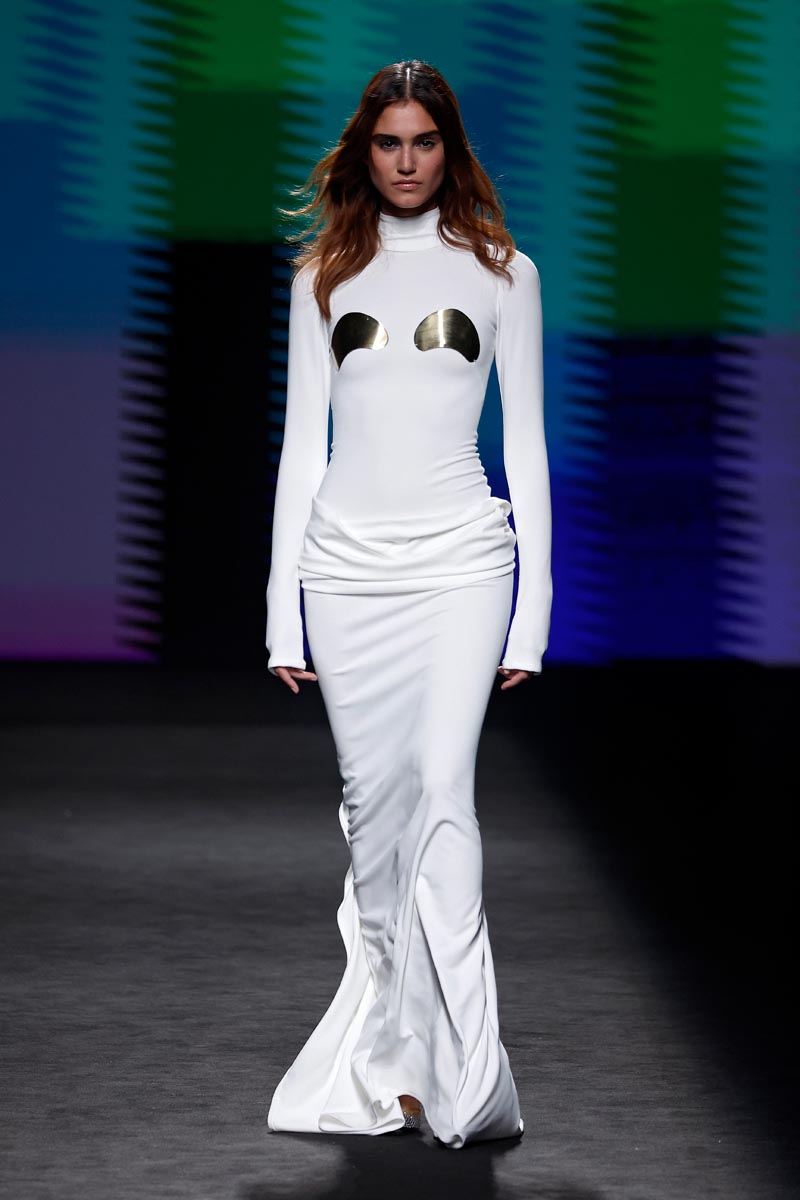 Claro Couture presents his ‘DARE‘ collection at Mercedes Benz Fashion Week Madrid based on the challenge of mixing haute couture pieces with ready-to-wear garments, seeking a balance.