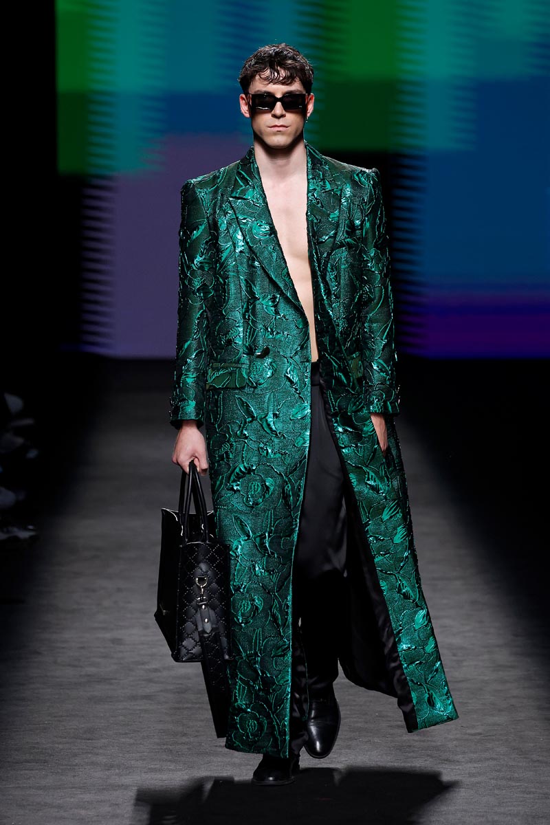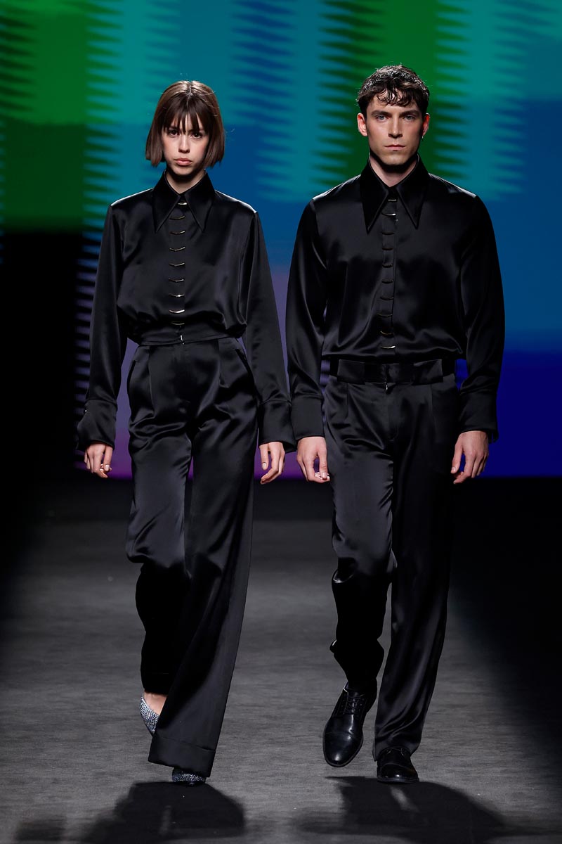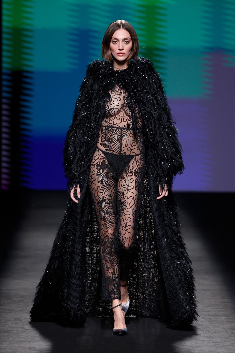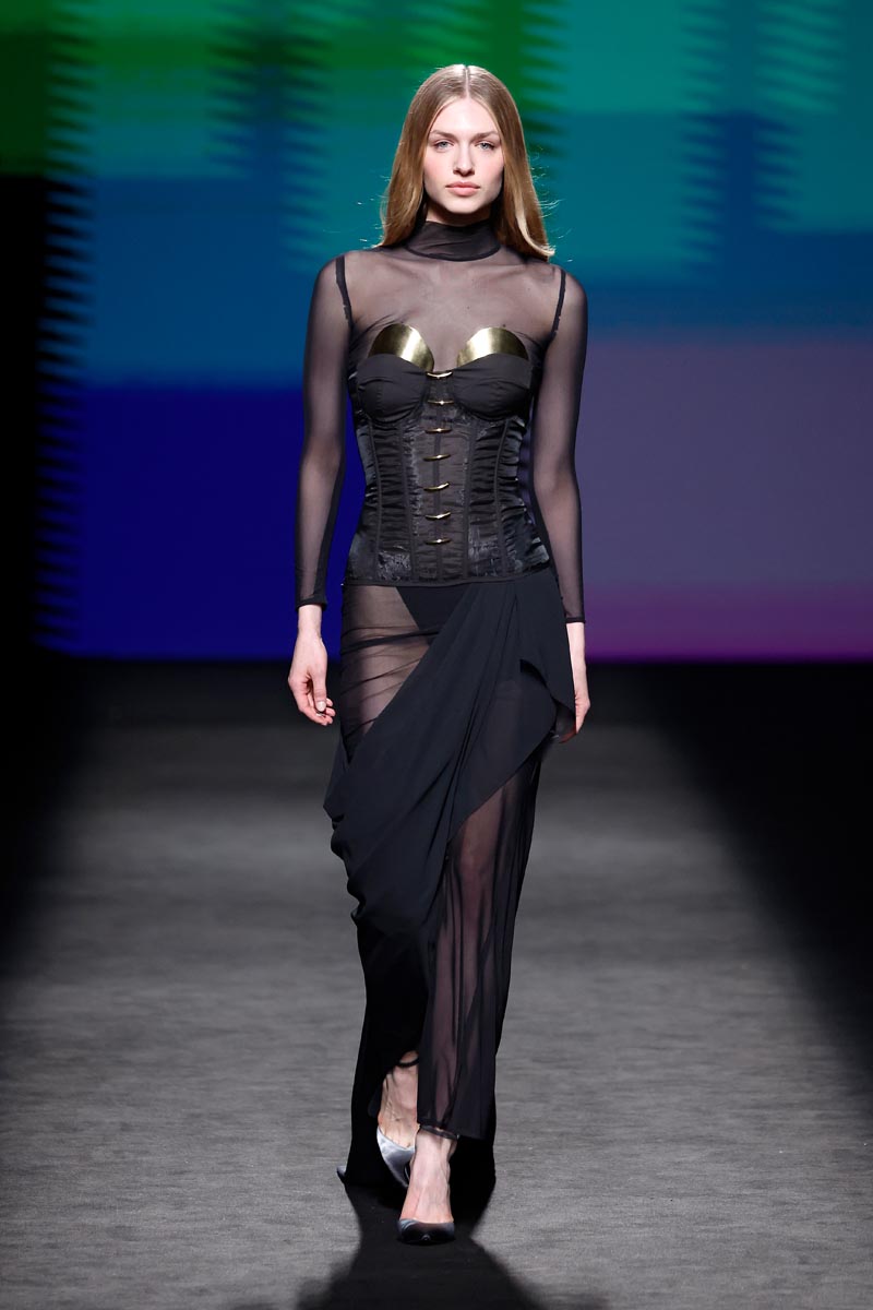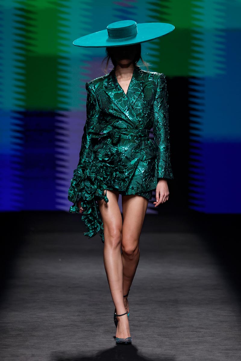 Claro Couture presents his ‘DARE‘ collection at Mercedes Benz Fashion Week Madrid based on the challenge of mixing haute couture pieces with ready-to-wear garments, seeking a balance.