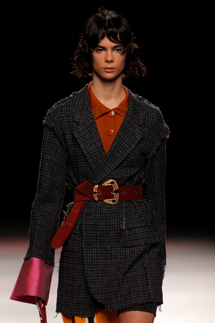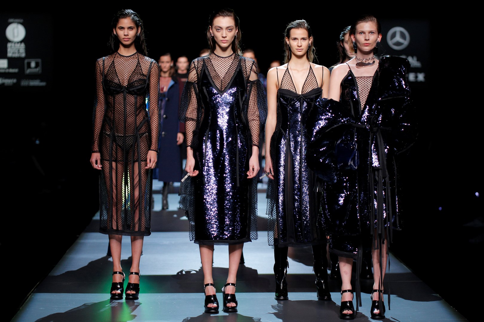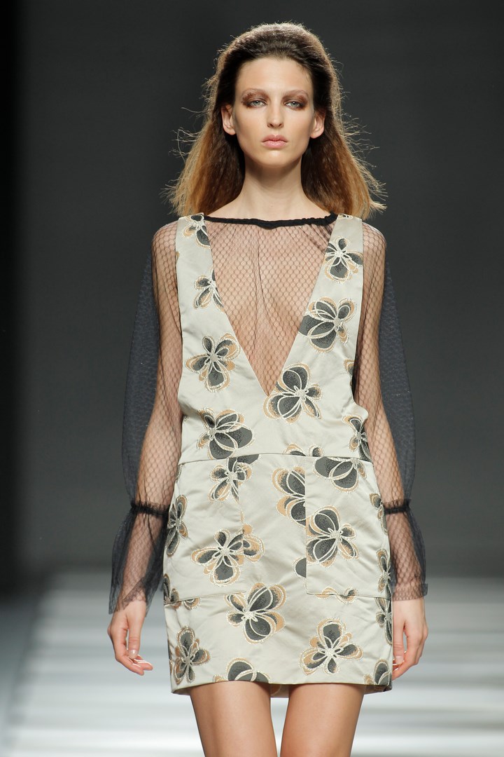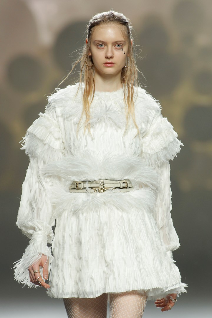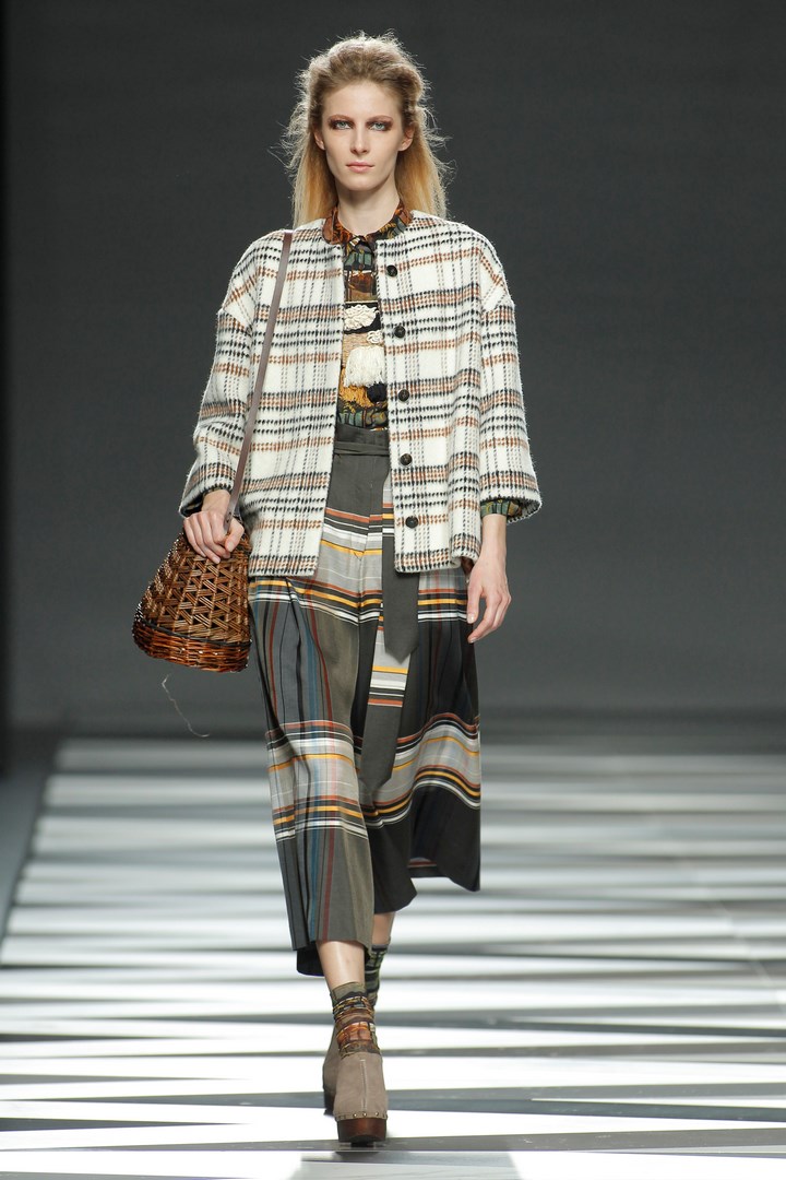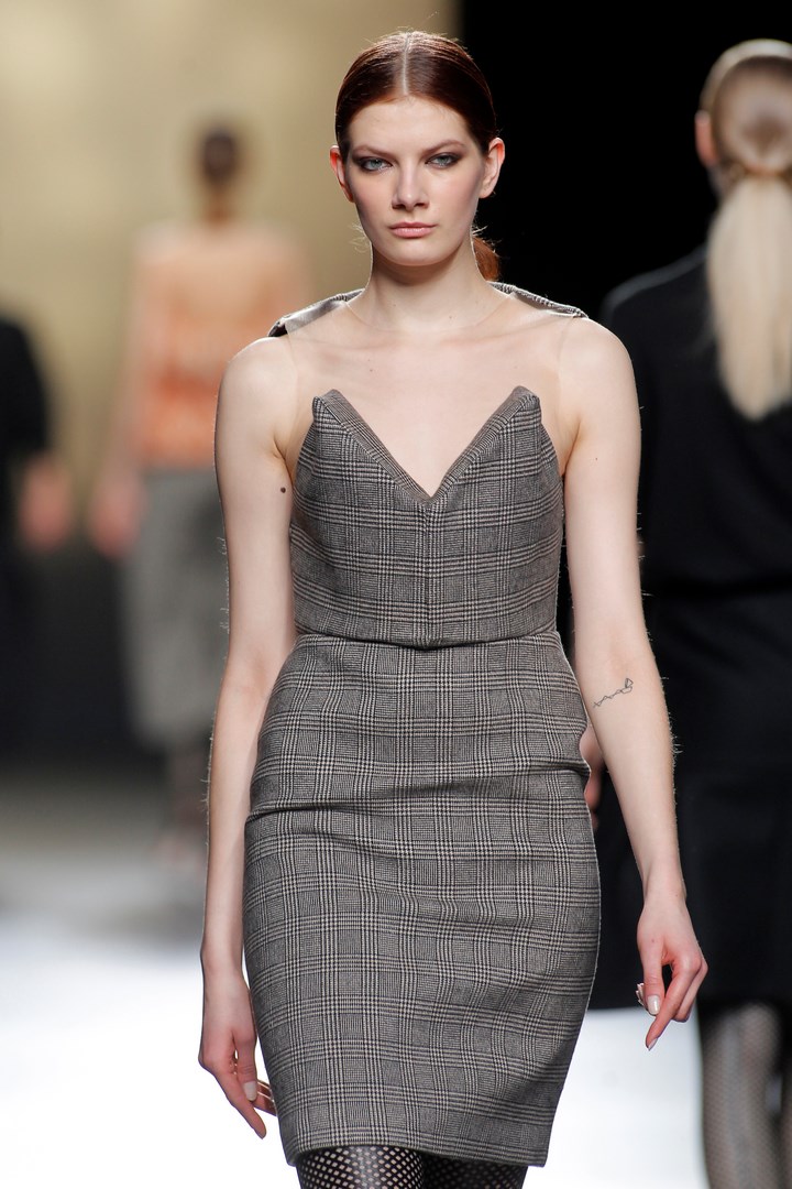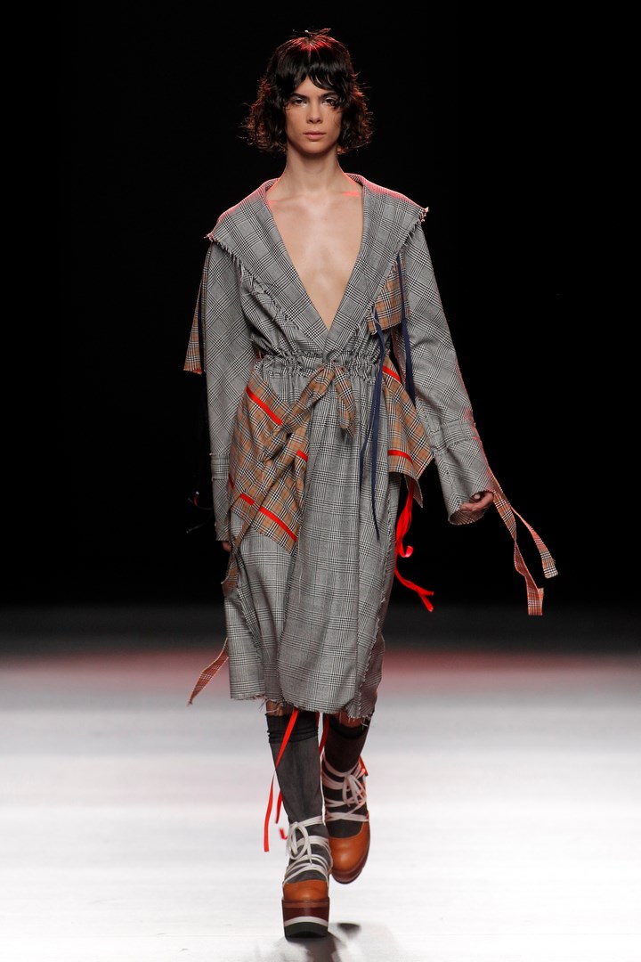 Moises Nieto opened the second day of fashion shows in MBFWM. The designer from Gijón presented a feisty and protesting woman, inspired by Spain in the 40s and in the aftermath of the Civil War. Nieto gives voice to femininity in the shape of mini dresses and flounces outlining the silhouette. Fraying tartan stands out as the star of the collection in contrast to metallic pleats. A mix of fabrics and textures that move between rigidity and languor claiming comfort.