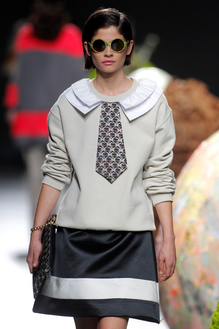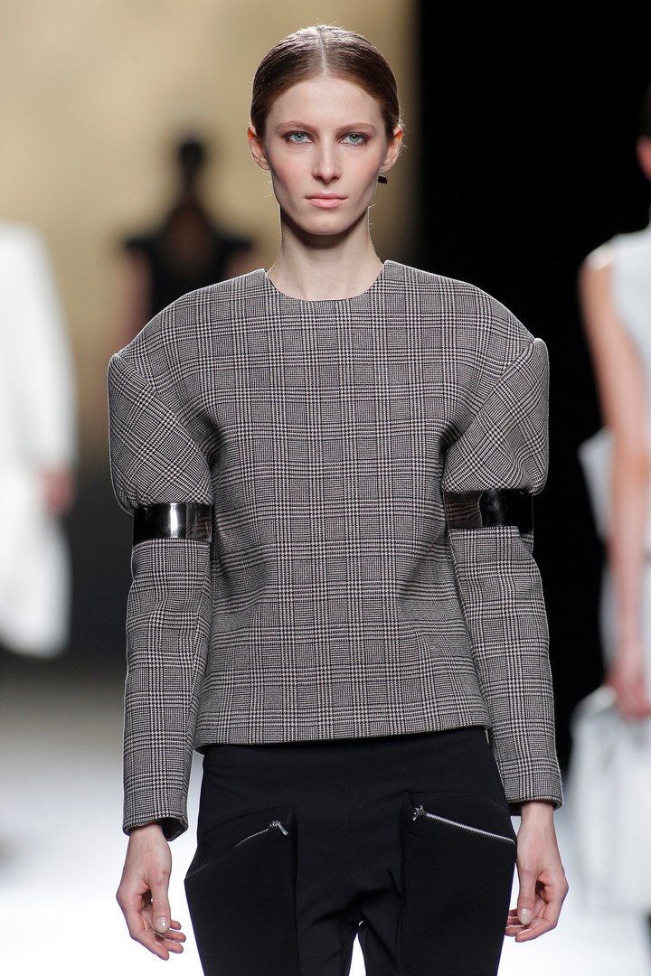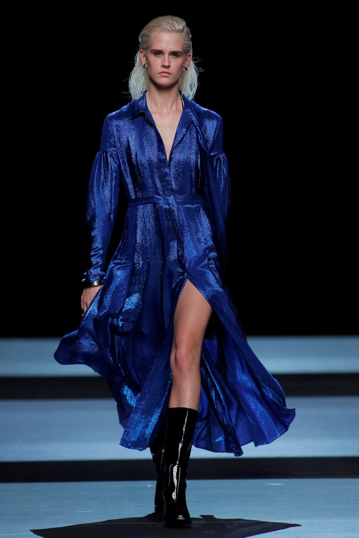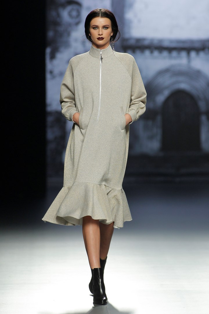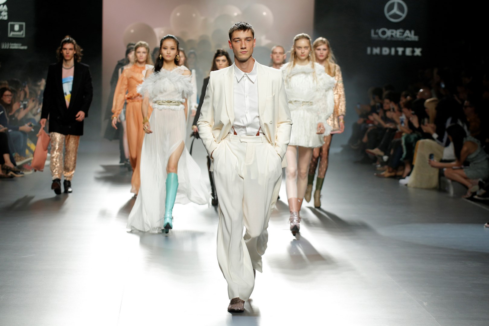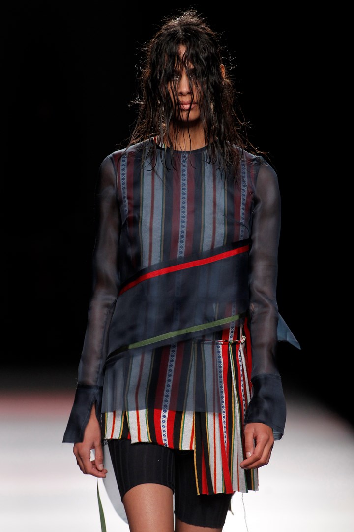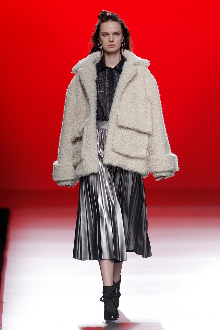Moises Nieto opened the second day of fashion shows in MBFWM. The designer from Gijón presented a feisty and protesting woman, inspired by Spain in the 40s and in the aftermath of the Civil War. Nieto gives voice to femininity in the shape of mini dresses and flounces outlining the silhouette. Fraying tartan stands out as the star of the collection in contrast to metallic pleats. A mix of fabrics and textures that move between rigidity and languor claiming comfort.