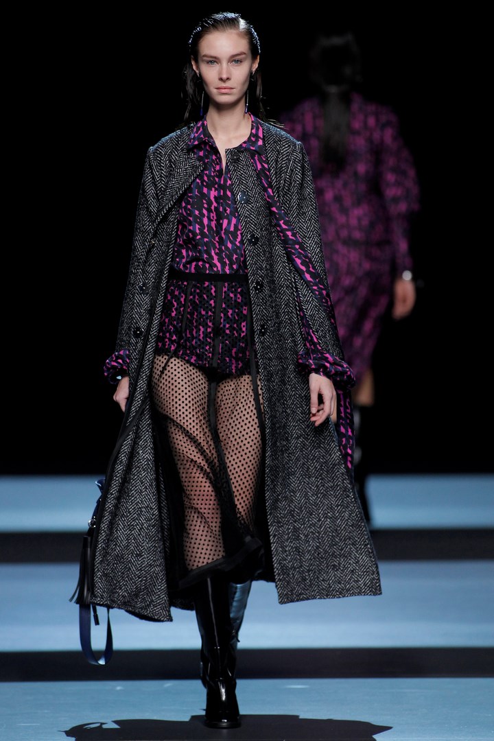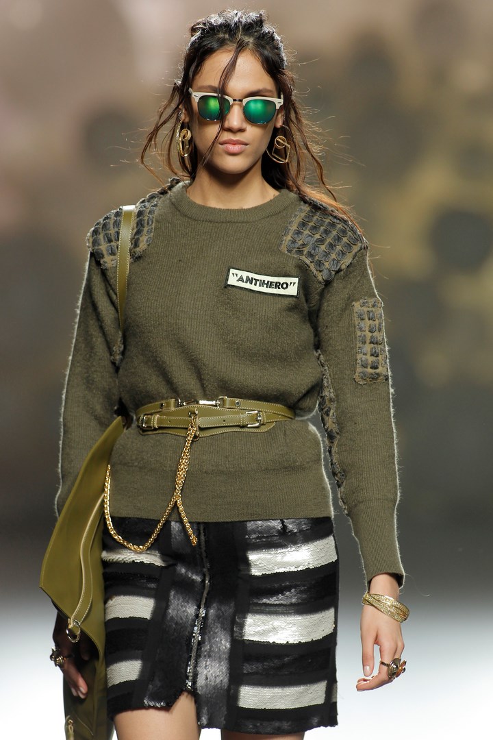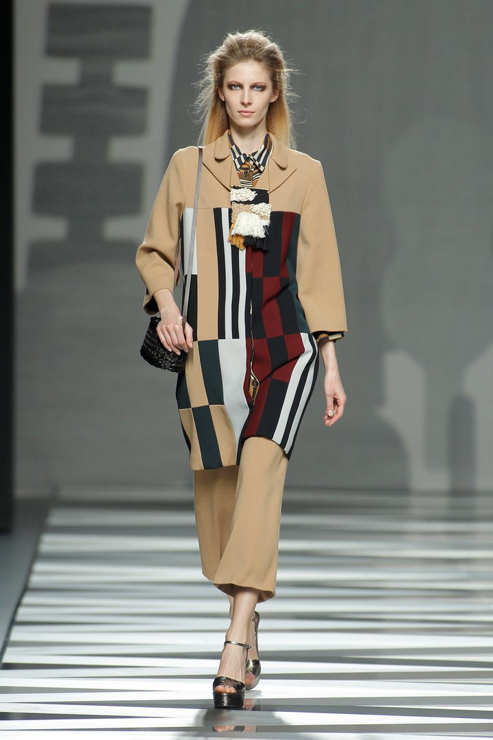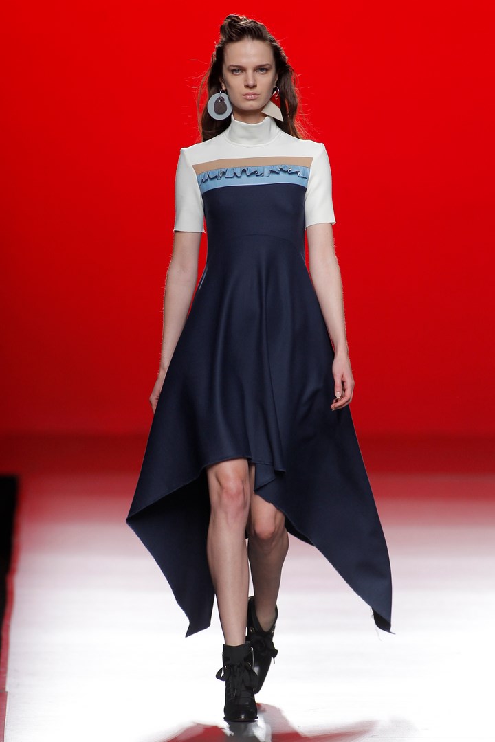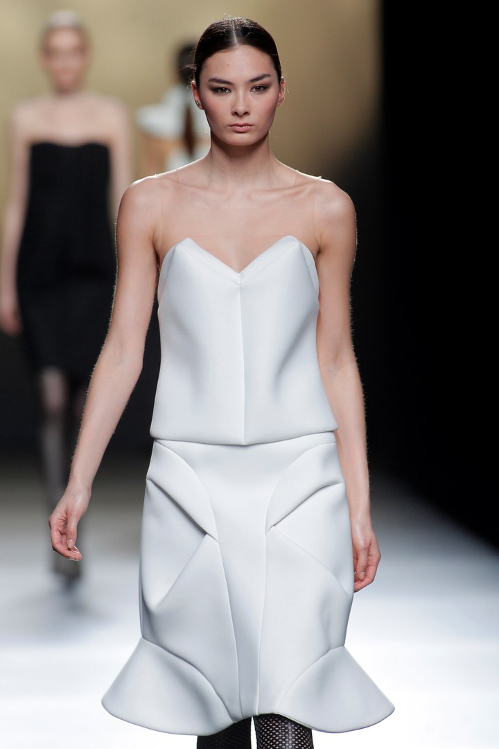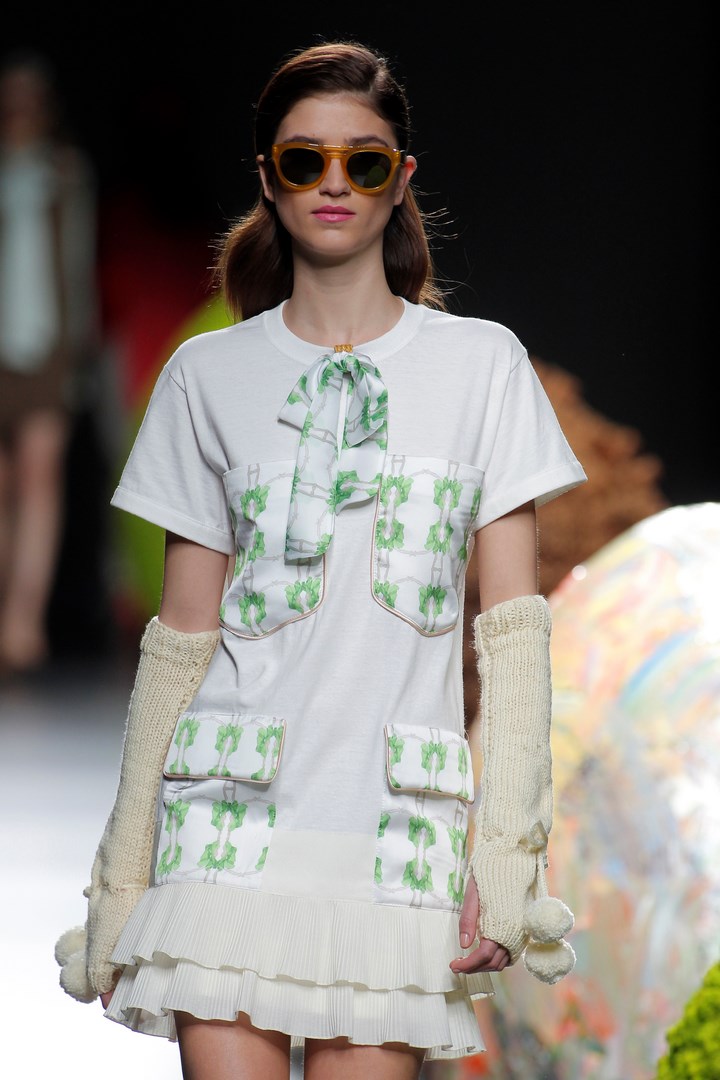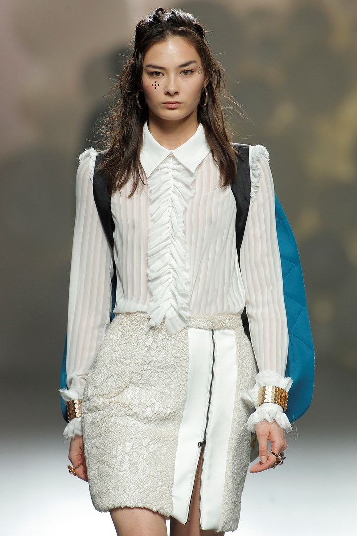 Moises Nieto opened the second day of fashion shows in MBFWM. The designer from Gijón presented a feisty and protesting woman, inspired by Spain in the 40s and in the aftermath of the Civil War. Nieto gives voice to femininity in the shape of mini dresses and flounces outlining the silhouette. Fraying tartan stands out as the star of the collection in contrast to metallic pleats. A mix of fabrics and textures that move between rigidity and languor claiming comfort.