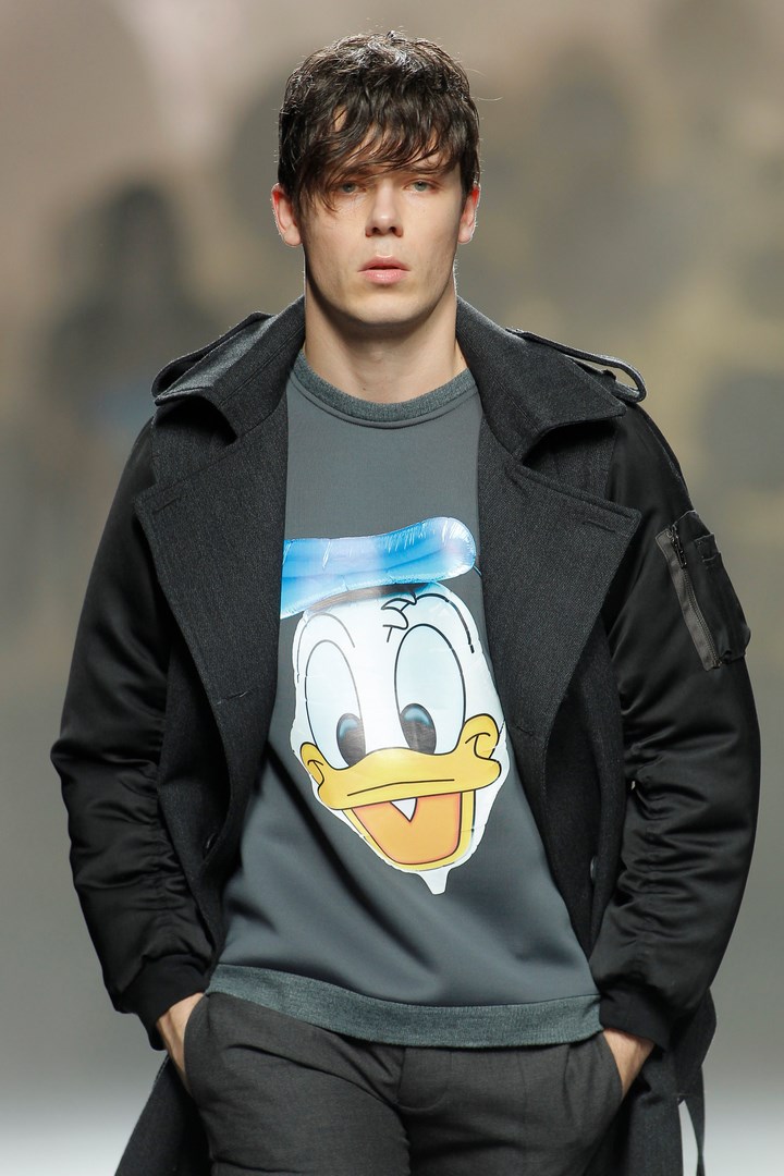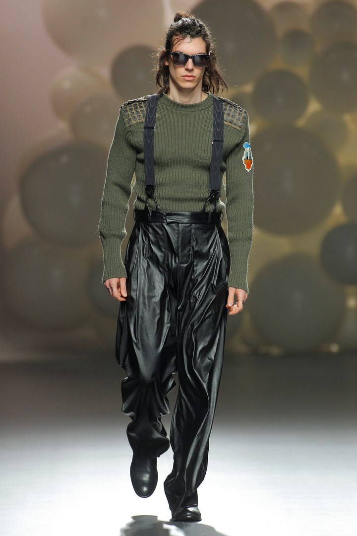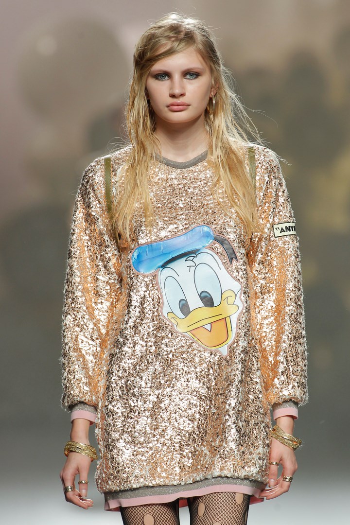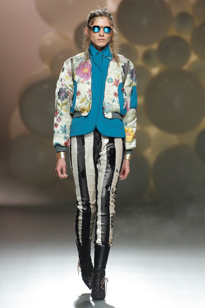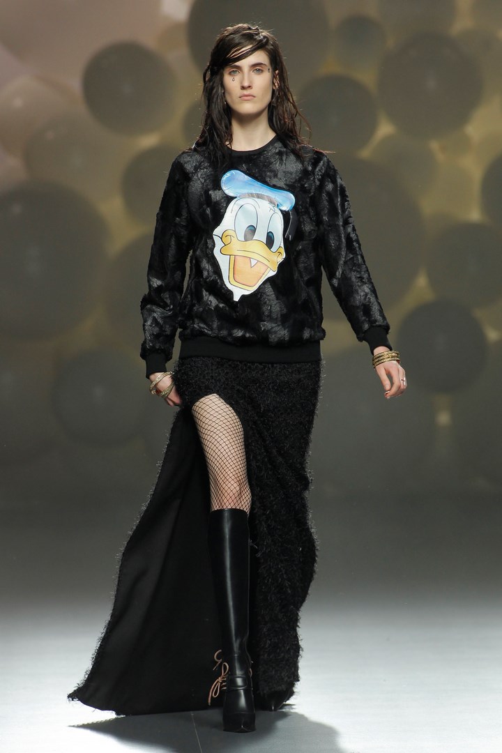 Ana Locking presents "Antihero", a collection which tributes the supporting player symbolized in her proposals by the image of Donald Duck, the eternal antihero. Ingenuity and complexity come together in looks playing with layers and textures of different fabrics. Garments that belong to youth culture such as the bomber jacket come together, and in other cases they are confronted with elaborate pieces of classic tailoring and sophisticated creations, enhancing the exquisiteness of couture for the use of noble materials as well as for the detailed finishes.