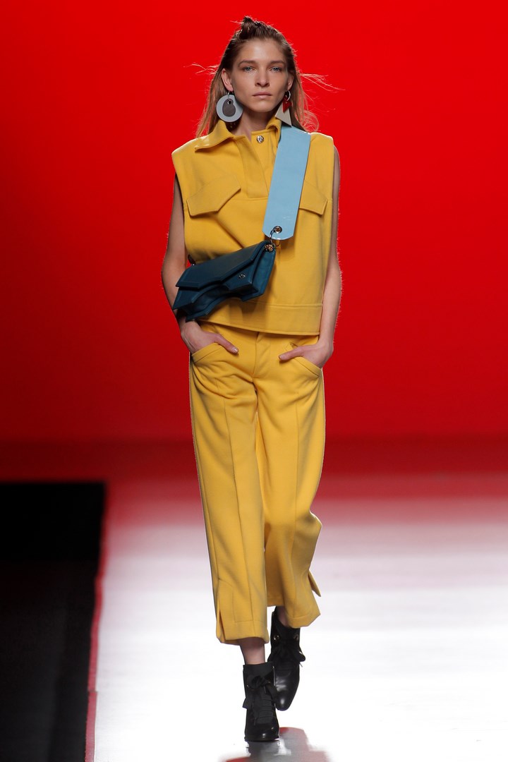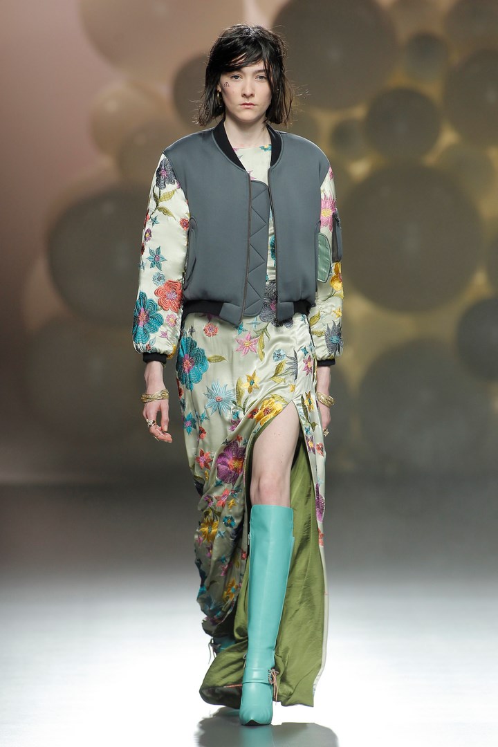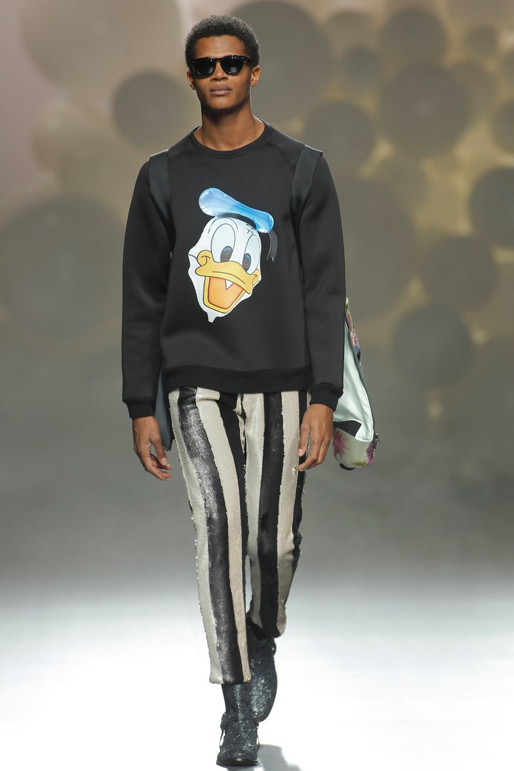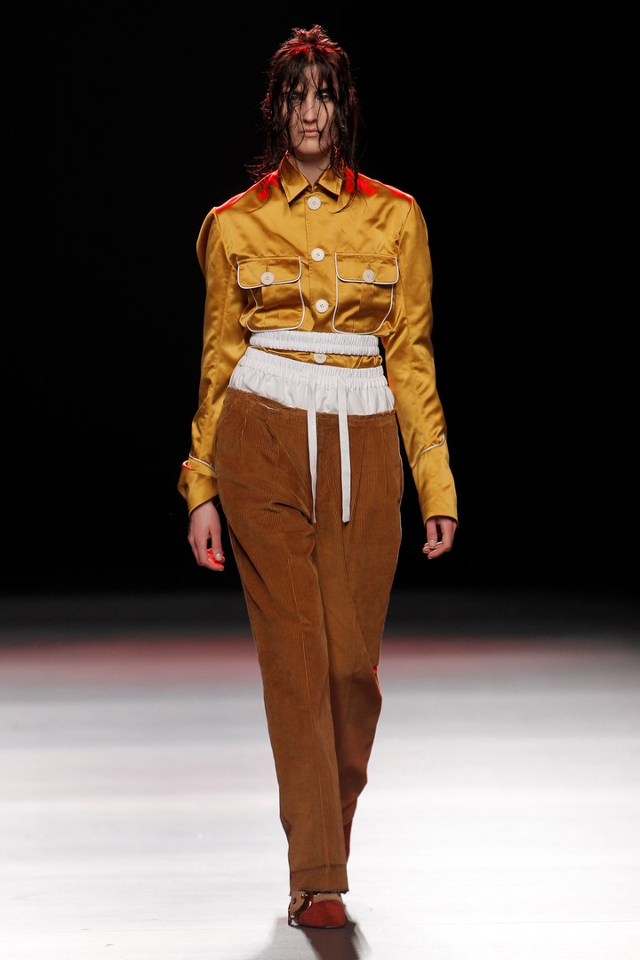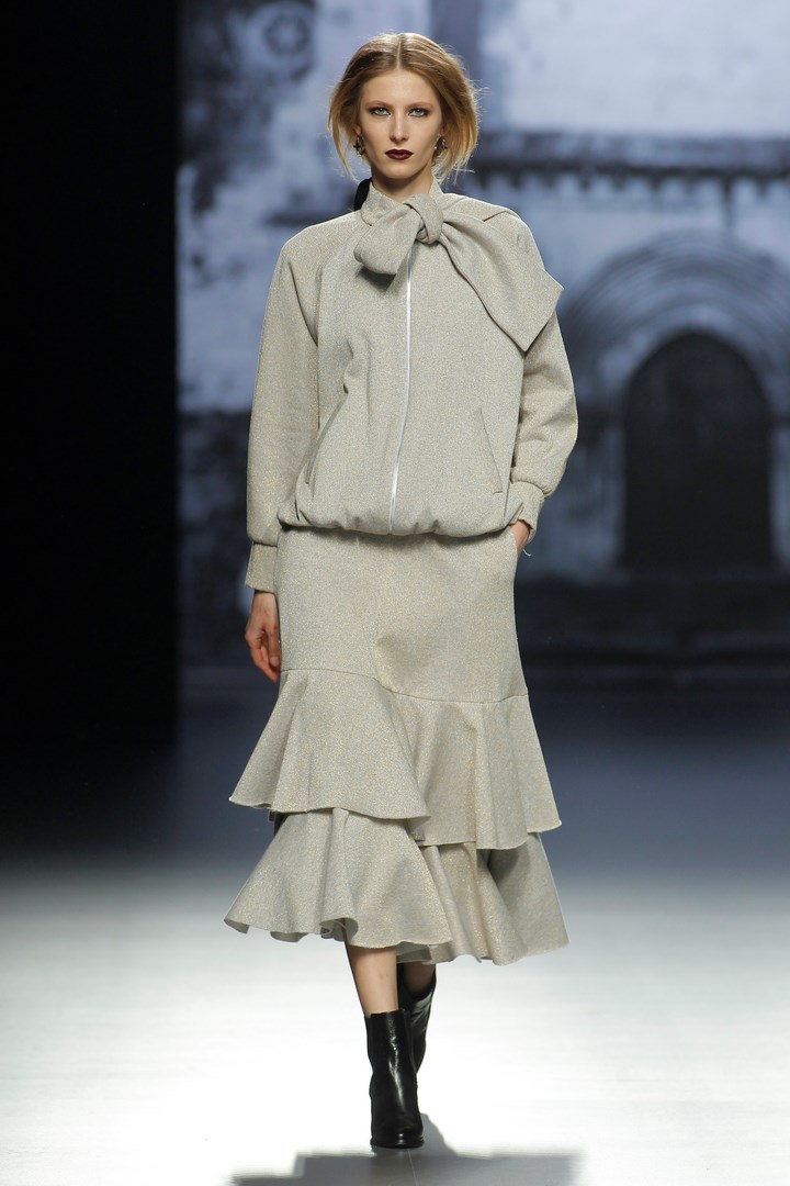 Ana Locking presents "Antihero", a collection which tributes the supporting player symbolized in her proposals by the image of Donald Duck, the eternal antihero. Ingenuity and complexity come together in looks playing with layers and textures of different fabrics. Garments that belong to youth culture such as the bomber jacket come together, and in other cases they are confronted with elaborate pieces of classic tailoring and sophisticated creations, enhancing the exquisiteness of couture for the use of noble materials as well as for the detailed finishes.