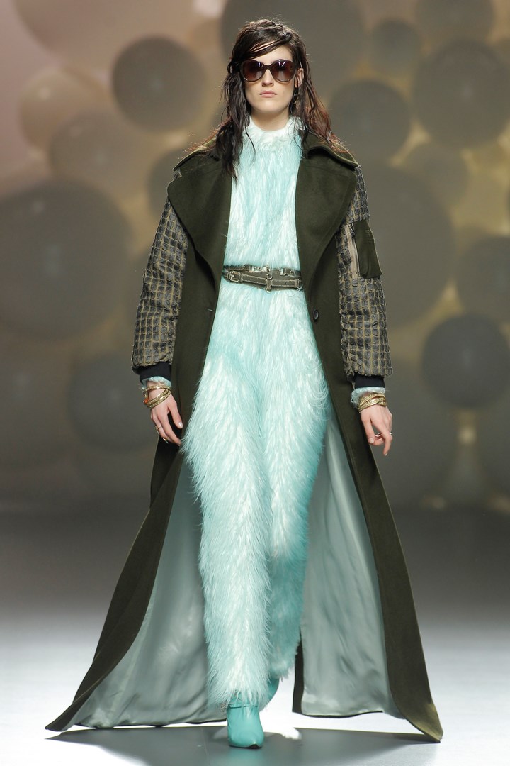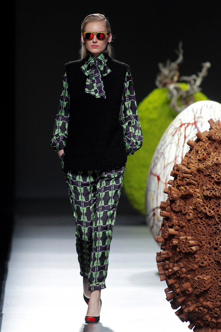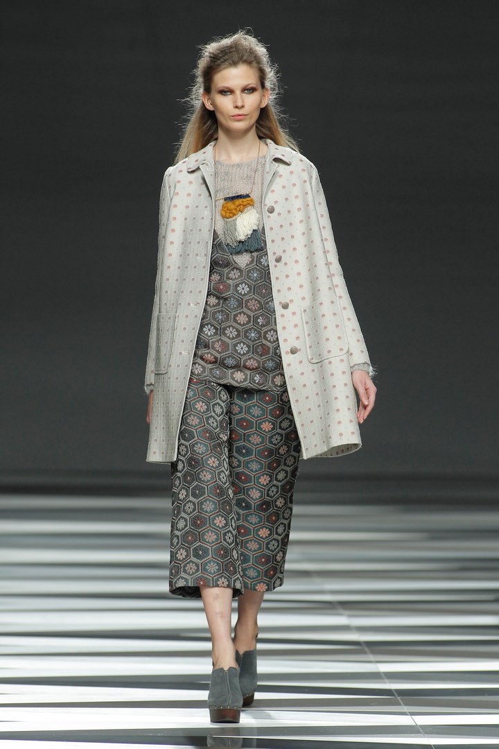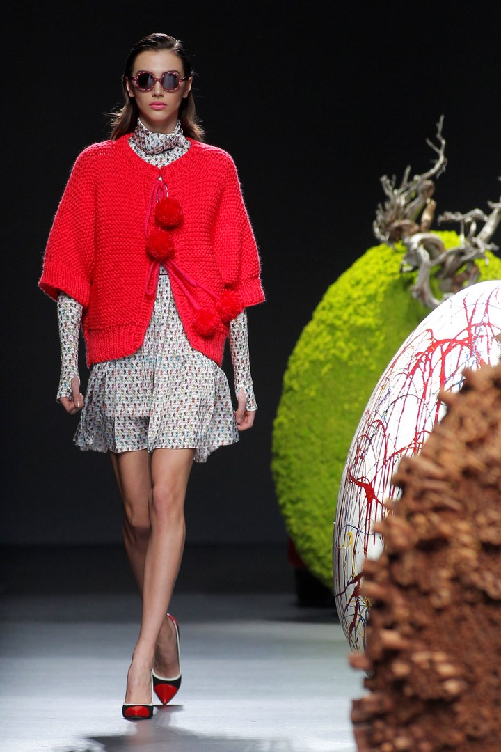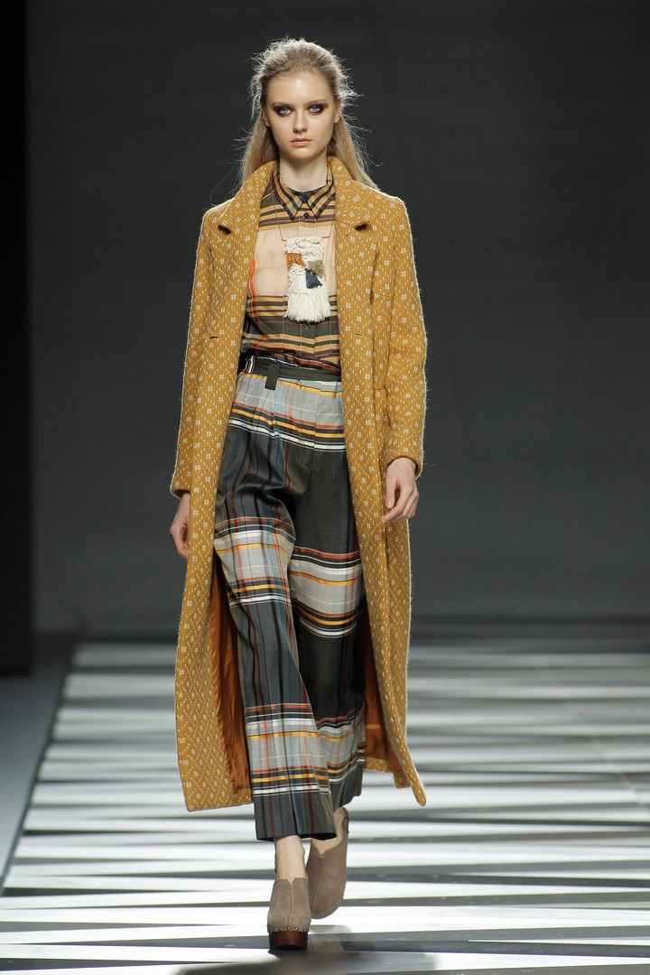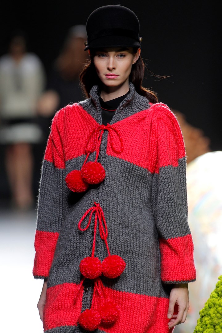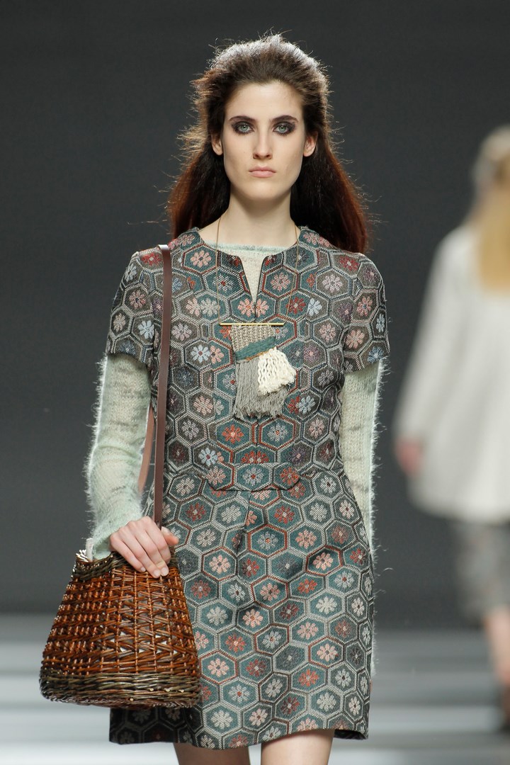 Ailanto is inspired by the paintings of Canadian Lawren Harris. Landscape painting is the starting point for a collection in which forests, mountains, skies and lakes are reflected in the fabric prints. The Muñoz brothers’ winter is tinted in dark tones opposed to bright colours such as turquoise, ocher or violet. Ailanto garments denote a taste for craftsmanship. Folk style dresses with elaborate bodices, patchwork and details of ruffles are key to a proposal drawn up in rich materials such as alpaca, mohair and silk.