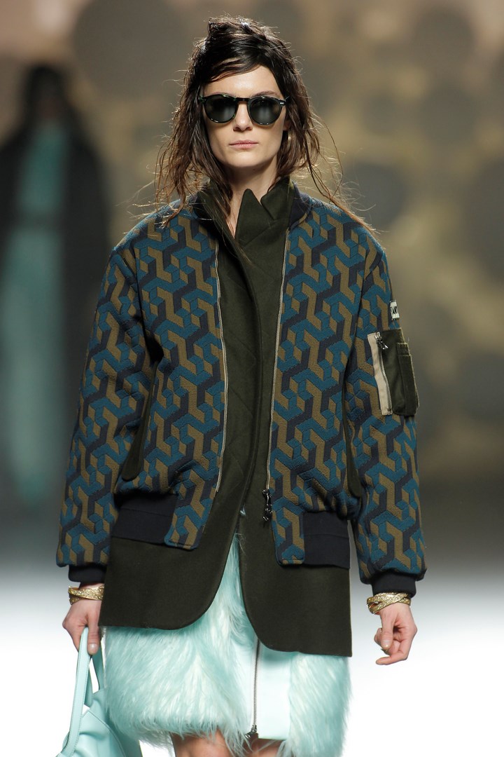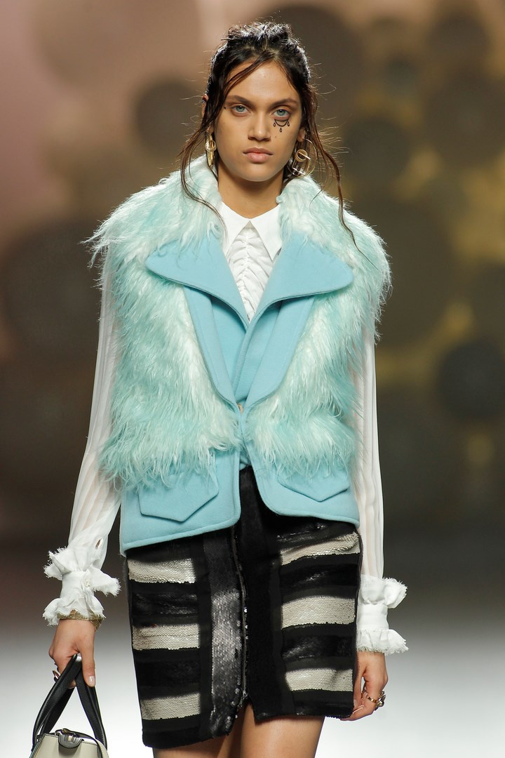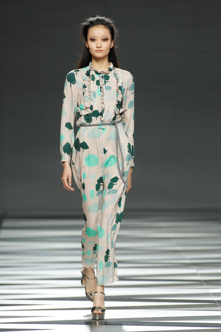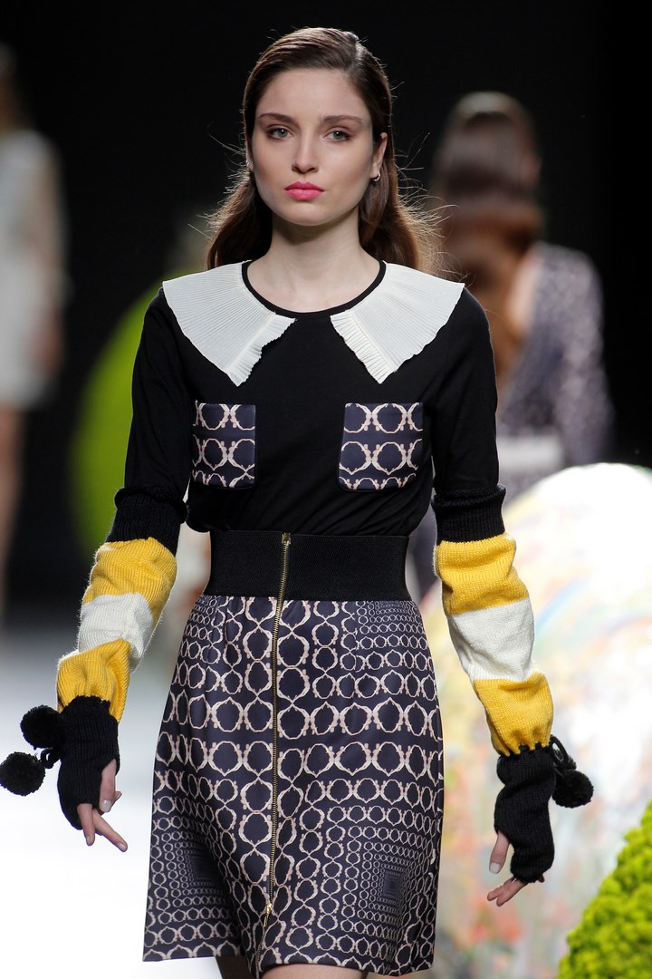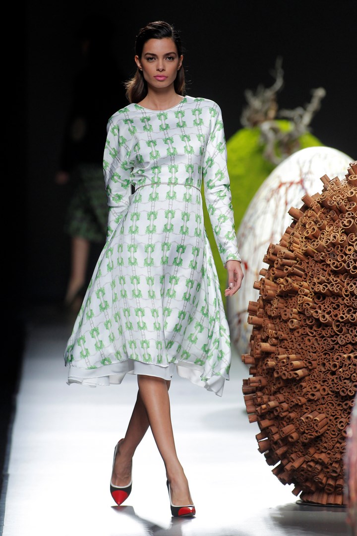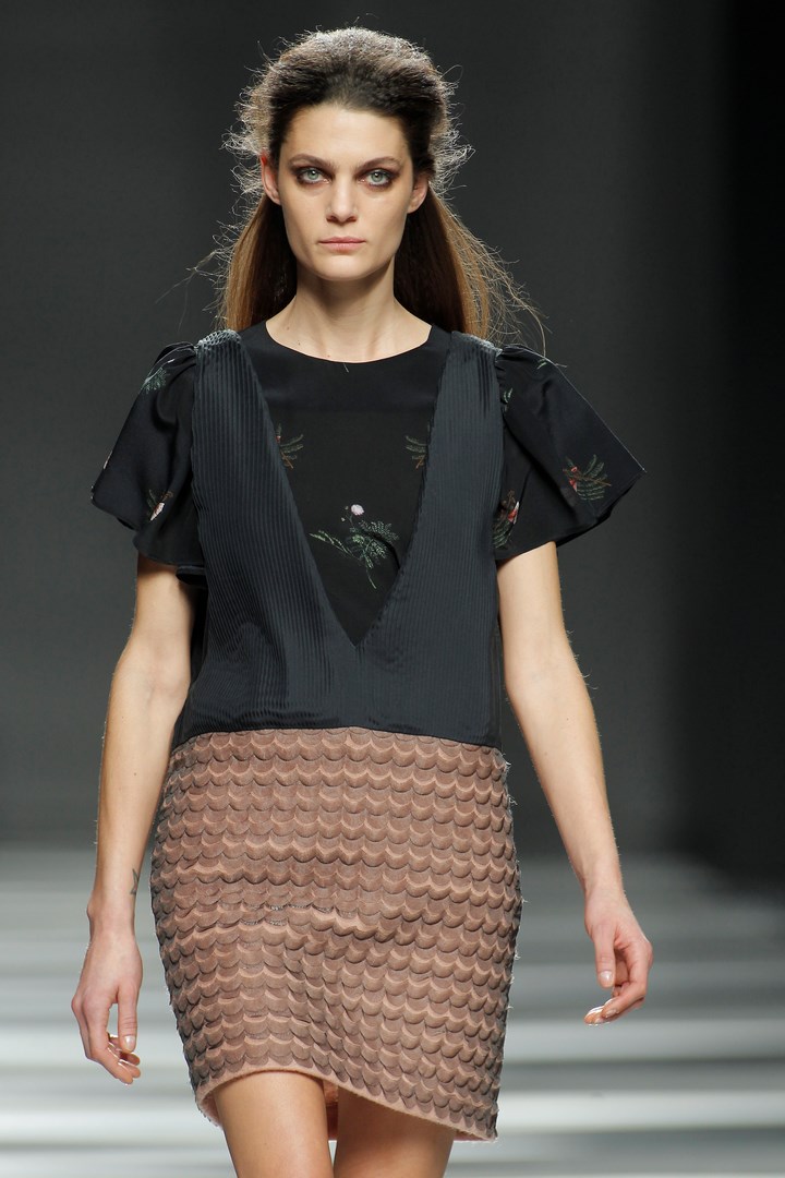 Ailanto is inspired by the paintings of Canadian Lawren Harris. Landscape painting is the starting point for a collection in which forests, mountains, skies and lakes are reflected in the fabric prints. The Muñoz brothers’ winter is tinted in dark tones opposed to bright colours such as turquoise, ocher or violet. Ailanto garments denote a taste for craftsmanship. Folk style dresses with elaborate bodices, patchwork and details of ruffles are key to a proposal drawn up in rich materials such as alpaca, mohair and silk.