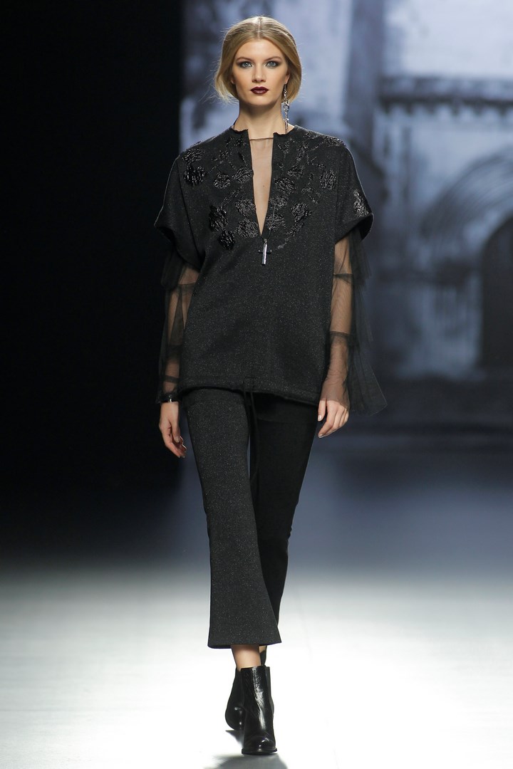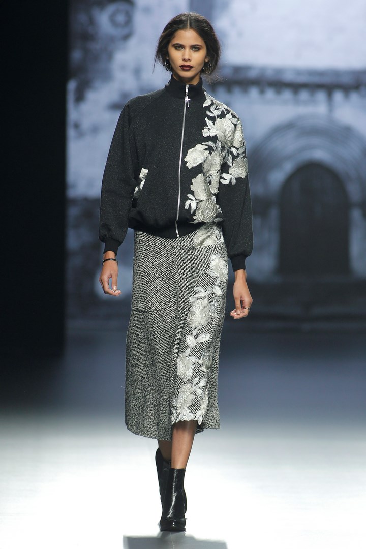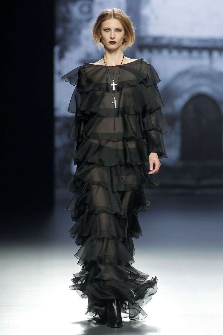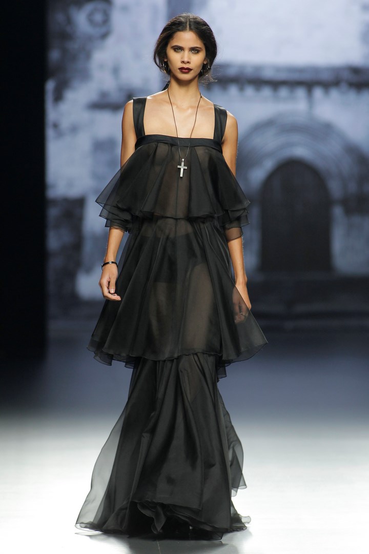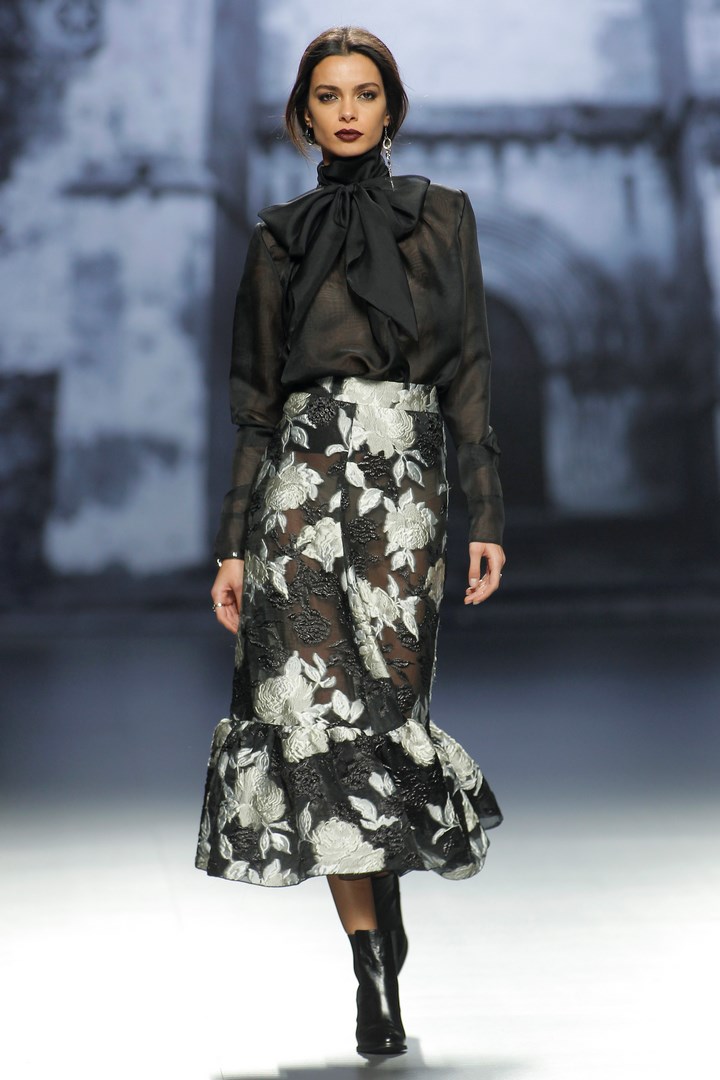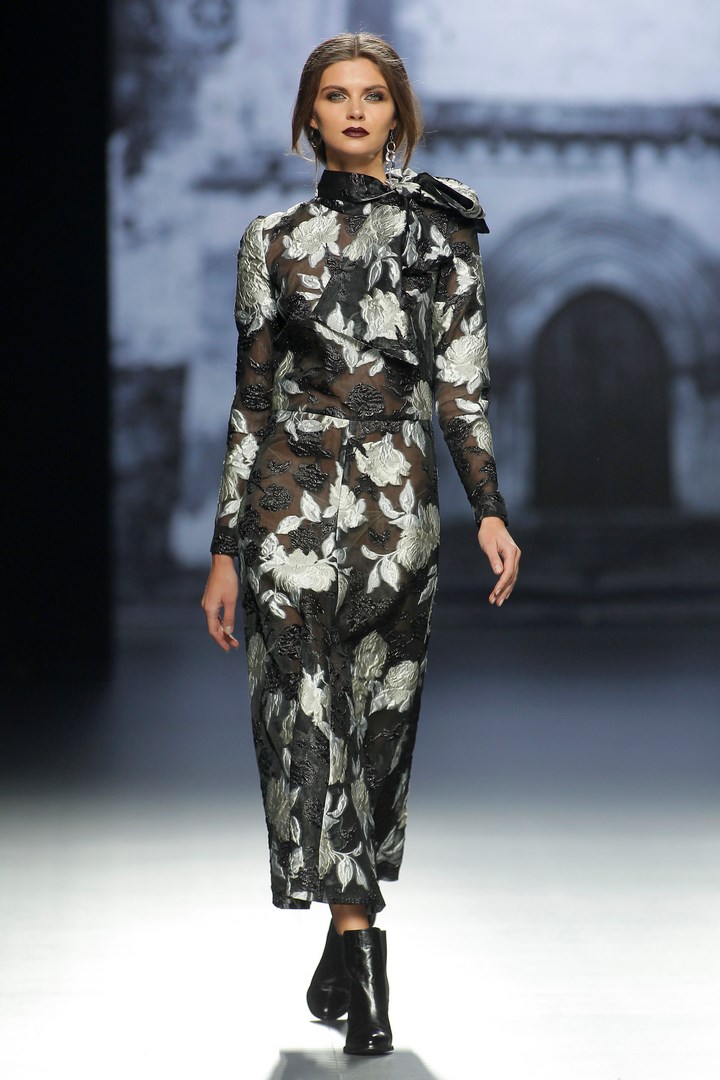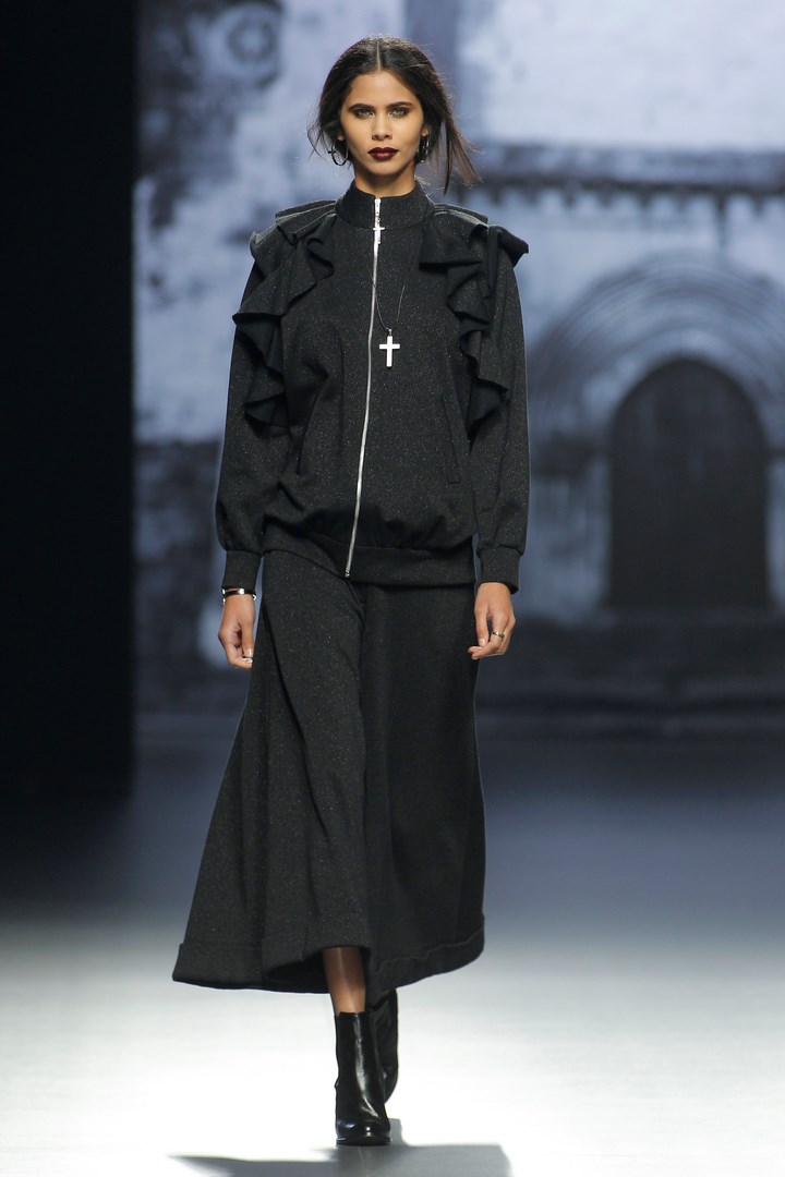 Juana Martin tints in mourning MBFWM runway transporting us to the deepest Andalusia with her collection "Redemptio". The Cordoba designer was inspired by the rooted folklore of Andalusia to present a proposal full of contrasts between rigorous black, white and floral prints. The duality is evident throughout the entire collection torn between tradition and liberation, alternating transparencies and lace with opaque fabrics such as tweed or pure wool.