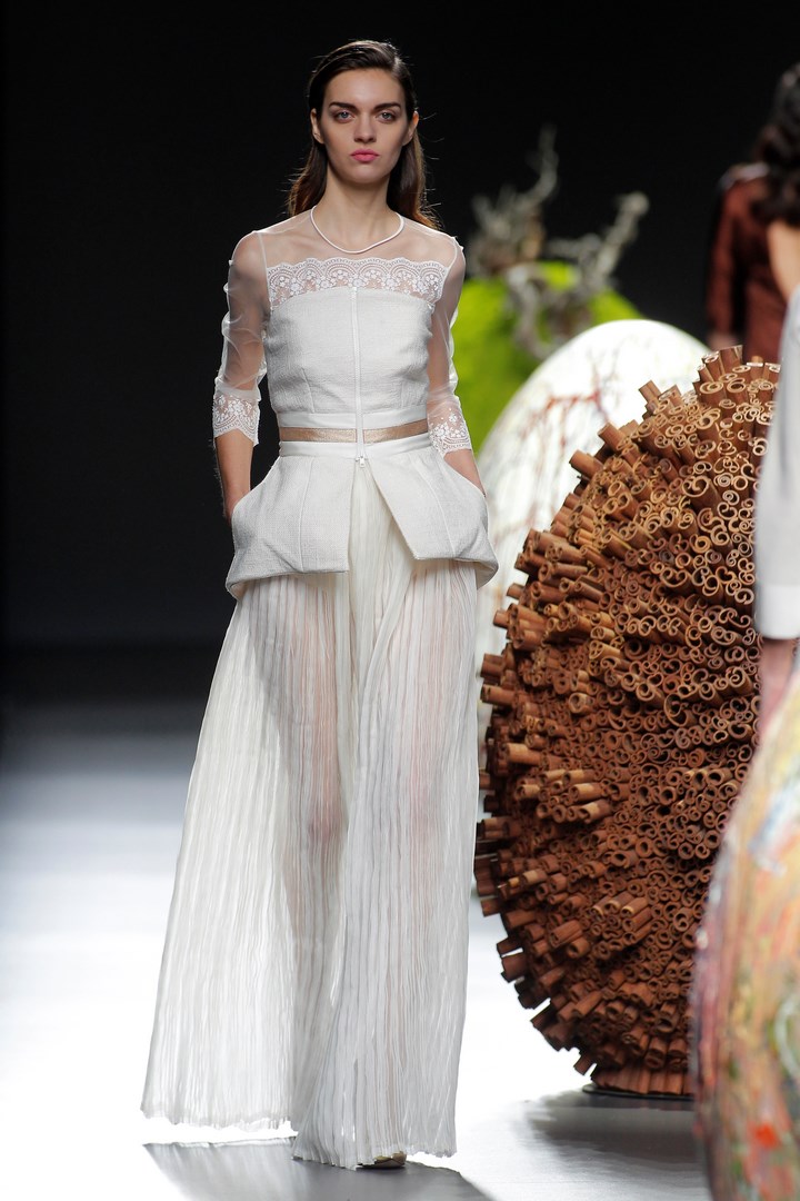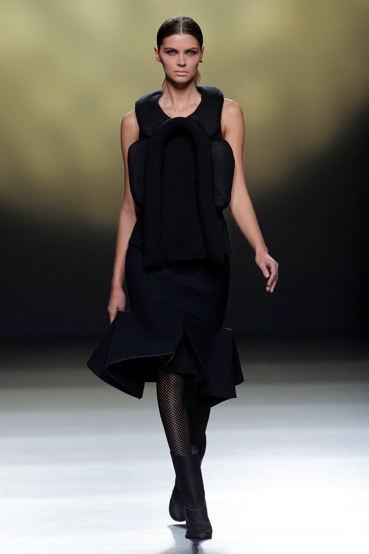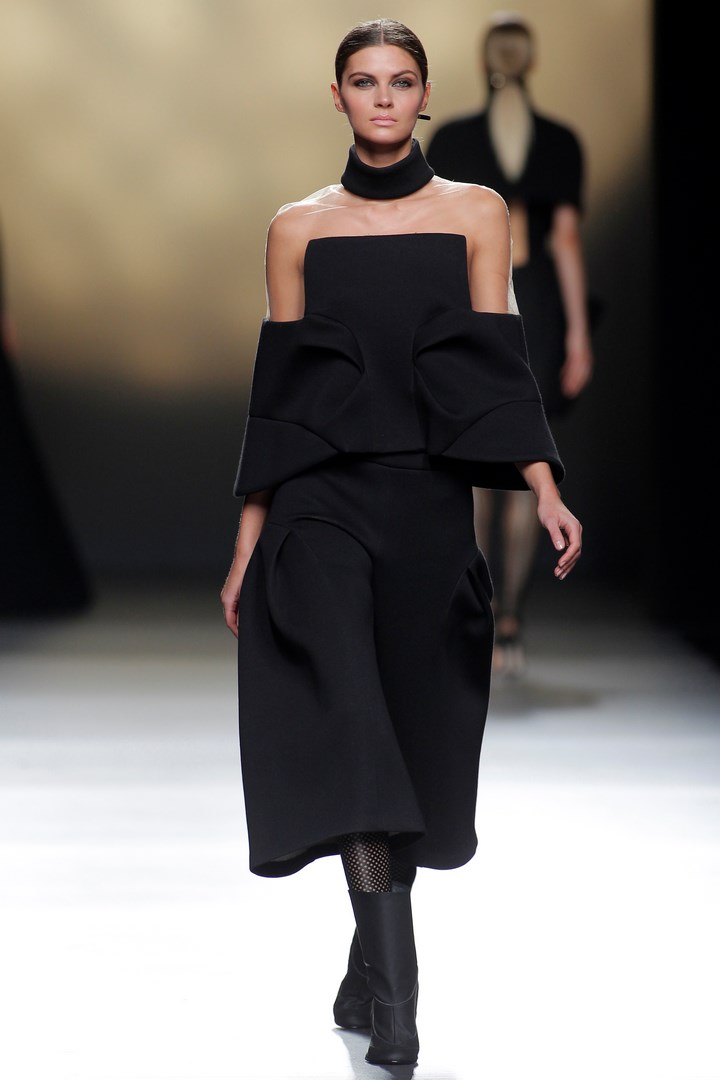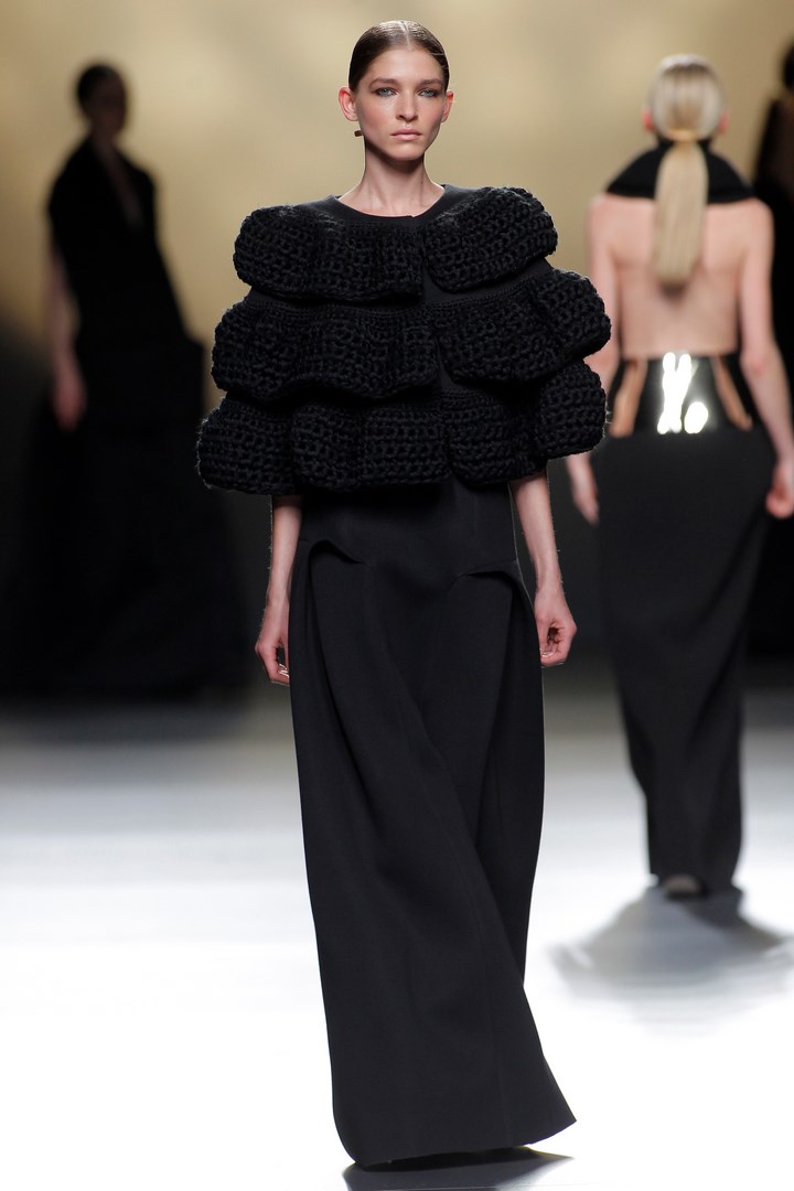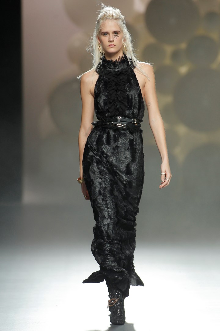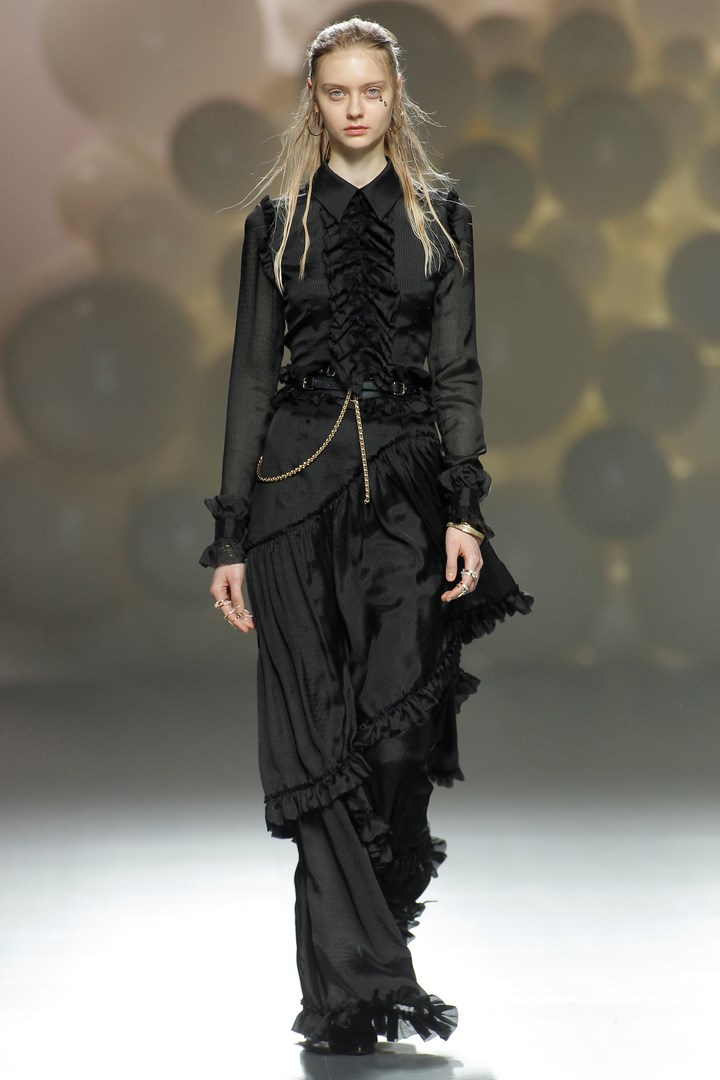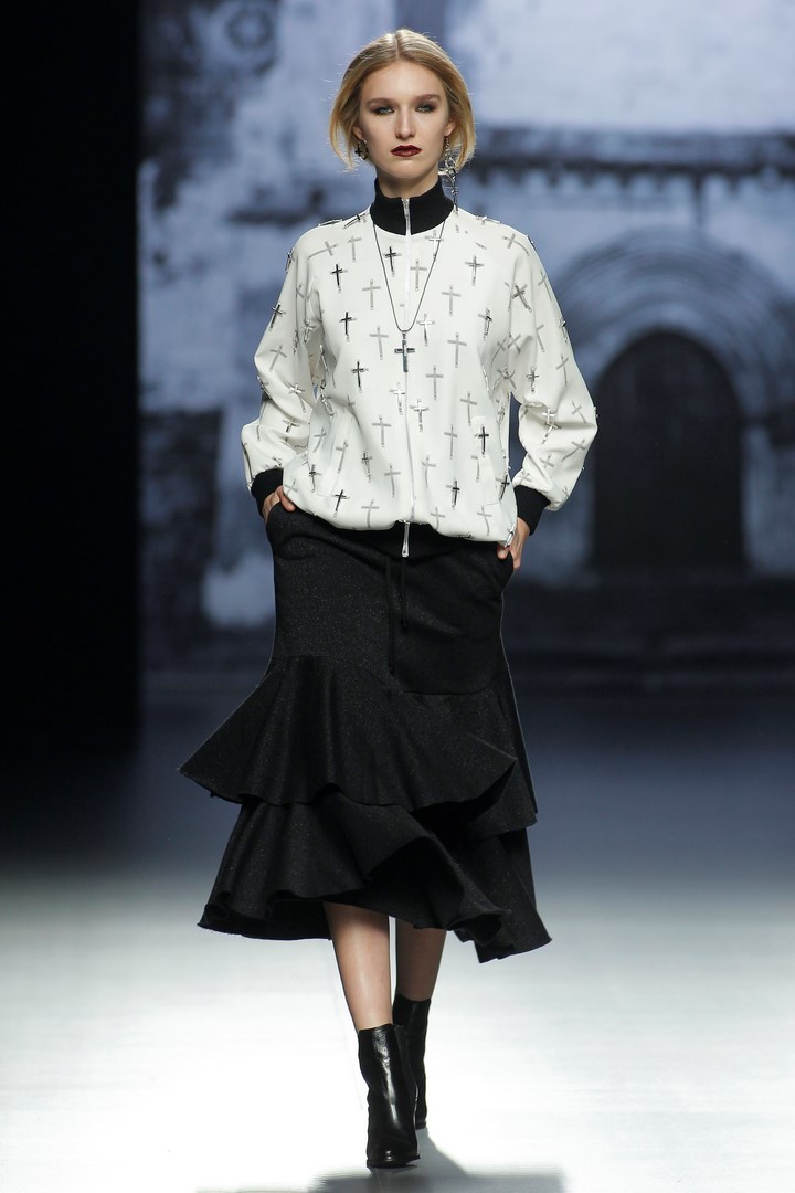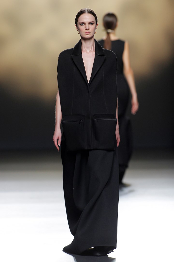 Juana Martin tints in mourning MBFWM runway transporting us to the deepest Andalusia with her collection "Redemptio". The Cordoba designer was inspired by the rooted folklore of Andalusia to present a proposal full of contrasts between rigorous black, white and floral prints. The duality is evident throughout the entire collection torn between tradition and liberation, alternating transparencies and lace with opaque fabrics such as tweed or pure wool.