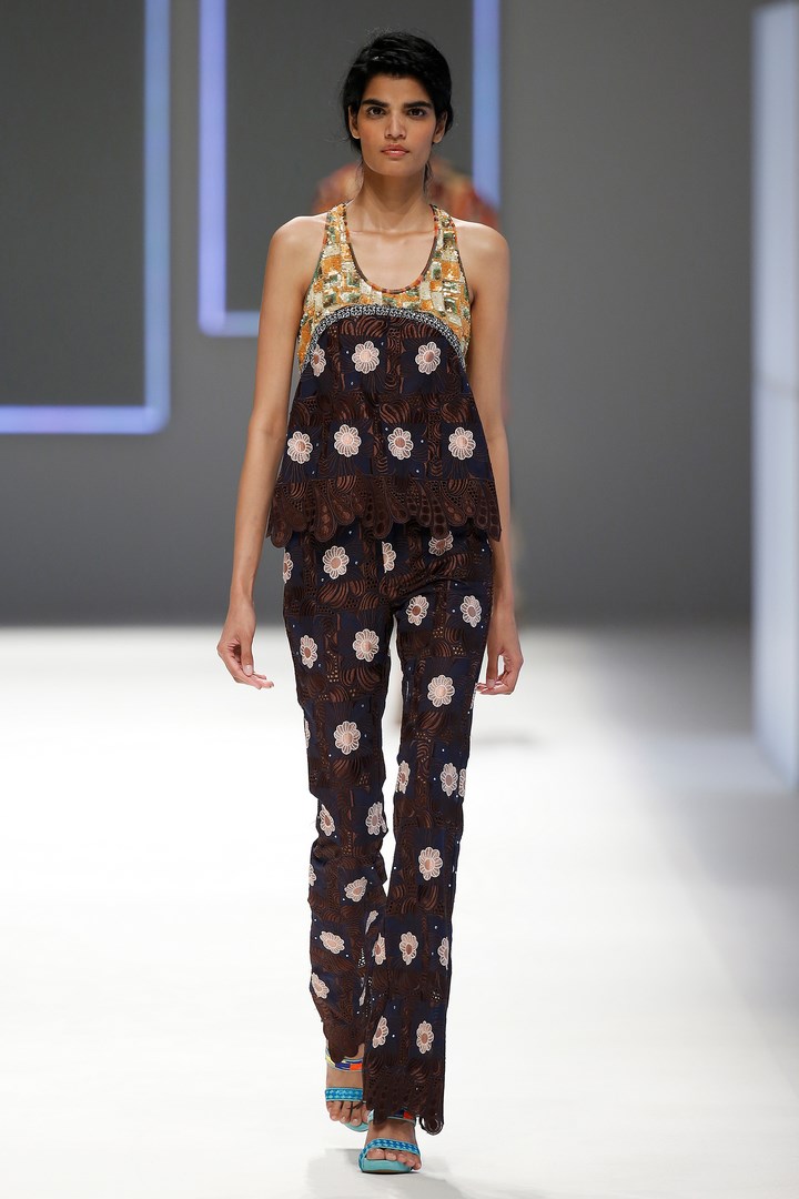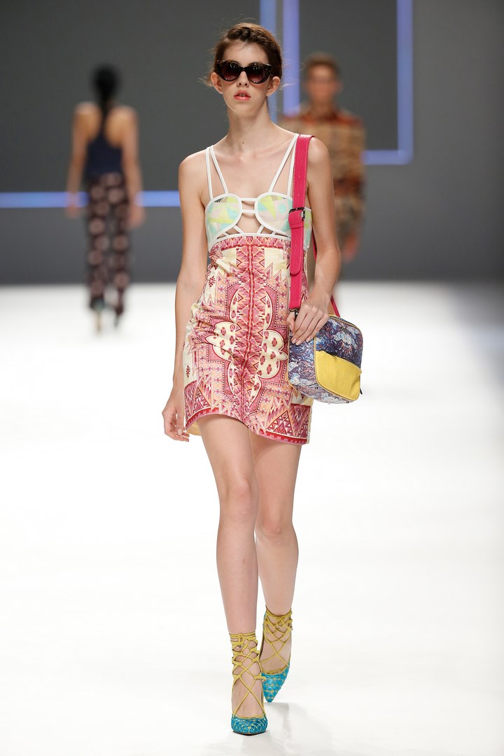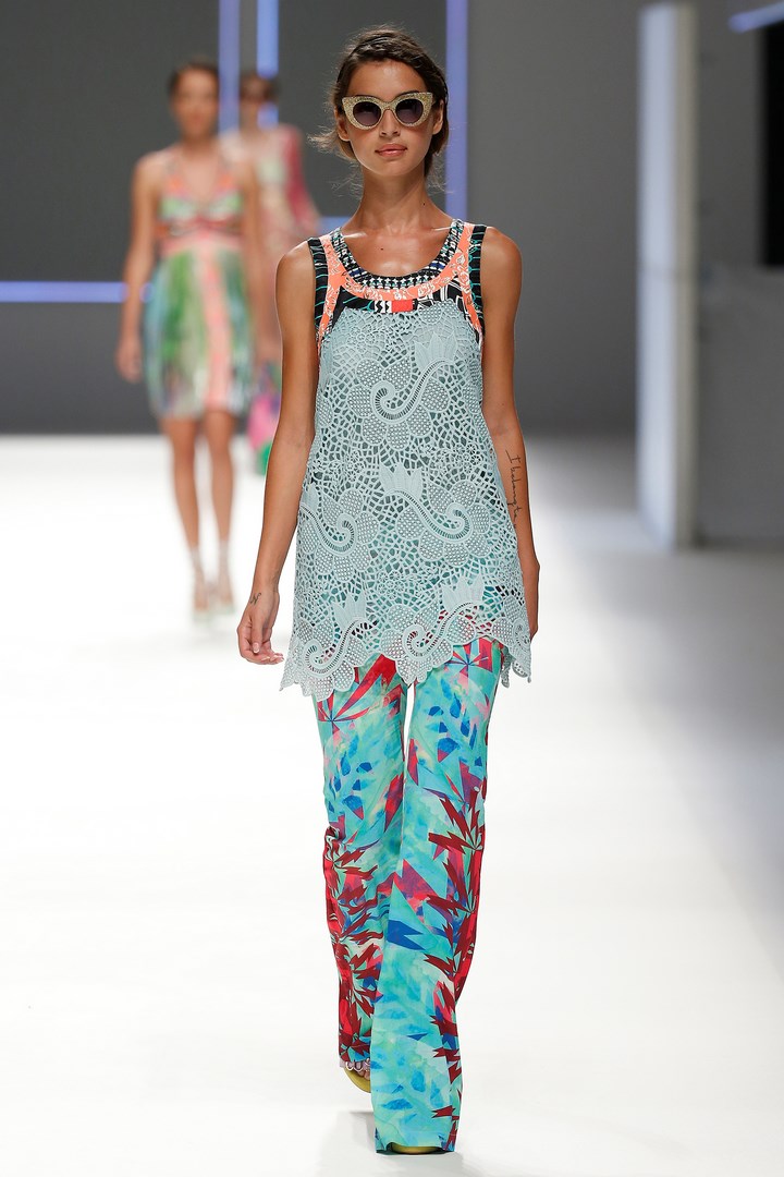 The colourful and eclectic personality so characteristic of Custo Barcelona is reflected in looks with their own style, intended for a rebellious woman with a particular elegance. Dresses constructed like puzzles, organic shapes and flared trousers become protagonists of a free collection full of charisma, tinged with nature-inspired colours like purple, white gardenia, mauve, fuchsia, lime, lemon, blue Mediterranean and tangerine.