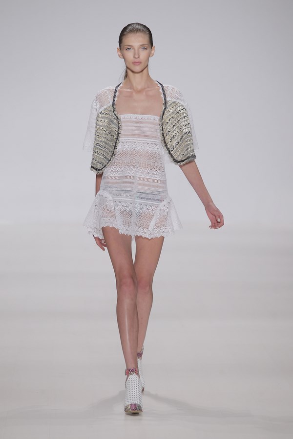 Highlighting his liking for the woman’s silhouette, Custo Dalmau uses geometric openings in fabrics such as lace, guipure broderie anglaise, allowing a glimpse at the beauty of women’s skin.