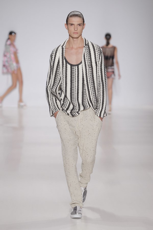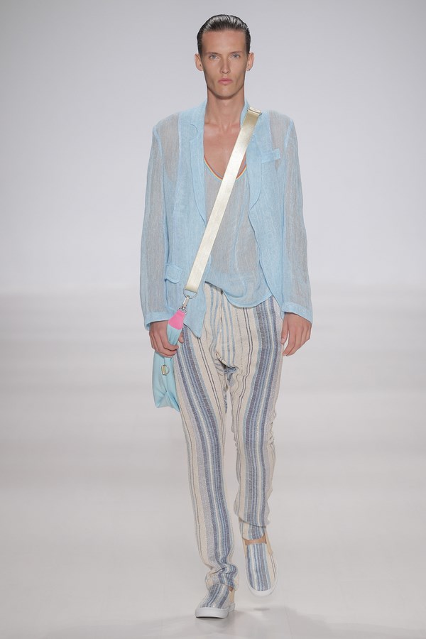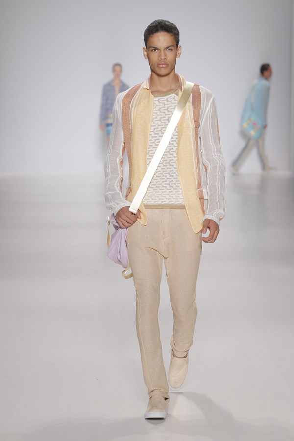 The proposals for men by Custo Barcelona have as a motto comfort and lightness. Baggy trousers and lightweight jackets are presented in shades such as anise, toffee or pistachio. A casual and relaxed style made mainly in knit and linen.