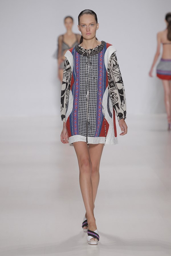 The mini dresses with a babydoll cut, boleros, skirts and evasée cut shorts are the key to a collection in which the print rises again as the protagonist. Tribal prints blend with colours that evoke sweet flavours like mint, cream, raspberry, apricot, lemon or plum.