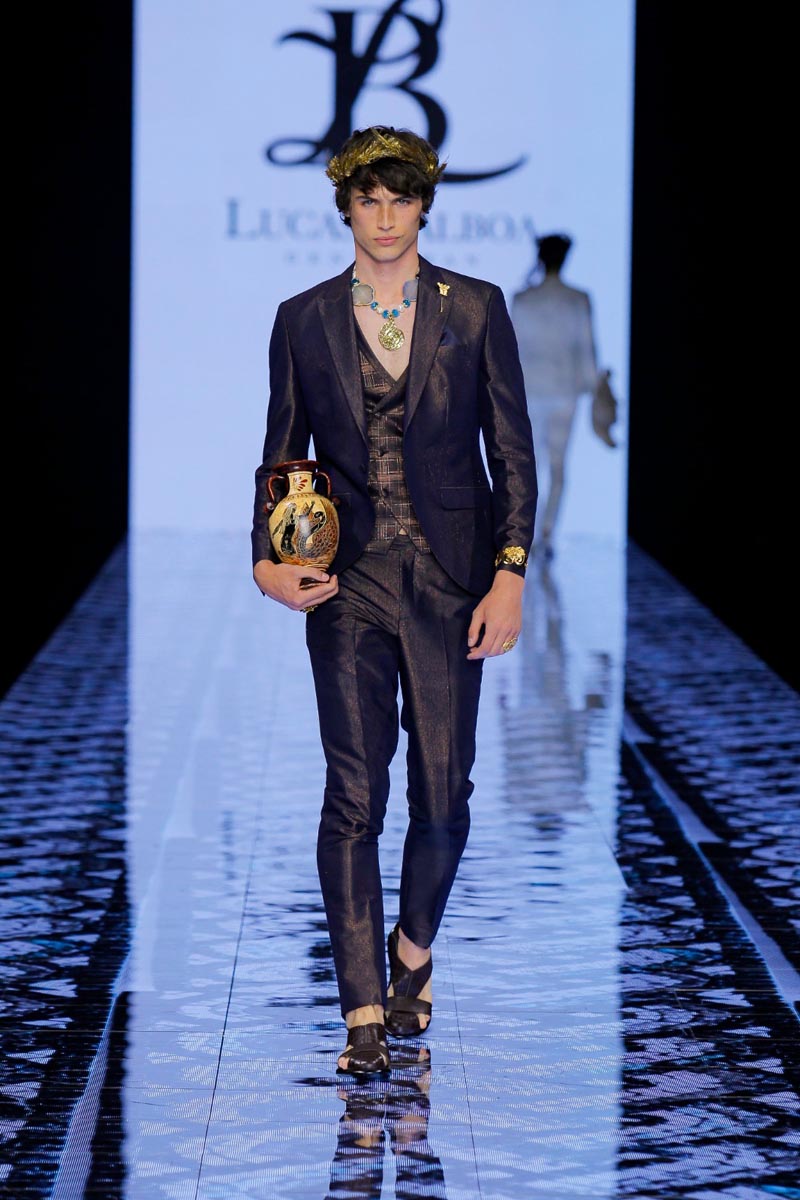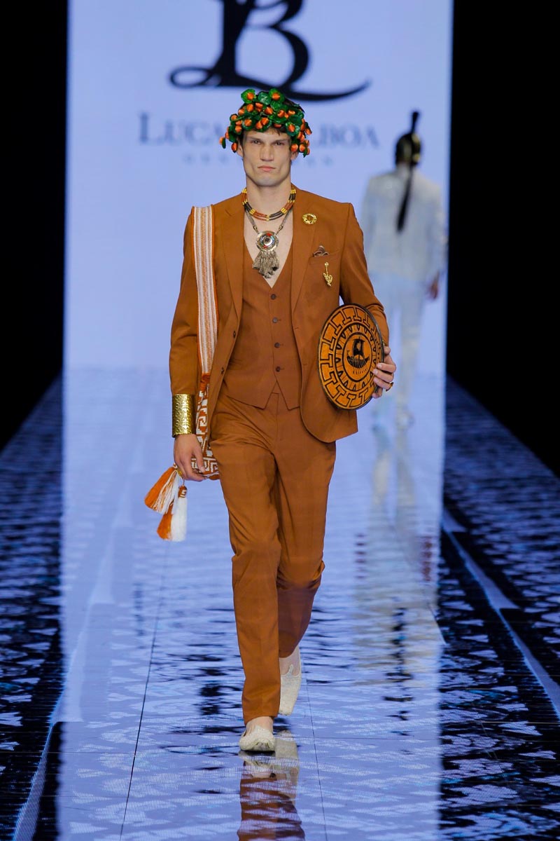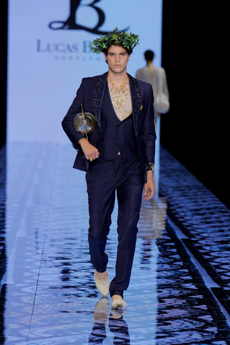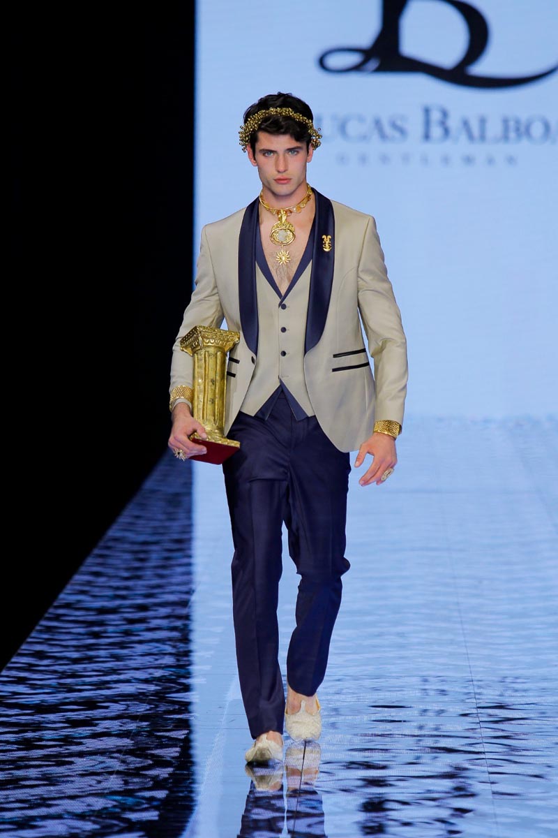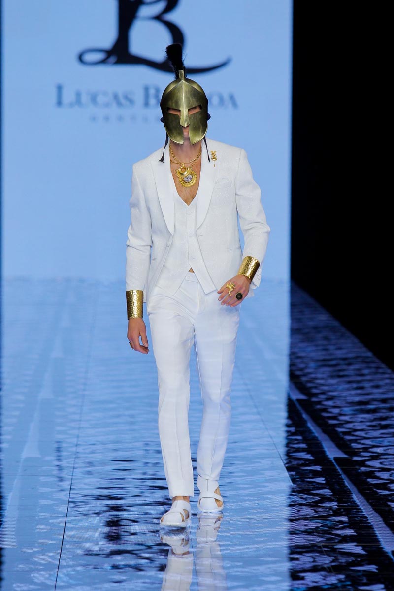 Designer Lucas Balboa presents at Barcelona Bridal Fashion Week his latest Greek-inspired men’s collection, DELPHOS, home of the famed oracle where magic and the occult, as well as Greek legacies, come together in an explosion of colour, art, culture and tradition. Objects play a very important role in the development of the collection that embarks us on a journey to the most classical of cultures, a journey of the senses, of that which is elegant and traditional, without folklore.