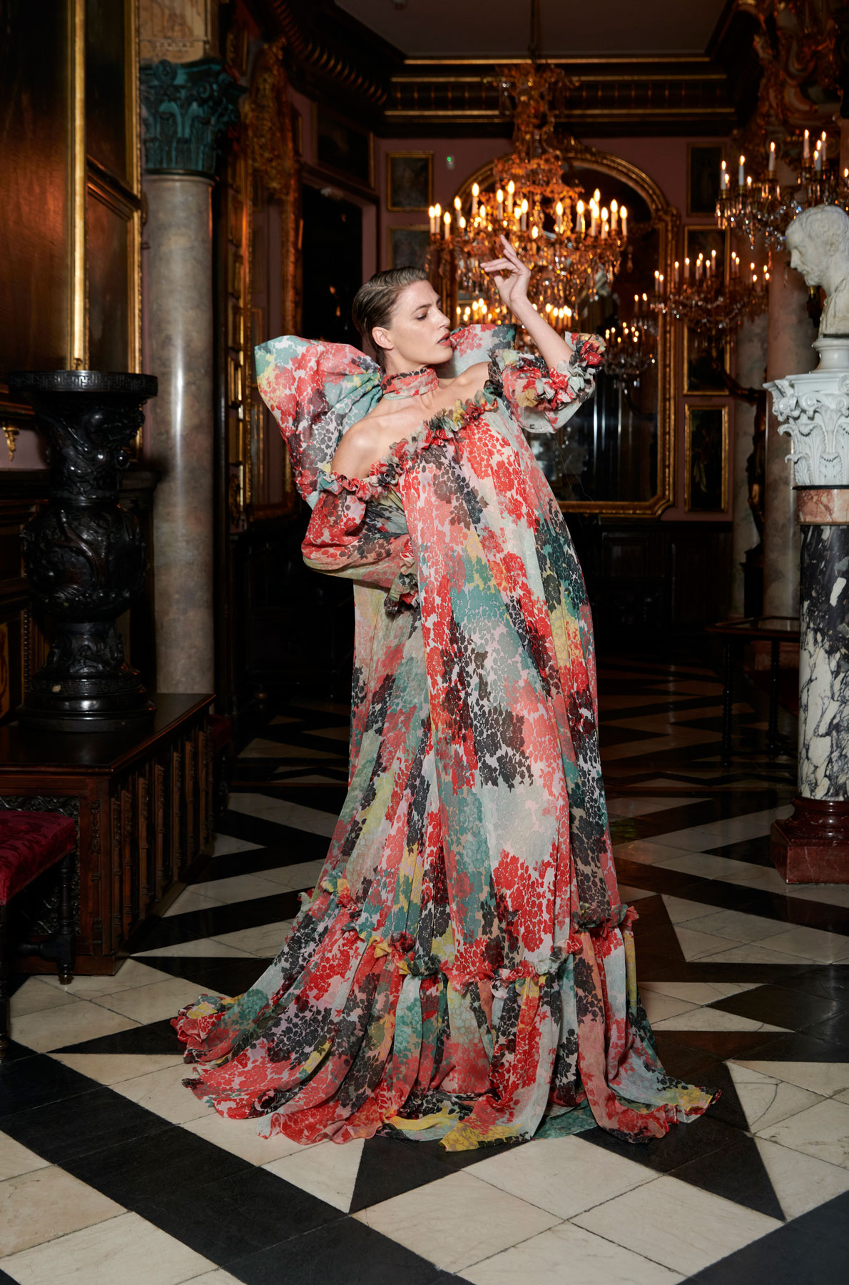 With ‘The Collection’, Duyos unites the entire history of Spain and continues its narrative in a scenario with an abundance of fabrics, objects and dresses, in which aesthetics and entertainment reign supreme. Sensory hedonism at its finest. The creator from Madrid also premieres a video clip in MeM starring in this new format three iconic models: Judit Mascó, Verónica Blume and Laura Sánchez who show his new proposals in which the garments aesthetics and textures blend perfectly with the exuberance of Cerralbo Museum, which was also the setting for this video where the 20 pieces that make up ‘The Collection’ can be seen.