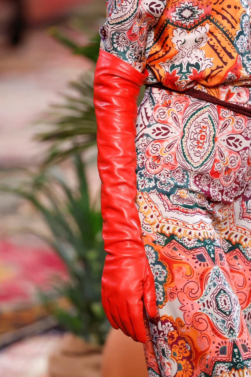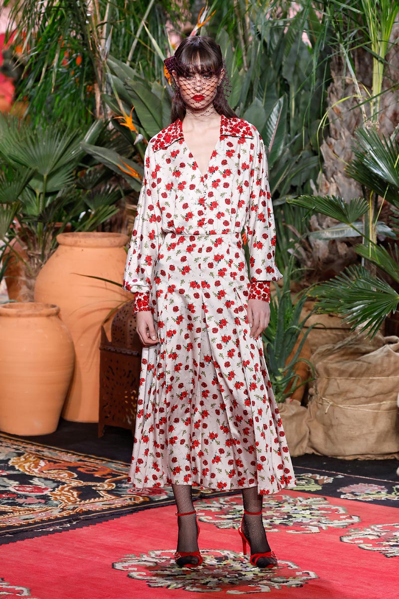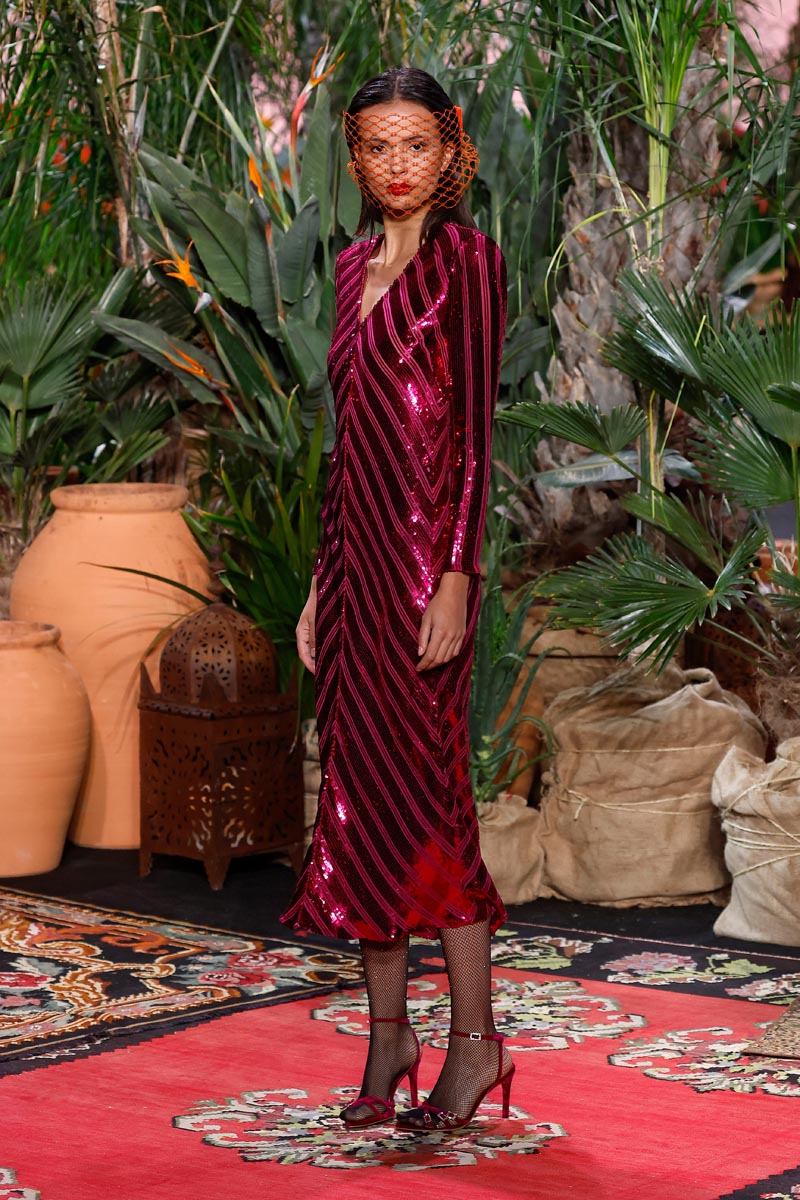 The Galician designer proposes loose and light silhouettes to dress a sophisticated woman with a retro air, the tunic being the collection’s star garment. Vázquez opts for very fluid fabrics represented through muslin, crepe de chine and tulle, as opposed to thick cloth coats, guipure or sequins for more structured pieces. The chromatic range of the Red City is reflected in earthy and acid colours such as orange, lime and fuchsia.