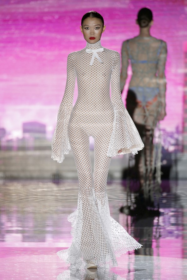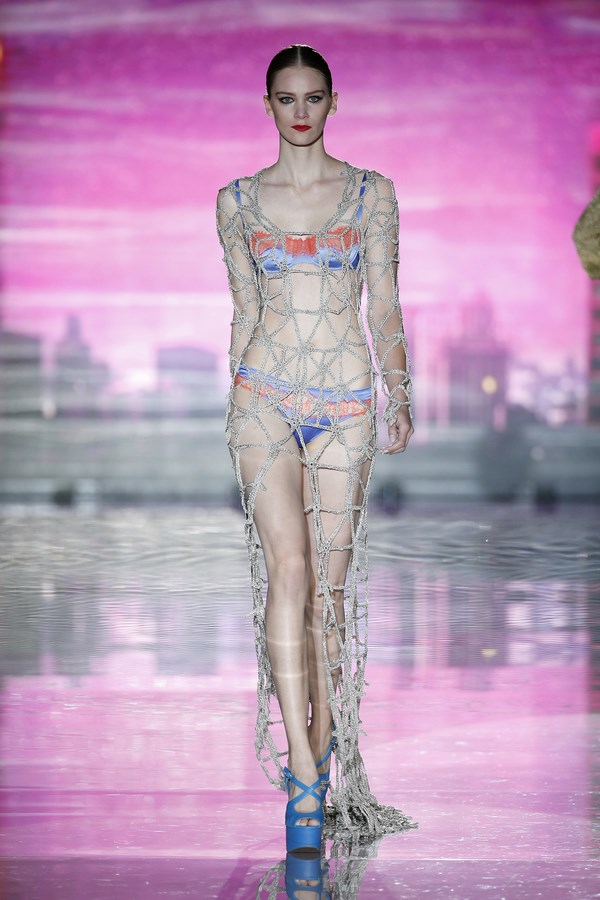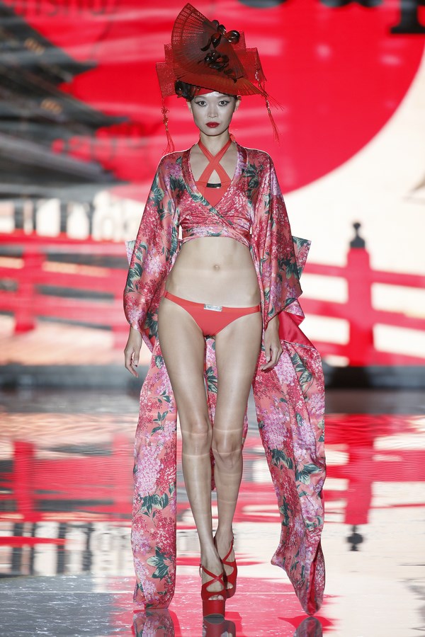 Dolores Cortés is responsible for putting the finishing touch to the 60th edition of MBFWM for the ACME designers with a collection inspired by Japanese culture. The colours and prints that evoke Japanese iconography are the leitmotif of the proposals of the designer from Valencia. Original works of origami and applications by way of metal armour samurai in bikinis and trikinis place a sophisticated touch in the proposals of one of the swimwear brands with a most consolidated path in our country.