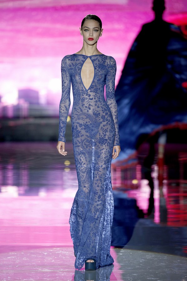 Hannibal Laguna presents “Butterfly Dreams”, a collection inspired by the delicacy and femininity of butterflies. Sophisticated and colourful, the designer showcases on the runway a proposal of complex patterns highlighted by the absence of seams and the romantic dialogue between colours. Silk is the undisputed star in the Hannibal Laguna creations, from weightless chiffon dresses that recreate the winding flight of butterflies to voluminous Mikado outfits that plunge us into the magic of spring.