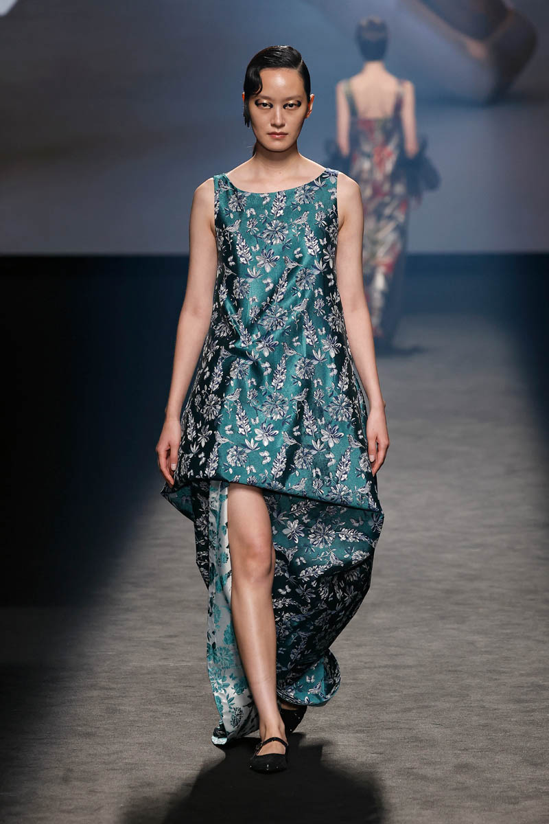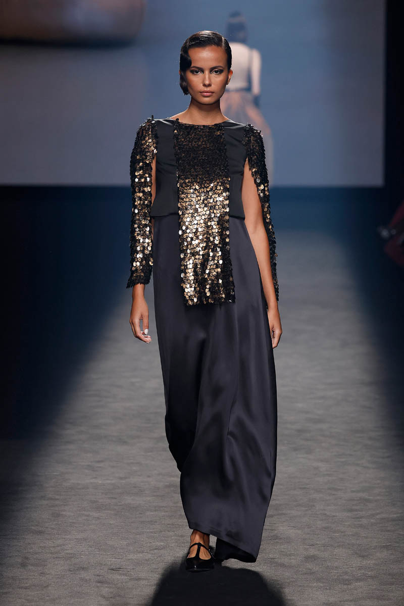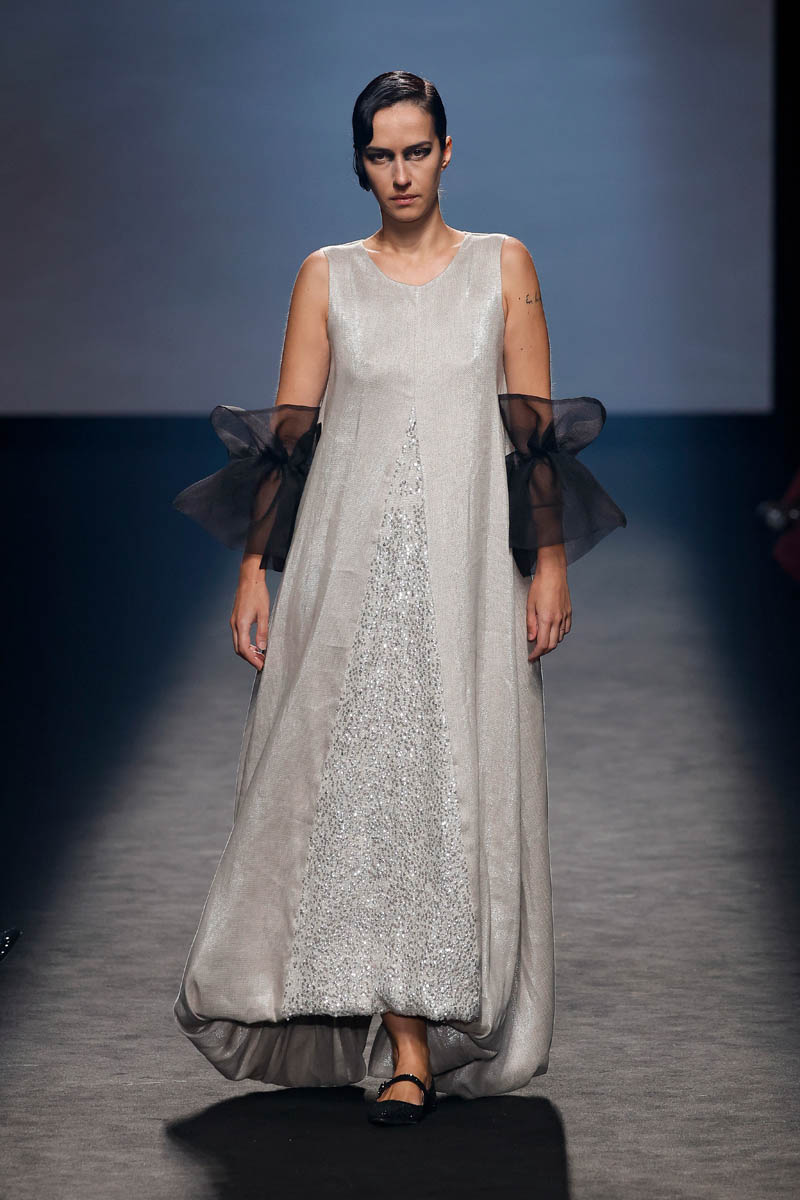Fely Campo’s fashion proposal seeks beauty in full movement and is presented as an antithesis of rigidity through rich fabrics, shapes that detach from the body and fluid silhouettes.