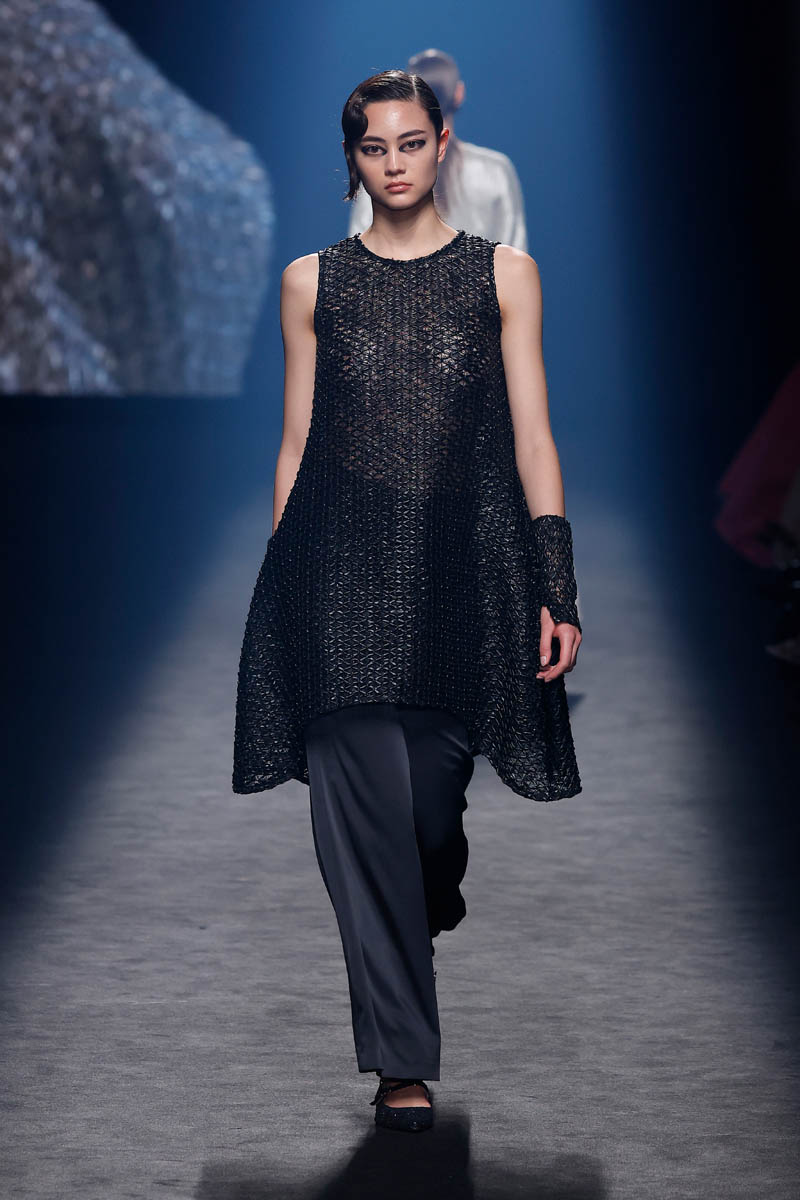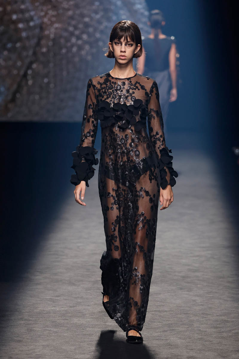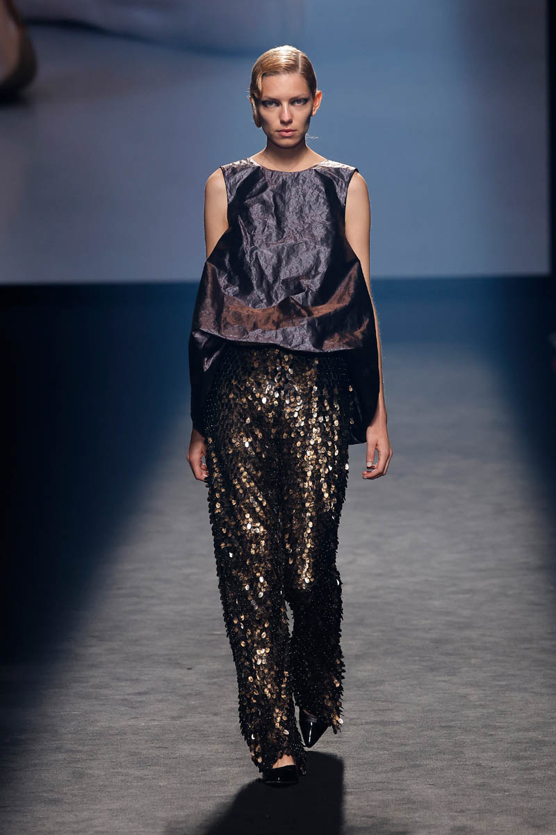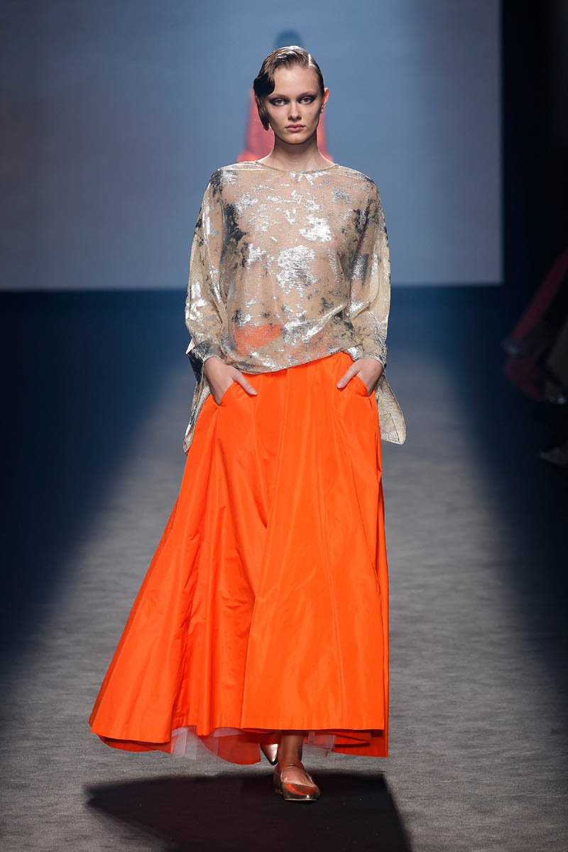 Fely Campo’s fashion proposal seeks beauty in full movement and is presented as an antithesis of rigidity through rich fabrics, shapes that detach from the body and fluid silhouettes.
