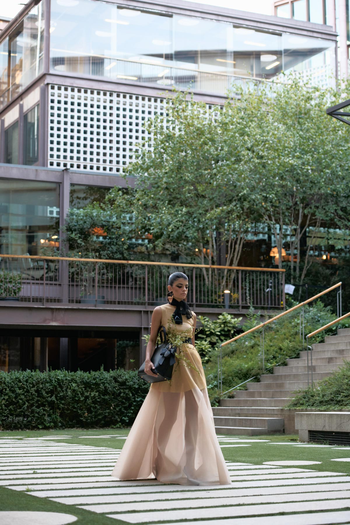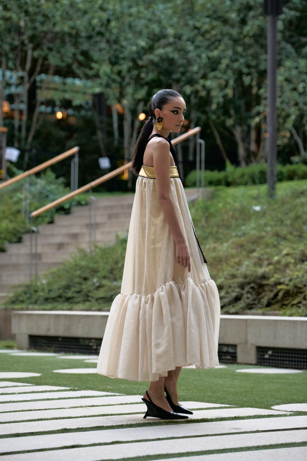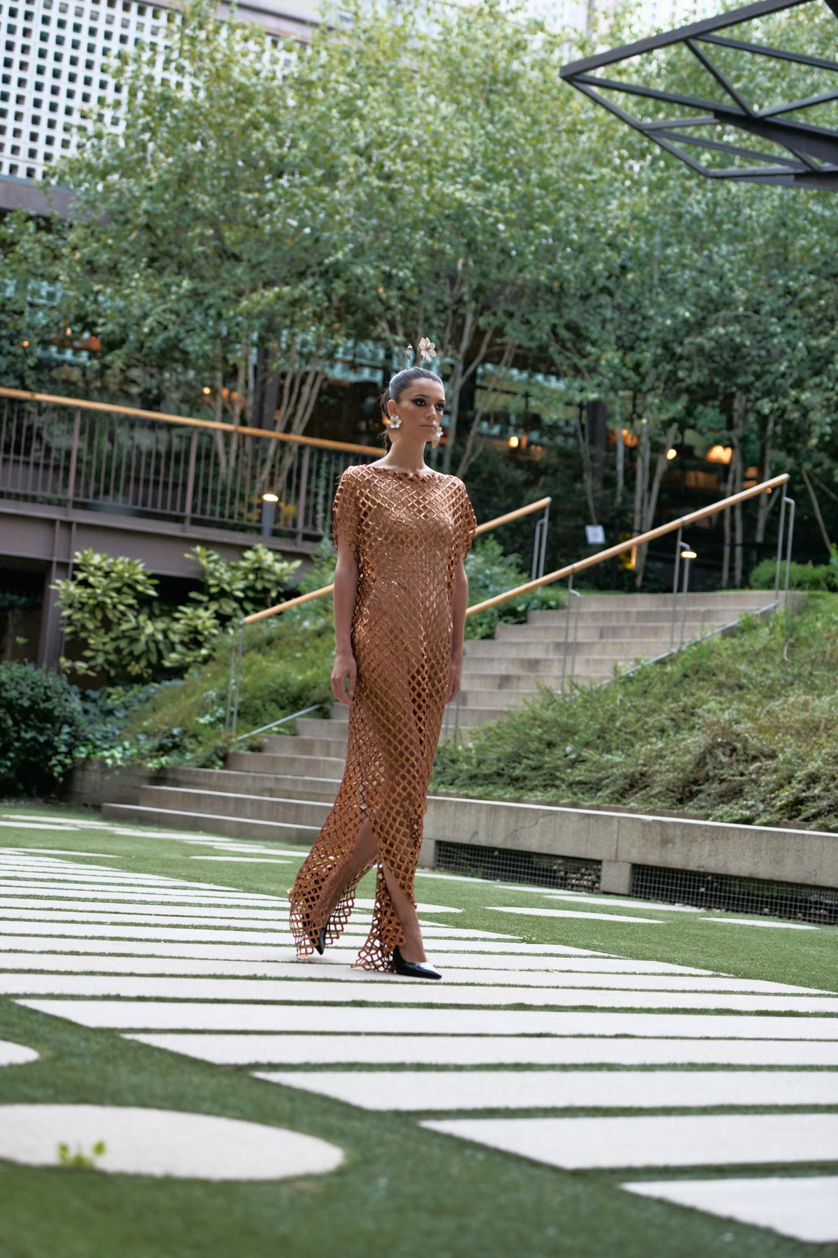 The collection is conceived as a visual narrative that intertwines dance, architecture, and folklore. Dalbat captures the essence of the zambra as an intimate and powerful ritual, reinterpreting its gestures and symbols in a modern context. The color palette evokes a series of scenes: the whites of lime plaster and caves, the green hues in fields and prickly pear cactus, the golden of sunsets and sky, the black of night, and the copper-hued glints that recalls her homeland’s material and spiritual richness.