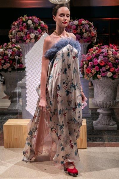 The lines, masculine confronts feminine, with tailoring rich in details, romantic and floral dresses, short-midi-large silhouettes, artisanal details such as jacquard ribbons made in Japanese looms and knitwear. The fabrics highlights are organdi, linen / alpaca, crepe, organza, angel satin, silk, muslin and tulle, in a collection cheerful and rich in colour range with oriental-inspired floral prints and 3D embroidery in porcelain, pearls and organza.