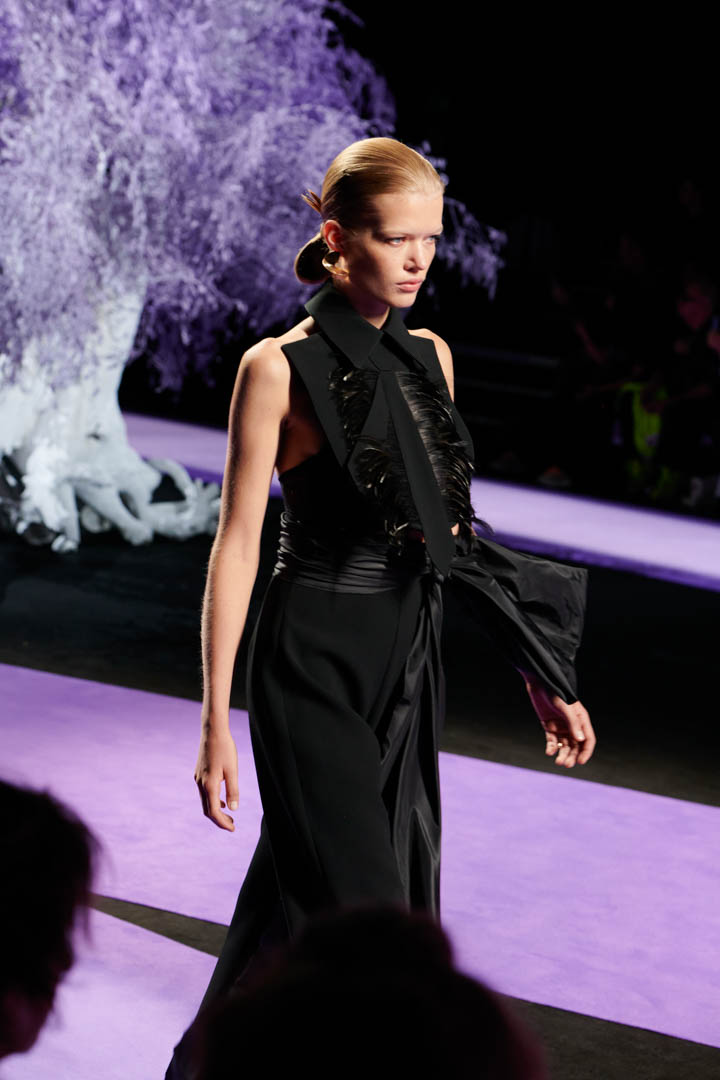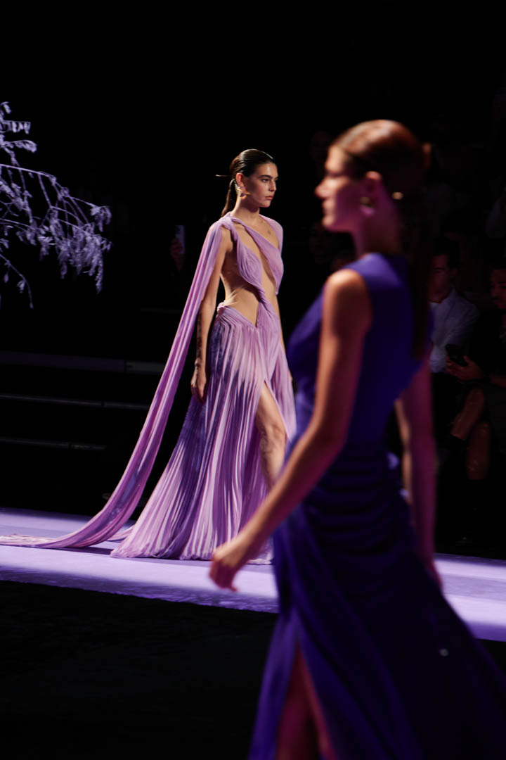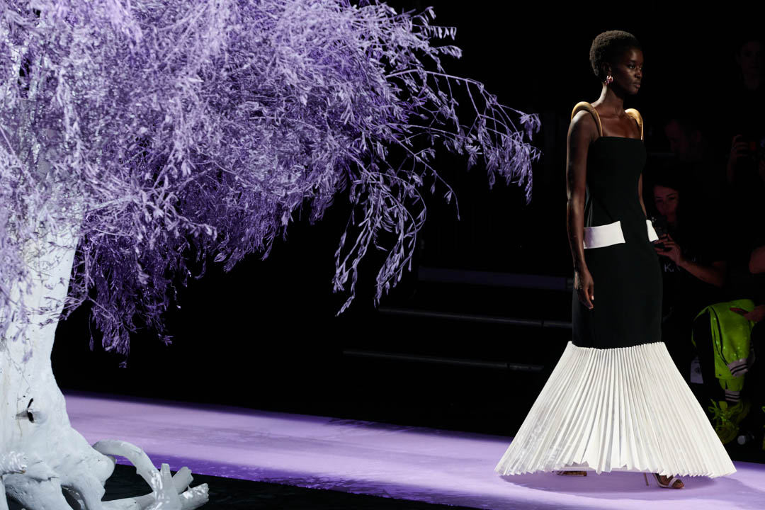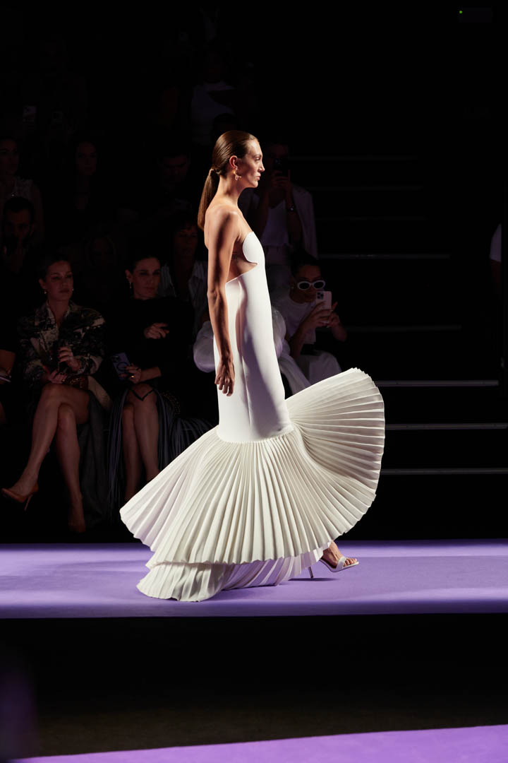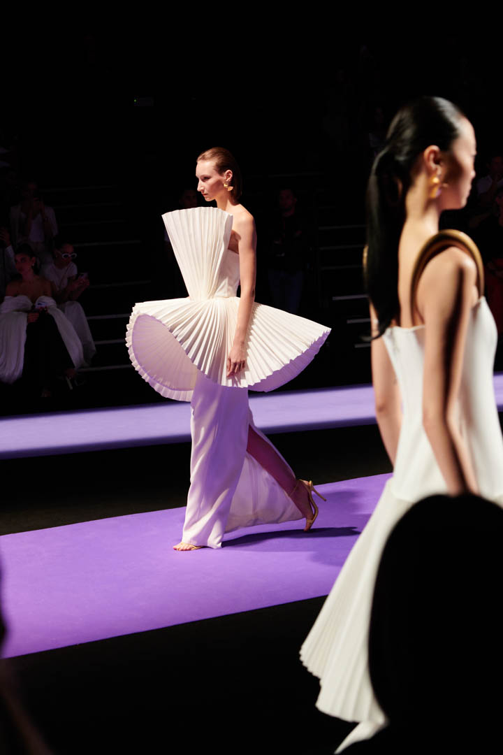 The fashion designer, from Valencia, together with her daughter Paula Maiques, creative directors of this firm, invite all of us to enjoy at their fashion show, held at Mercedes-Benz Fashion Week Madrid, a summer of pure and geometric volumes. Among their starring garments the tuxedo stands out presented in a renewed version, alongside coats, wrap dresses and mini dresses enriched with floral details. Notable are complex pleats that simulate ceramic vases, as well as micro-soleil pleats masterfully handcrafted. In the collection we also find very feminine elements with lingerie details. The color palette is dominated by black and white, which are allied with soft, light and romantic tones such as lilac, purple and yellow.