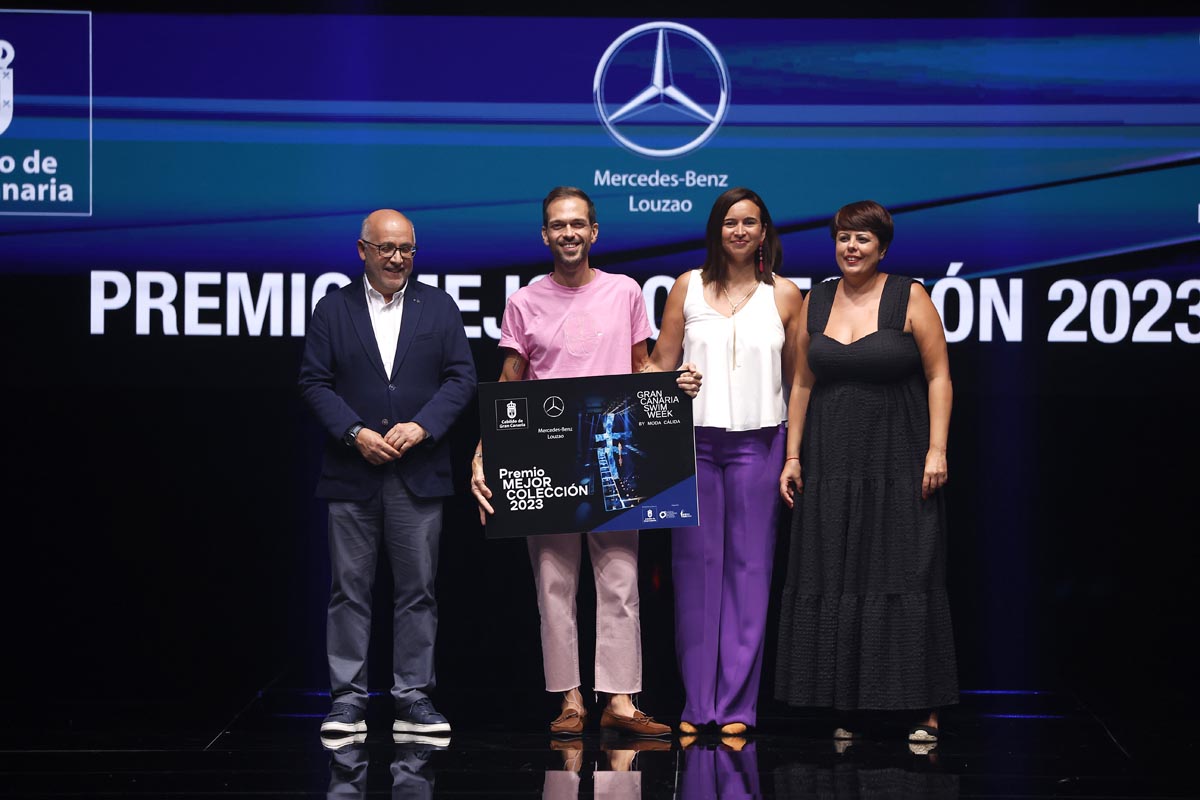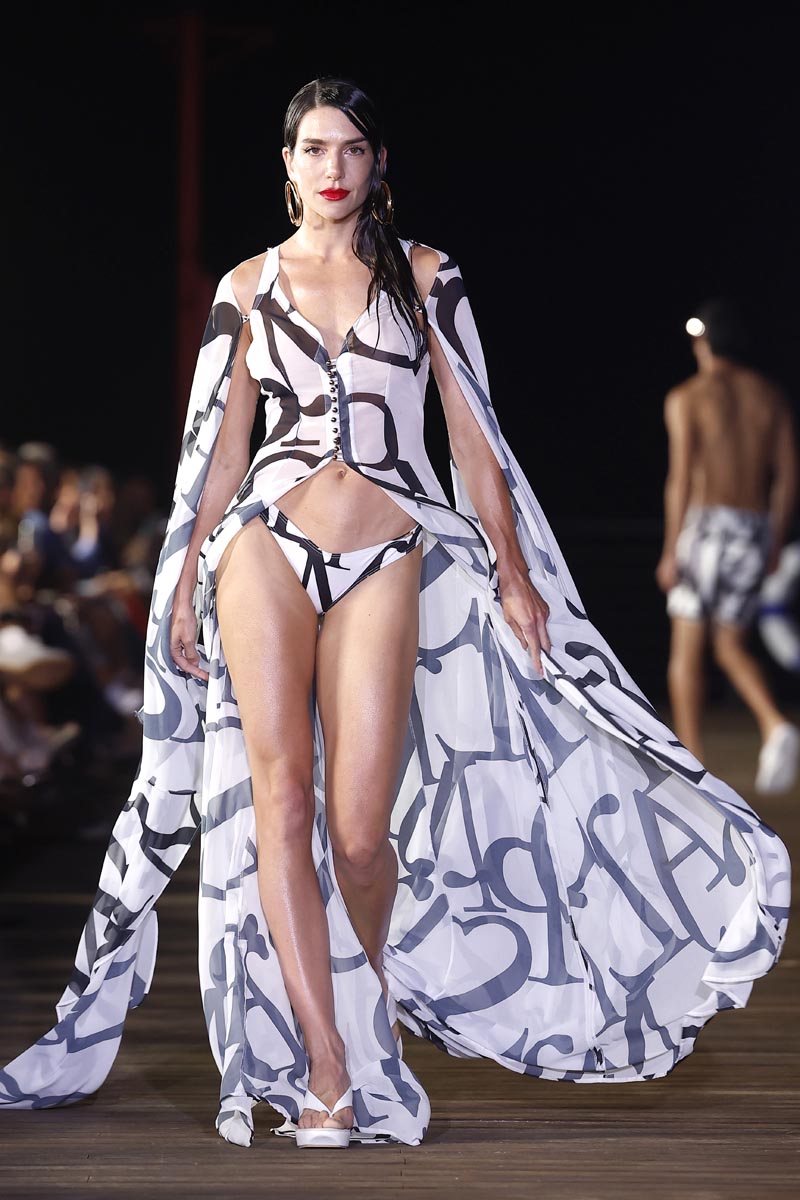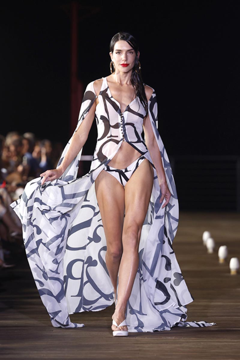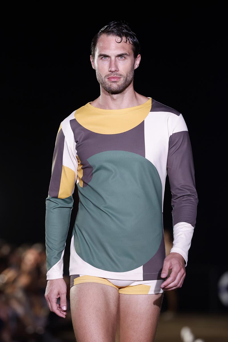 The Palmas “Línea” collection follows the line marked by the acclaimed Palmas Bridal 2025 collection, “Esencia”. Inspired by 1970s pop art and geometric minimalism, “Línea” incorporates a touch of futurism. Exclusive prints with geometric and abstract shapes are applied on fabrics such as lycra and chiffon, giving life to swimwear, bikinis and outerwear in a wide variety of shapes and cuts for both men and women. The designs are complemented by gold appliqués and accessories that elevate each look, adding a touch of sophisticated elegance.