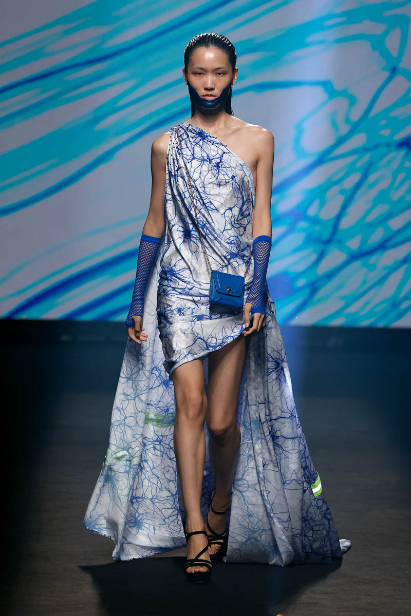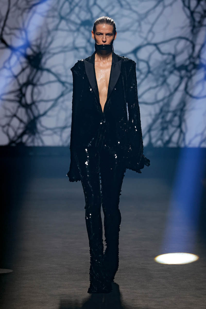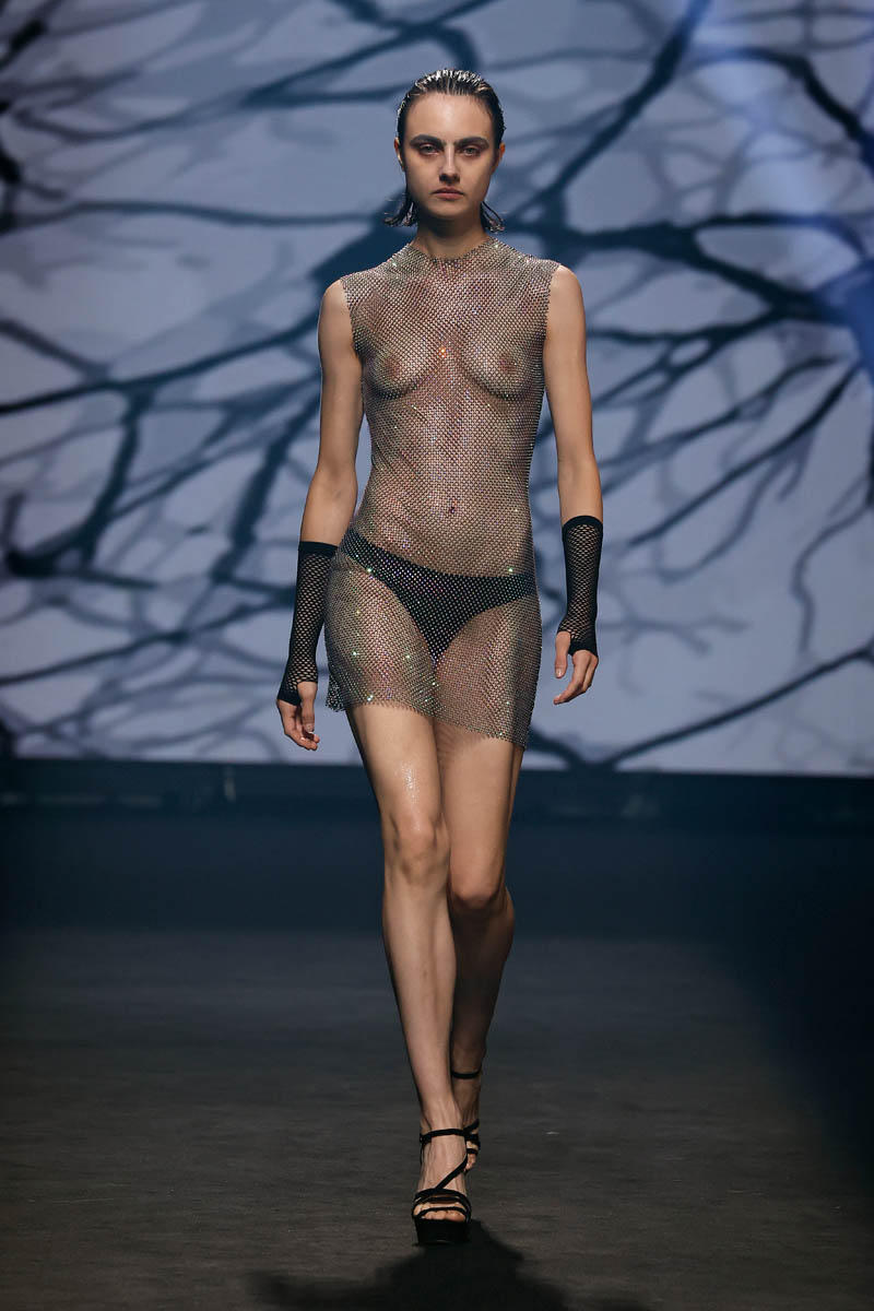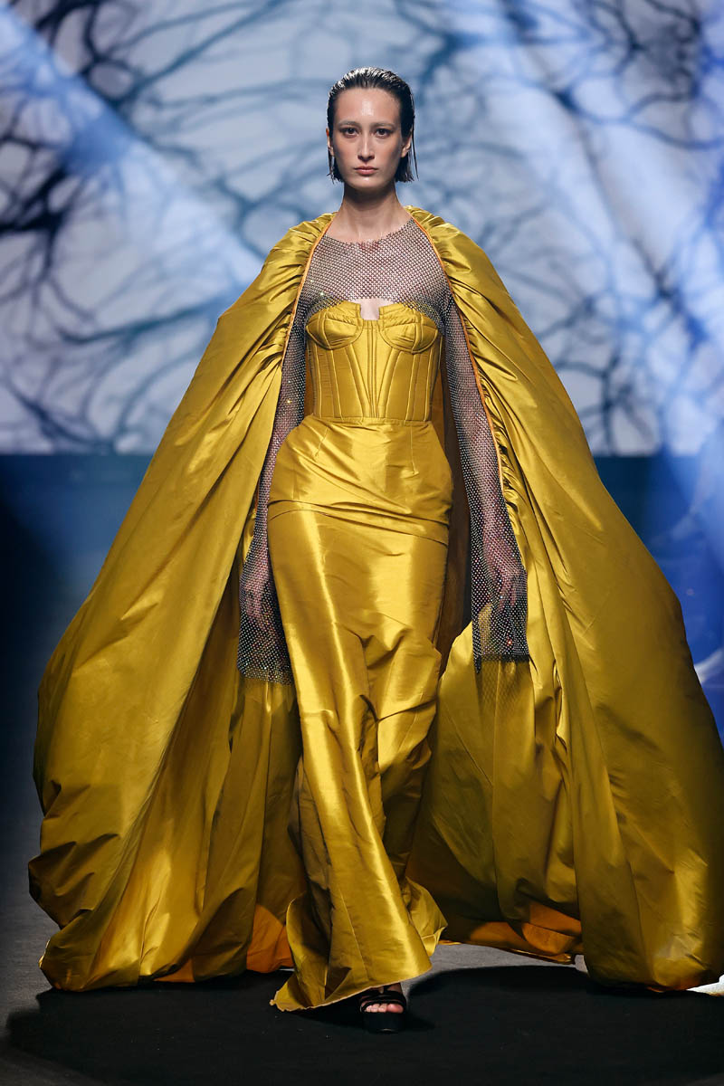 Robertodiz uploads to the Mercedes-Benz Fashion Week Madrid catwalk a very surprising collection for which he has collaborated with Benjamín Bulnes, with whom he has made chrome masks that are created from biomechanical engineering, thus converting the models into super heroines of the future.