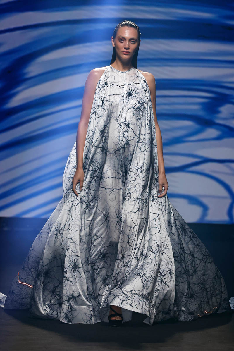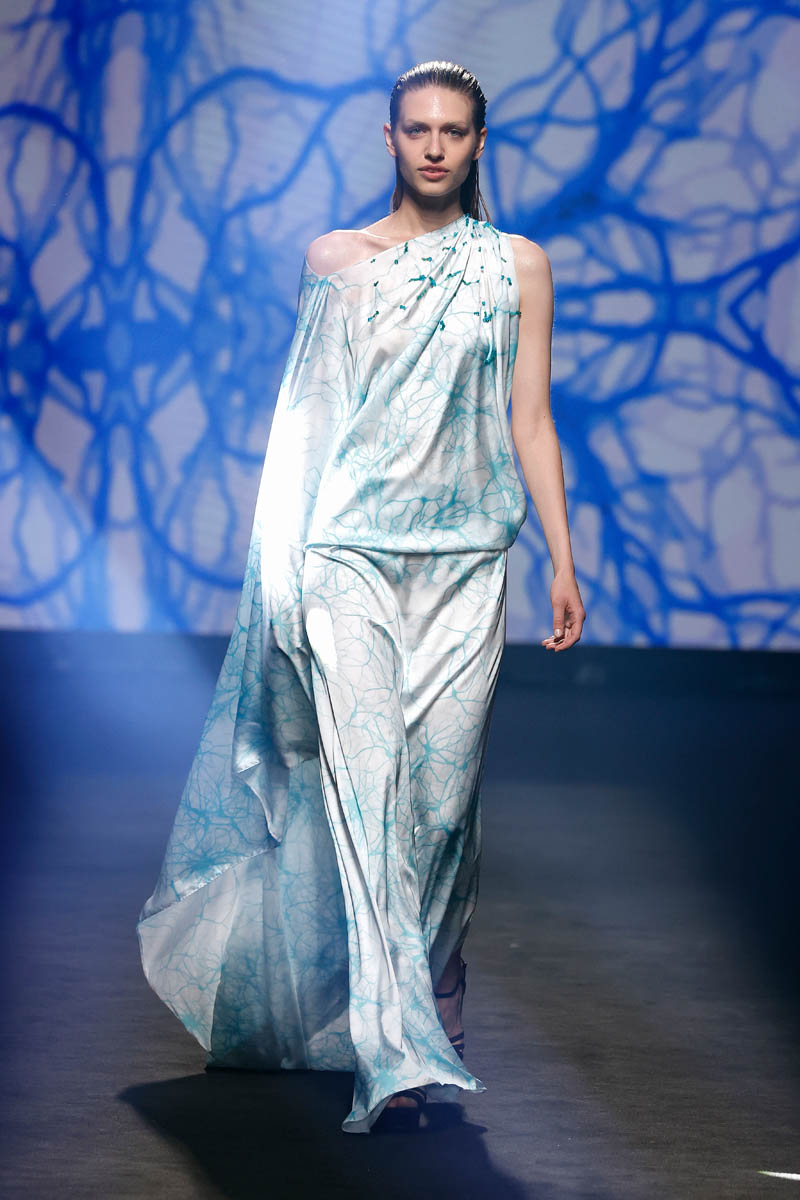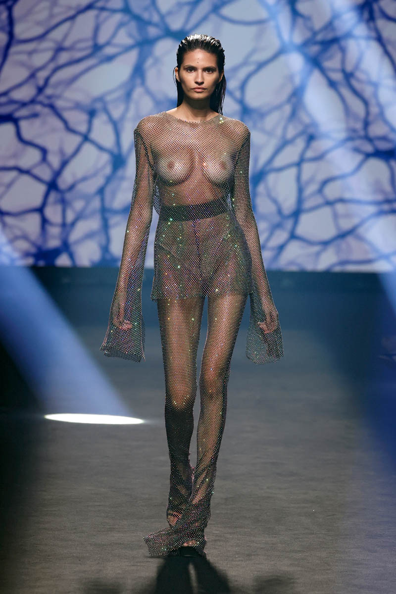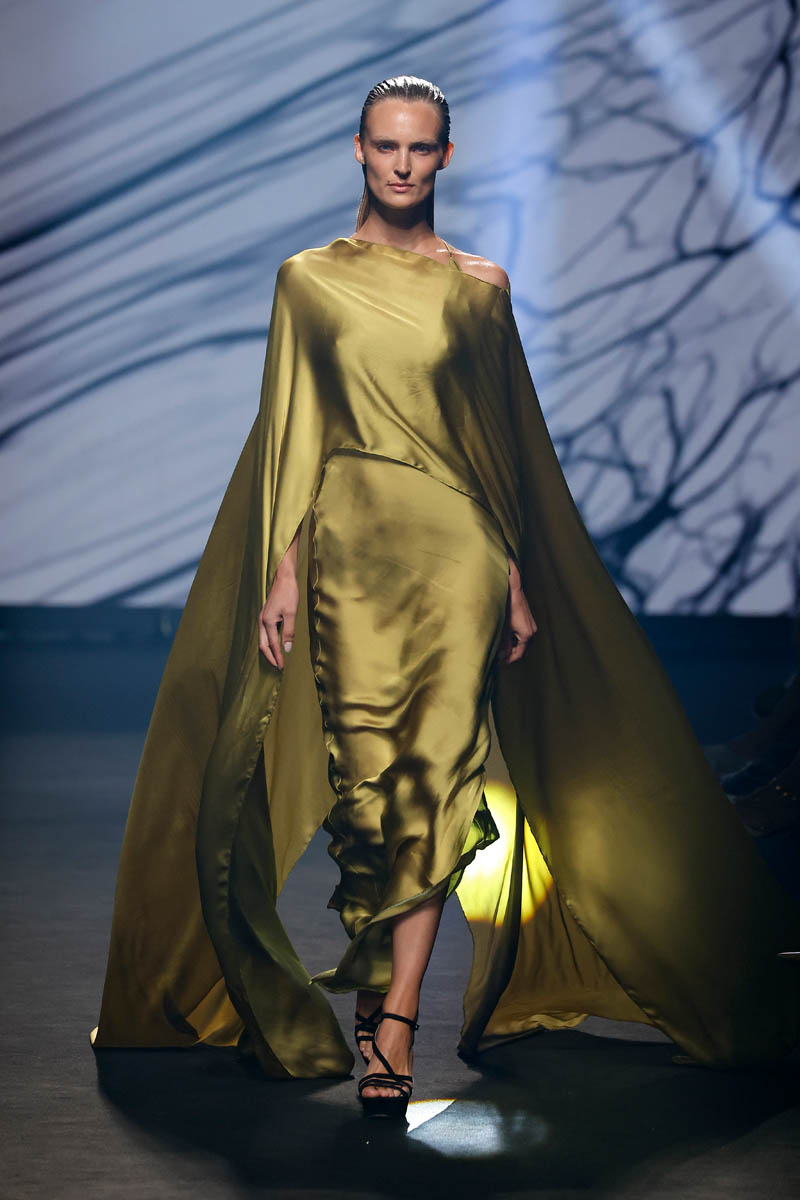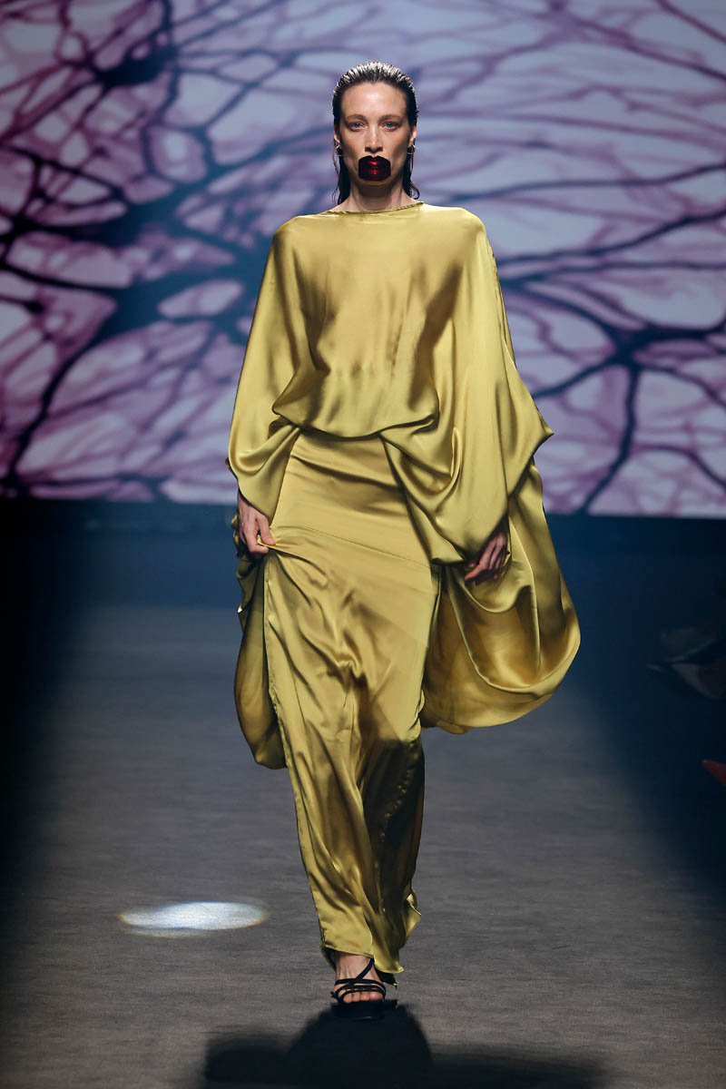 With his new proposal, Robertodiz gets rid of his characteristic shoulder pads and interlined pieces to create his yet lighter collection. The Galician creator presents very fluid garments, which are far from his usual architecture.