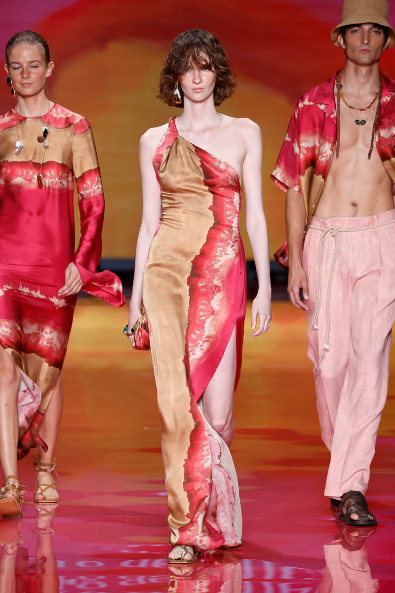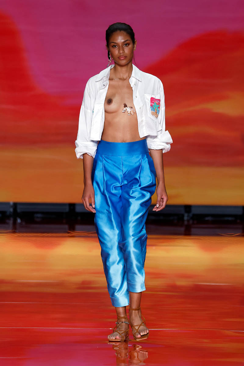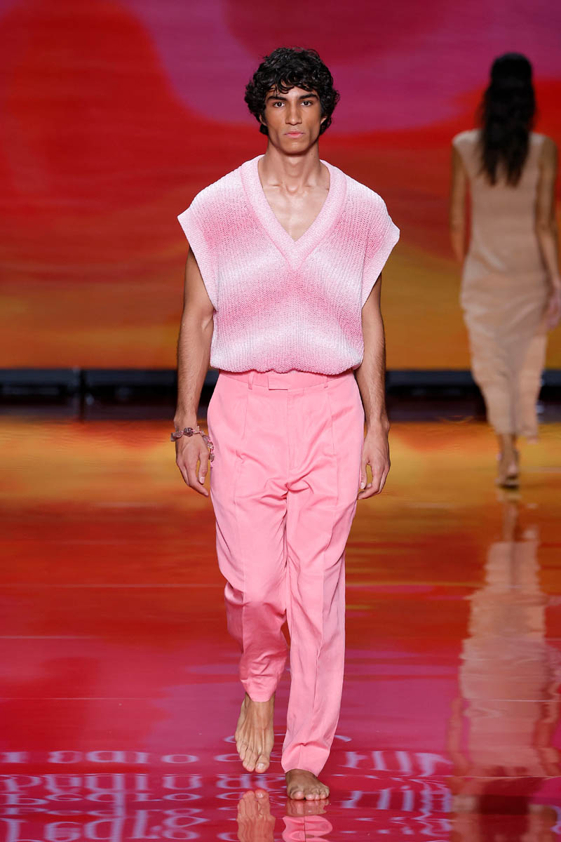 The brand, led by Alex Miralles and Nacho Aguayo, transports us to a desert island. Their proposals for men and women invite you to enjoy time through very relaxing pieces adorned with shells and stones. Crochet and linen are the protagonists of day looks, which are presented in a palette of calm colors, but in which there is also room for tones that evoke the sea or the hues of exotic flowers.