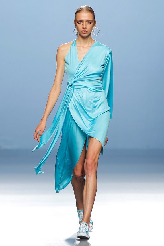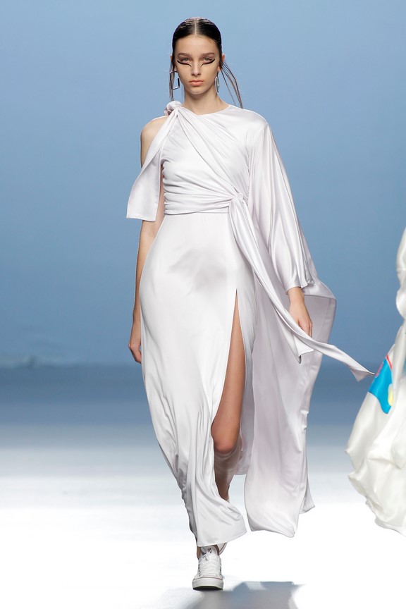 Juana Martin presents “Eclectic” an avalanche of ideas, references and shapes that seek harmony. The collection is inspired by Greece, its islands, but without losing the unmistakable flamenco aura by the designer from Cordoba. Very light and fresh fabrics are the protagonists in designs that lift off from the body in search of volume and are decorated with delicate artisan embroidery.
