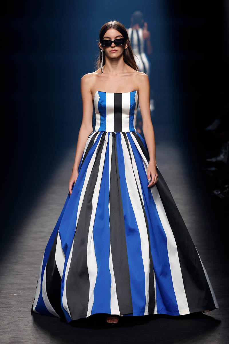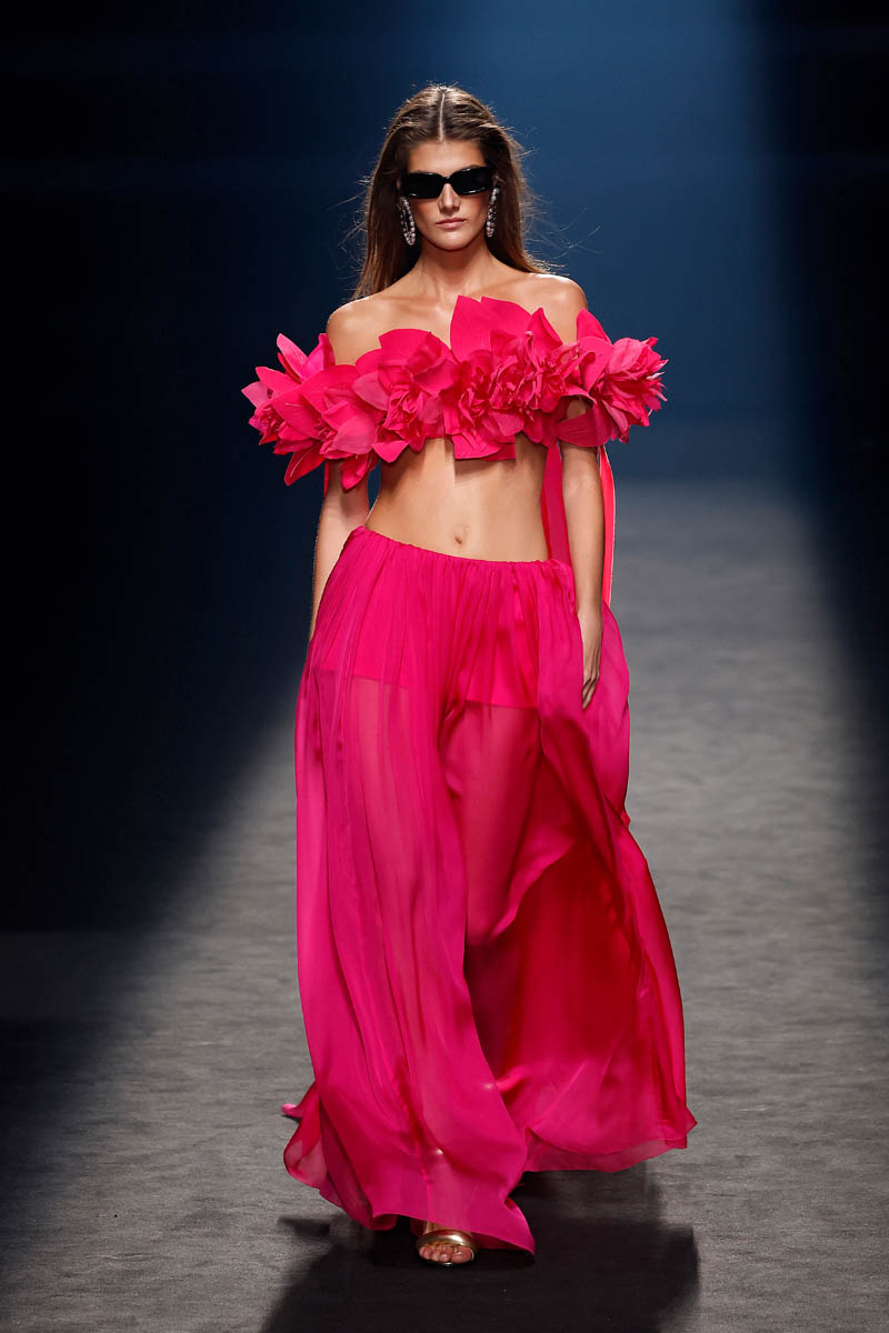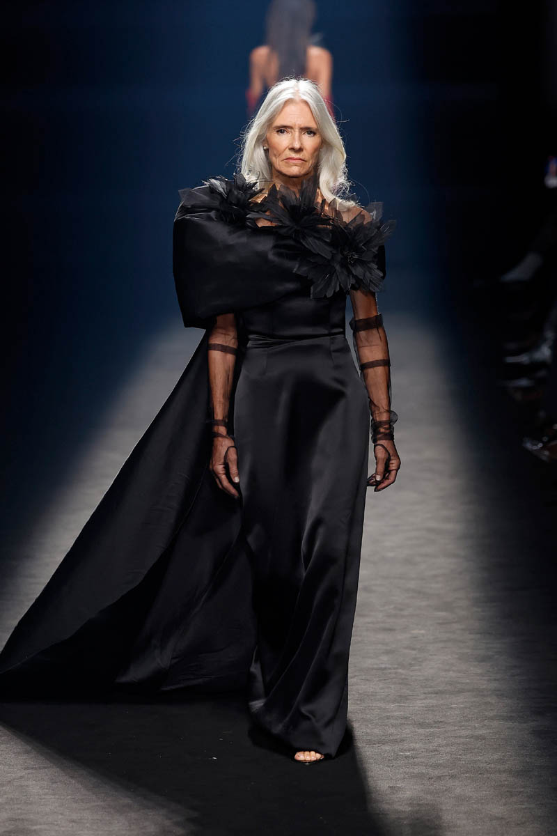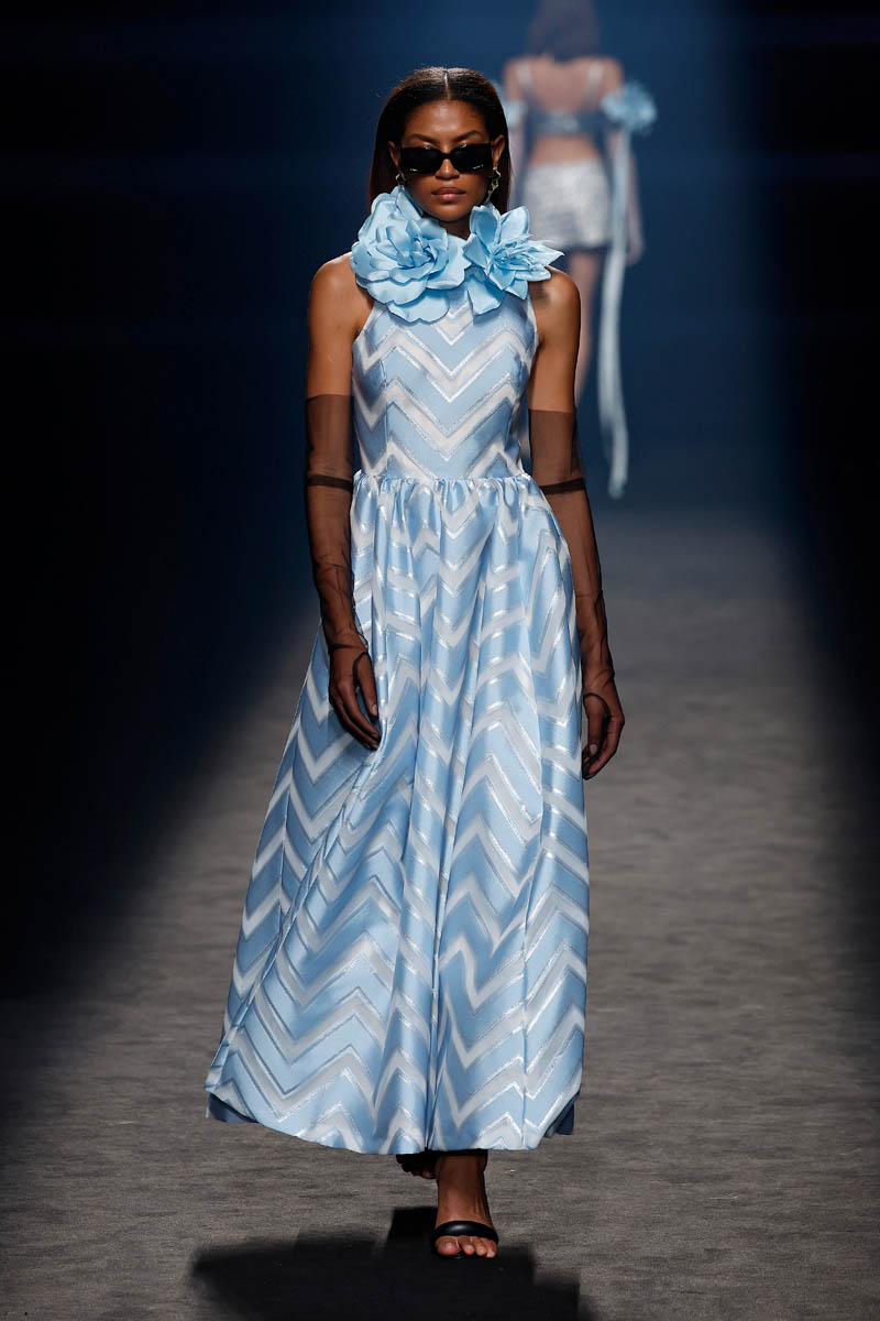 The Sevillian house, directed by Fernando Claro and his daughter Beatriz, performs a couture exercise on the catwalk with meticulously crafted creations in their atelier in Dos Hermanas, Andalucia. The female silhouette is shown freely, with patterns that detach from the body or transparencies that show it openly.