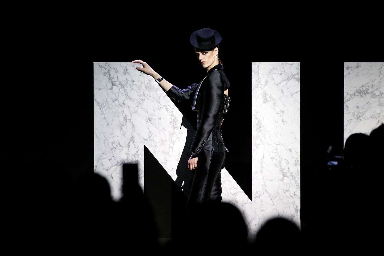 Taking as a starting point the Jamaican’s unique glamor and feline features, Malne develops a collection of shoulder pads and very pronounced waists, where male tailoring and the tradition of haute couture coexist. Sophisticated coats with large volumes, skirts and mini dresses are made in rich materials such as silk mikado, chantilly lace or metallic tweed.