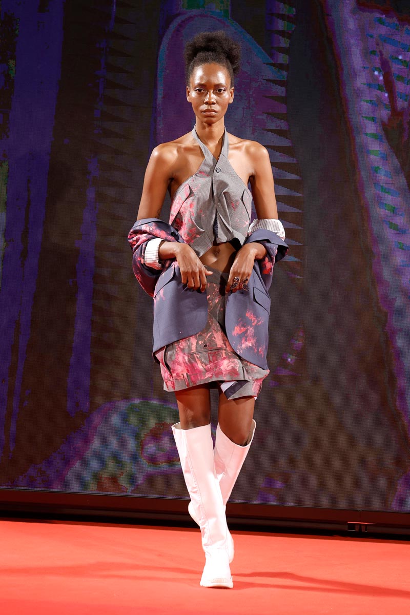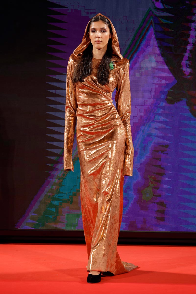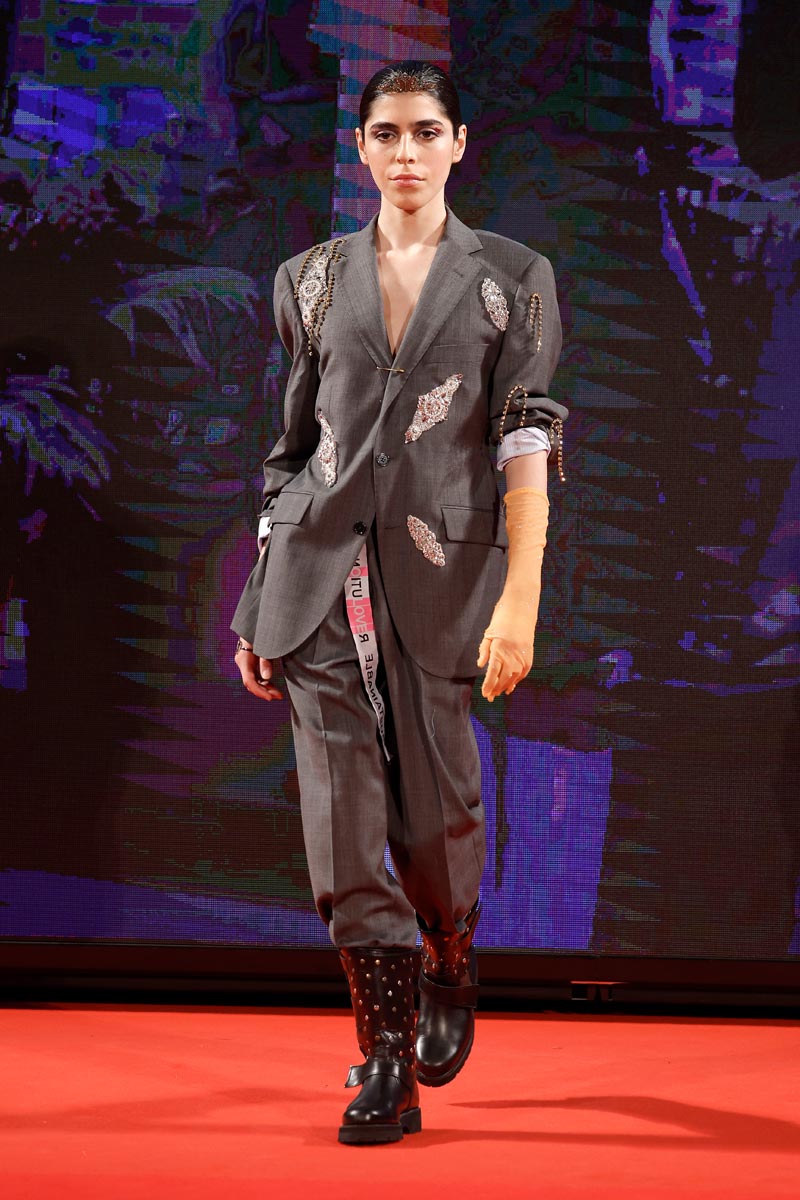 Sustainability once again rises as a fundamental concept in the collection, materializing in the use of new techniques and materials. Always innovative, Lafuente uploaded to the catwalk garments, accessories, and eyewear made using 3D printing, a project she has developed together with Pixel Sistemas and its 3DFashion system.