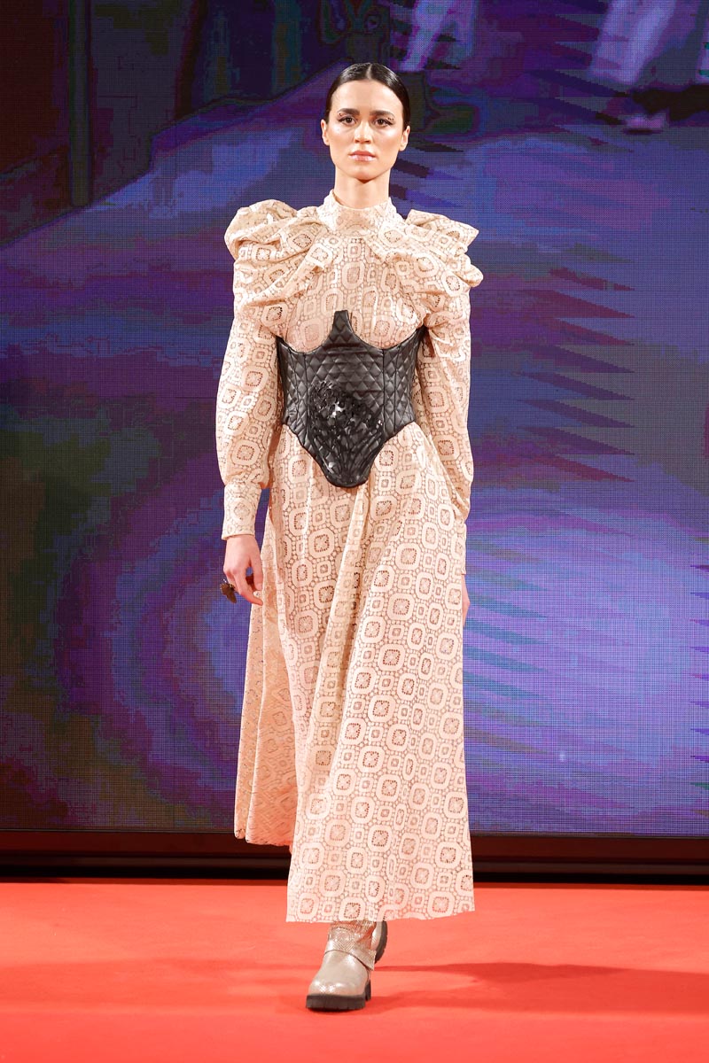 María Lafuente chooses the headquarters of the Spanish Olympic Committee as the setting to present her new collection, titled ‘Ineffable‘. The designer once again showcases her fashion proposals in Mercedes-Benz Fashion Week Madrid’s off schedule. A fashion show that enjoyed the participation of the Young Dance Company Graduates from Professional Schools and Authorized Centres from Castilla and León, which premiered on the catwalk the choreography “Miradas en Blanco”, a manifesto against gender violence.