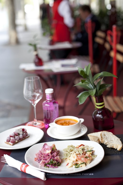 El rosa y el rojo son los colores estrella de estas propuestas. Como el cóctel del lounge de la boutique de Adolfo Domínguez de Serrano.