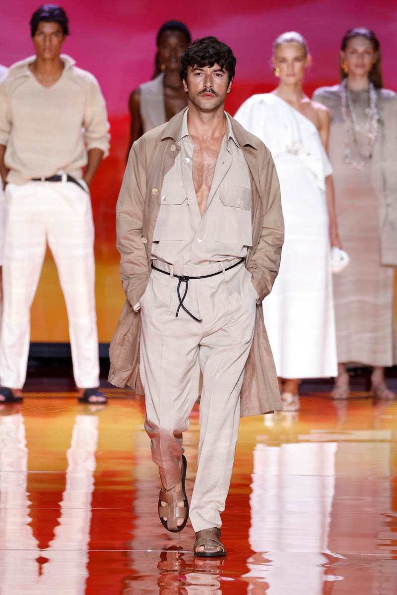 The new spring-summer 2023 collection of fashion brand Pedro del Hierro has been presented on the Mercedes-Benz Fashion Week Madrid catwalk with the participation of actor Javier Rey.