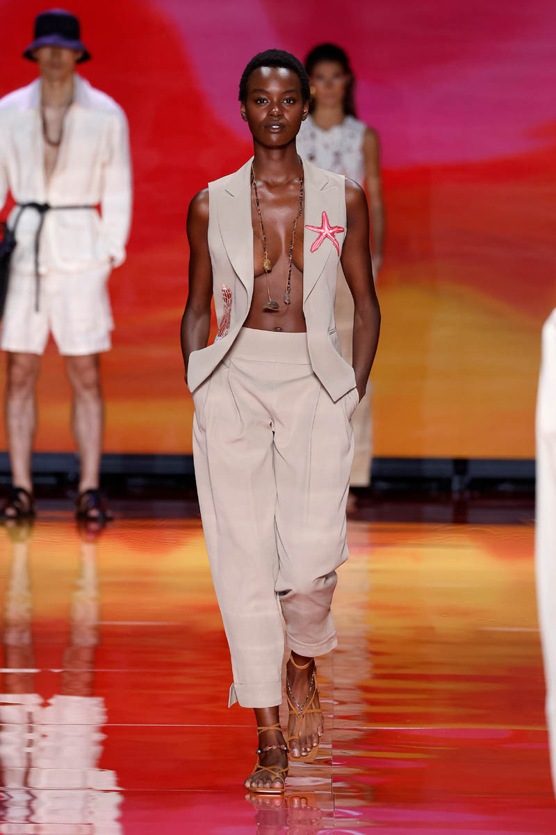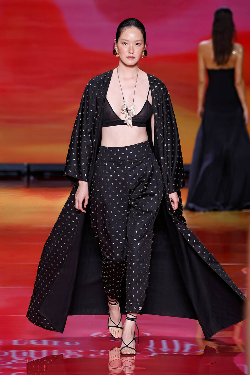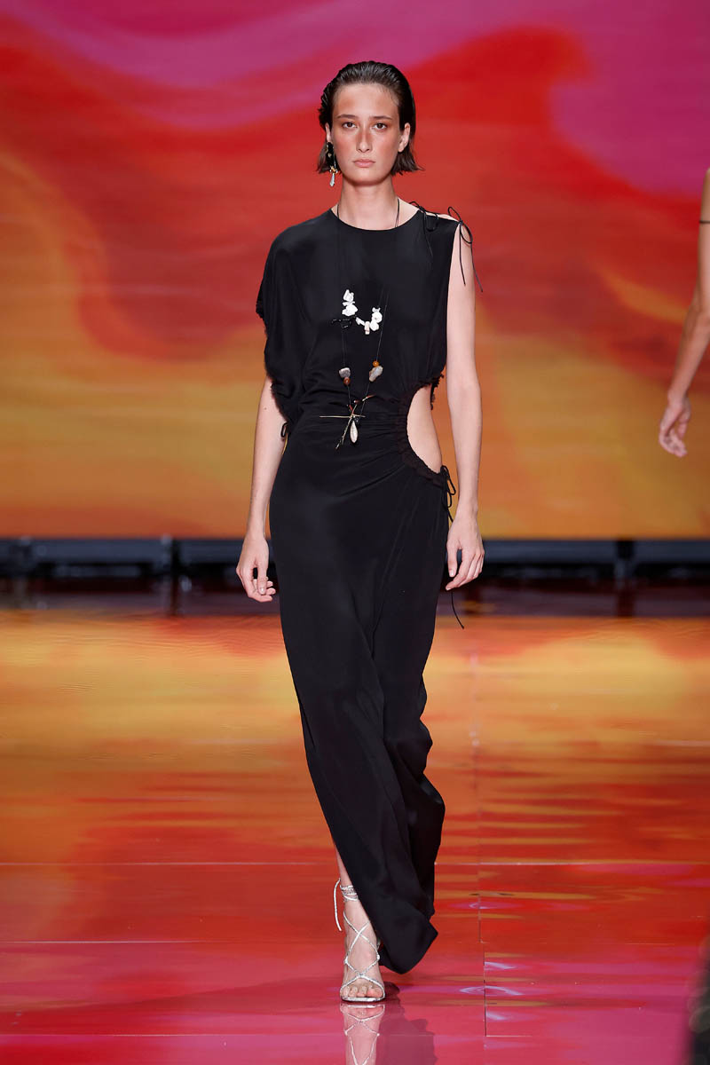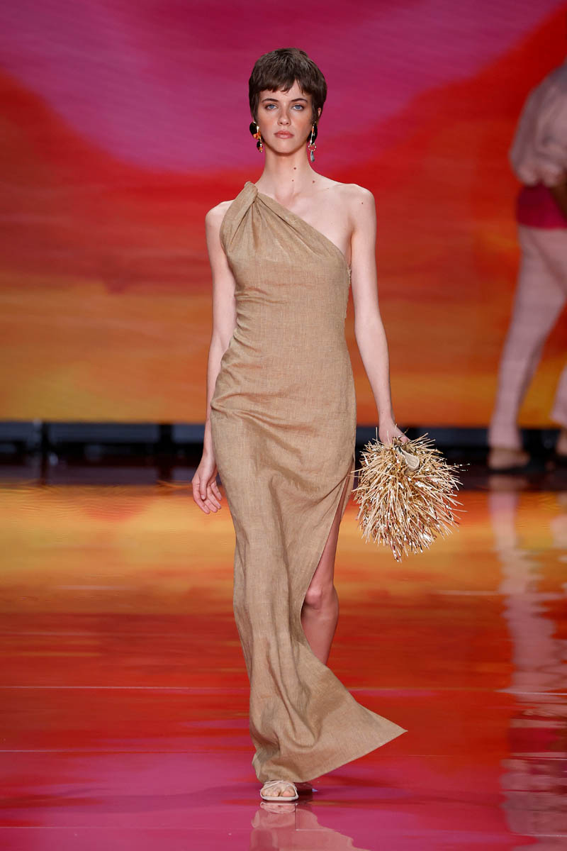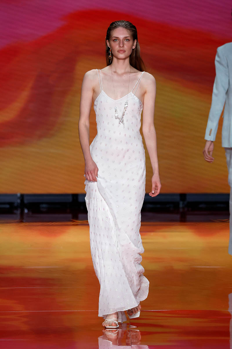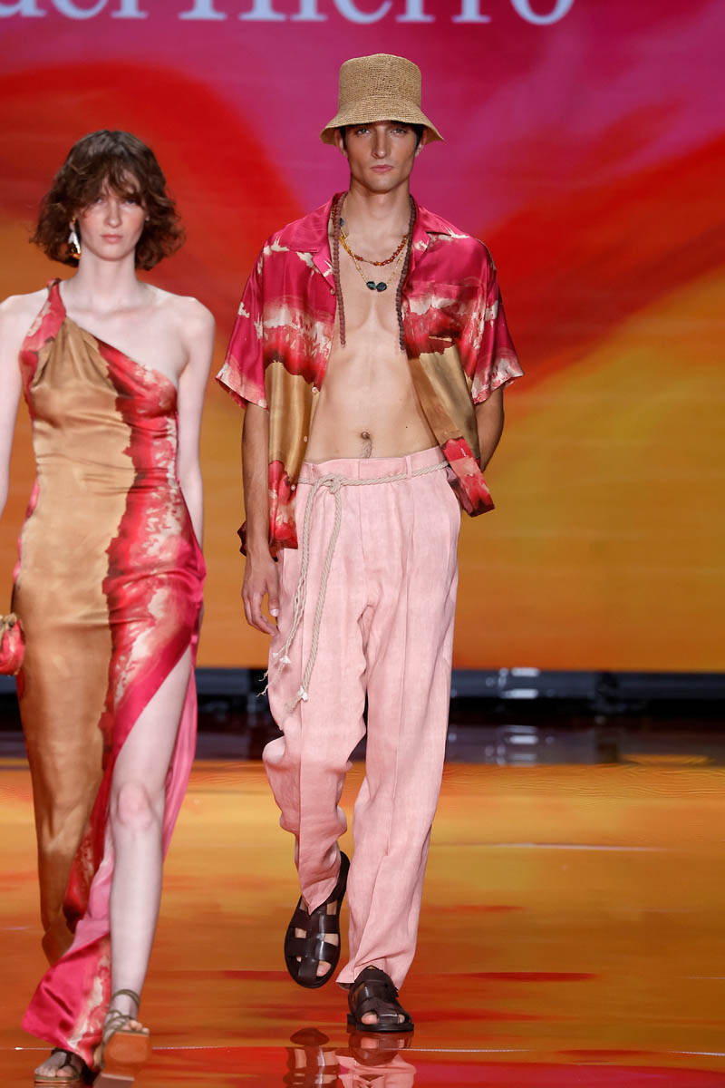 The brand, led by Alex Miralles and Nacho Aguayo, transports us to a desert island. Their proposals for men and women invite you to enjoy time through very relaxing pieces adorned with shells and stones. Crochet and linen are the protagonists of day looks, which are presented in a palette of calm colors, but in which there is also room for tones that evoke the sea or the hues of exotic flowers.
