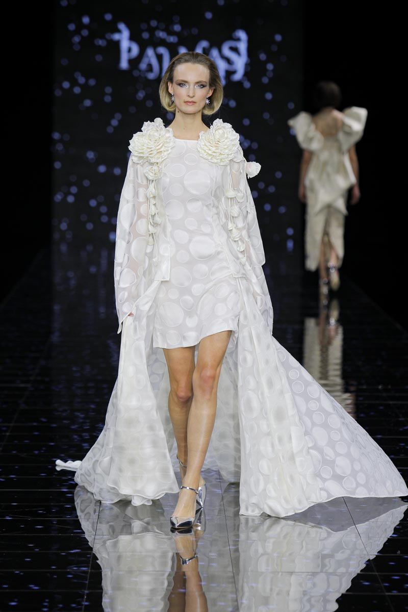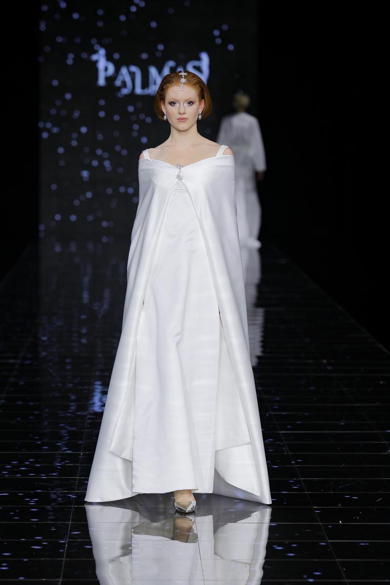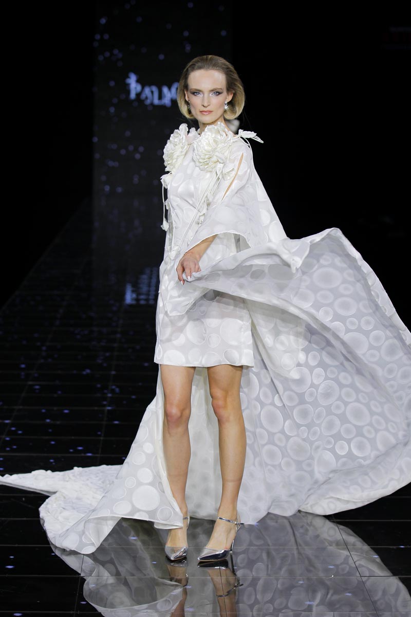 The finishing touch during the last day of Barcelona Bridal Fashion Week was placed by Pedro Palmas and his ‘Neige’ collection inspired by snow and the absolute silence that envelops that ambience, purity’s eternal hold, the same that makes brides wear white as an omen of goods and prosperity.