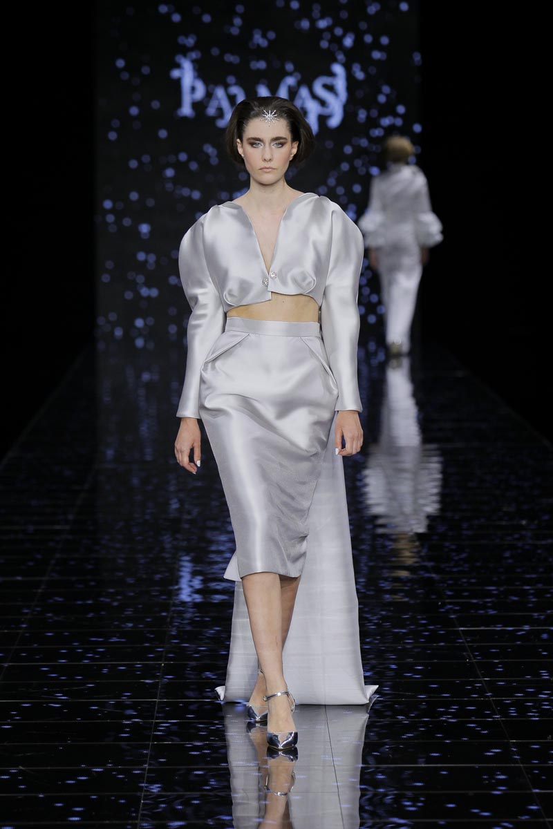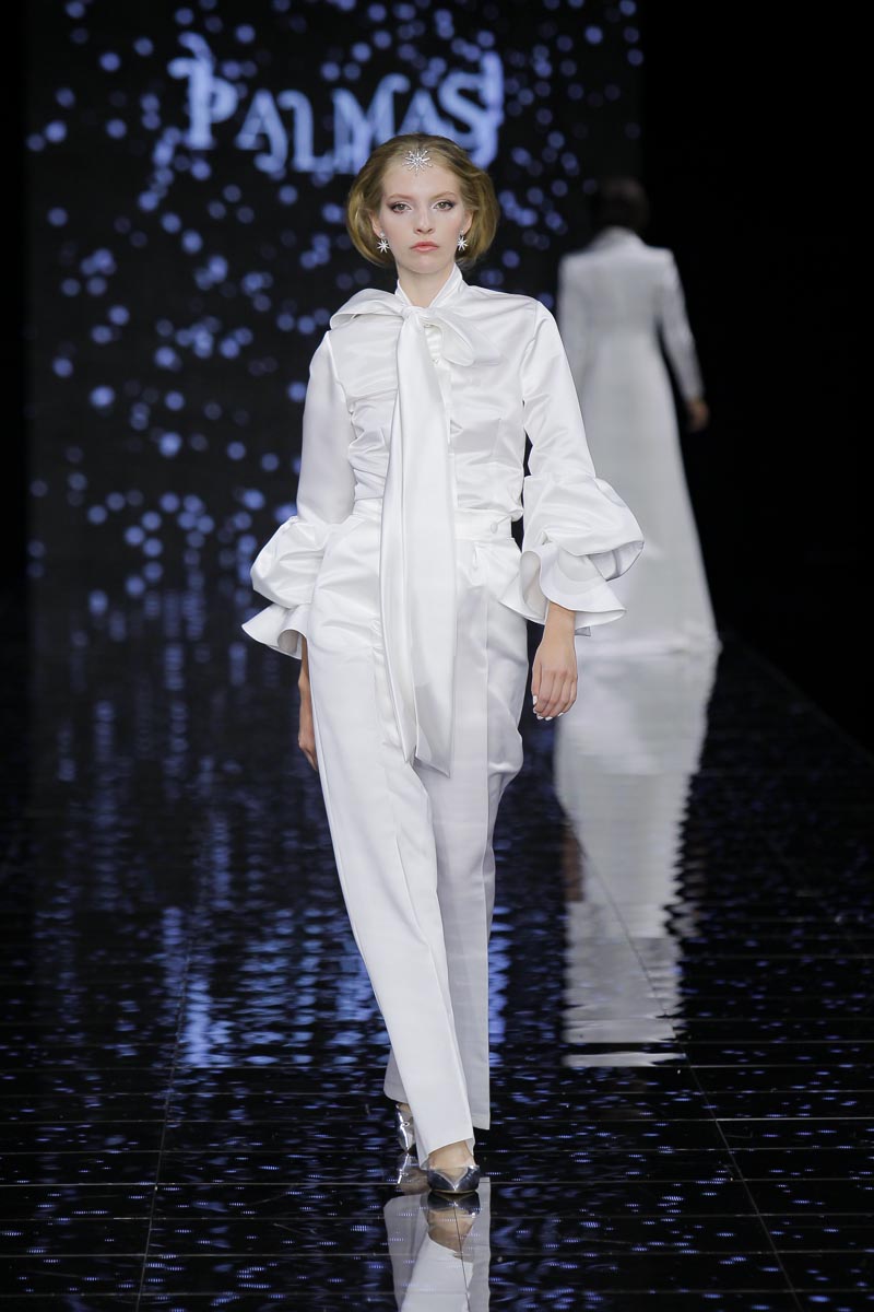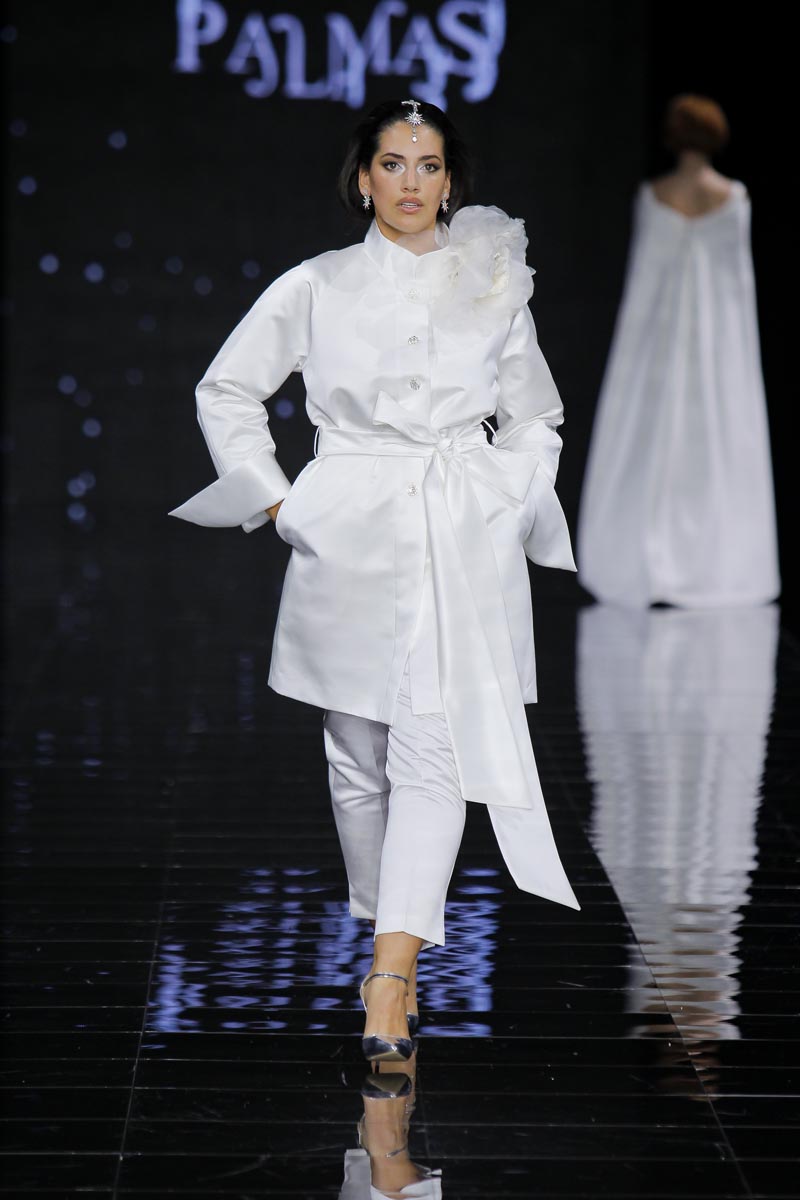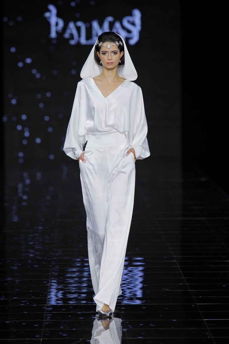 The finishing touch during the last day of Barcelona Bridal Fashion Week was placed by Pedro Palmas and his ‘Neige’ collection inspired by snow and the absolute silence that envelops that ambience, purity’s eternal hold, the same that makes brides wear white as an omen of goods and prosperity.
