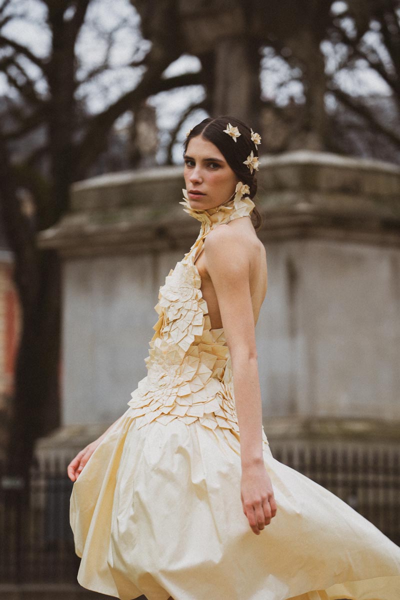 After its preview last February 14th at Madrid Fashion Week, Pilar Dalbat, born in Granada, brought her latest fashion proposal to the iconic City of Light. For “Gracia 12” the designer has developed a prêt-à-couture collection that brings together the house’s iconic symbols, artisanal techniques and emblematic silhouettes, which revolve around the figure of legendary Eugenia de Montijo.
